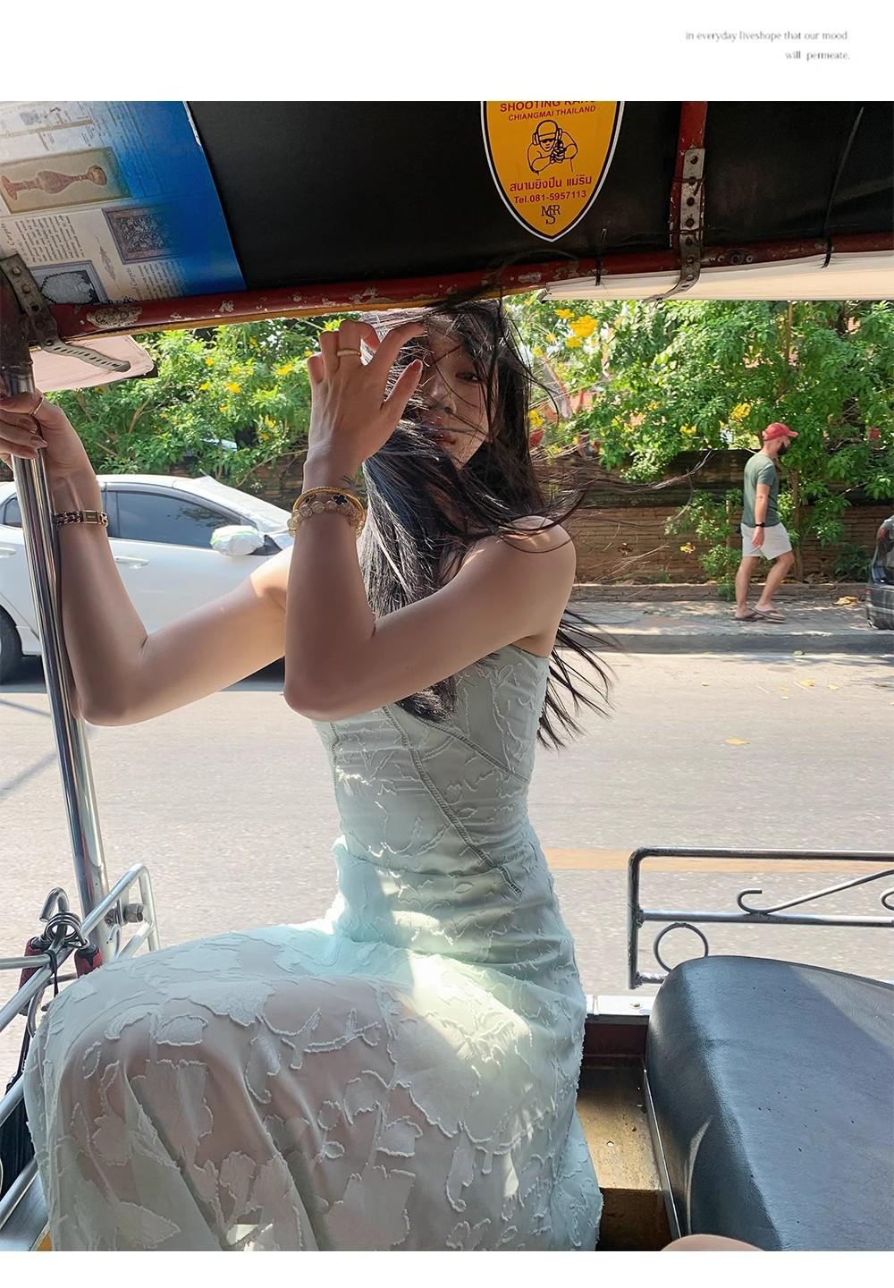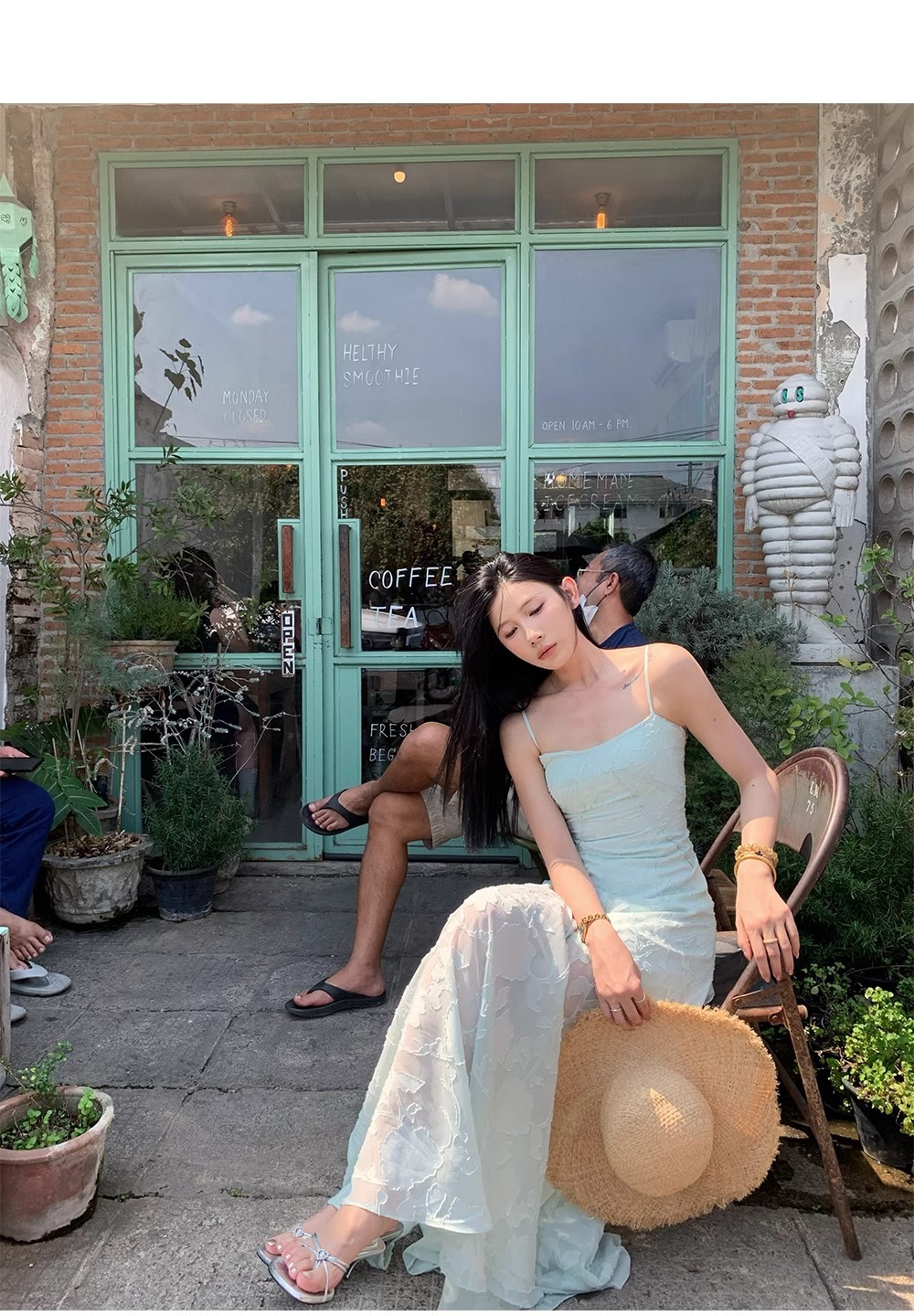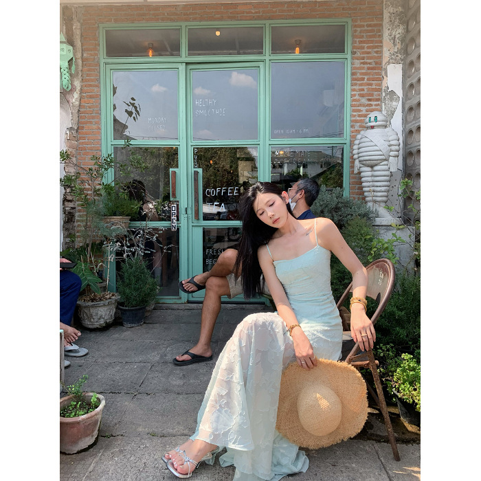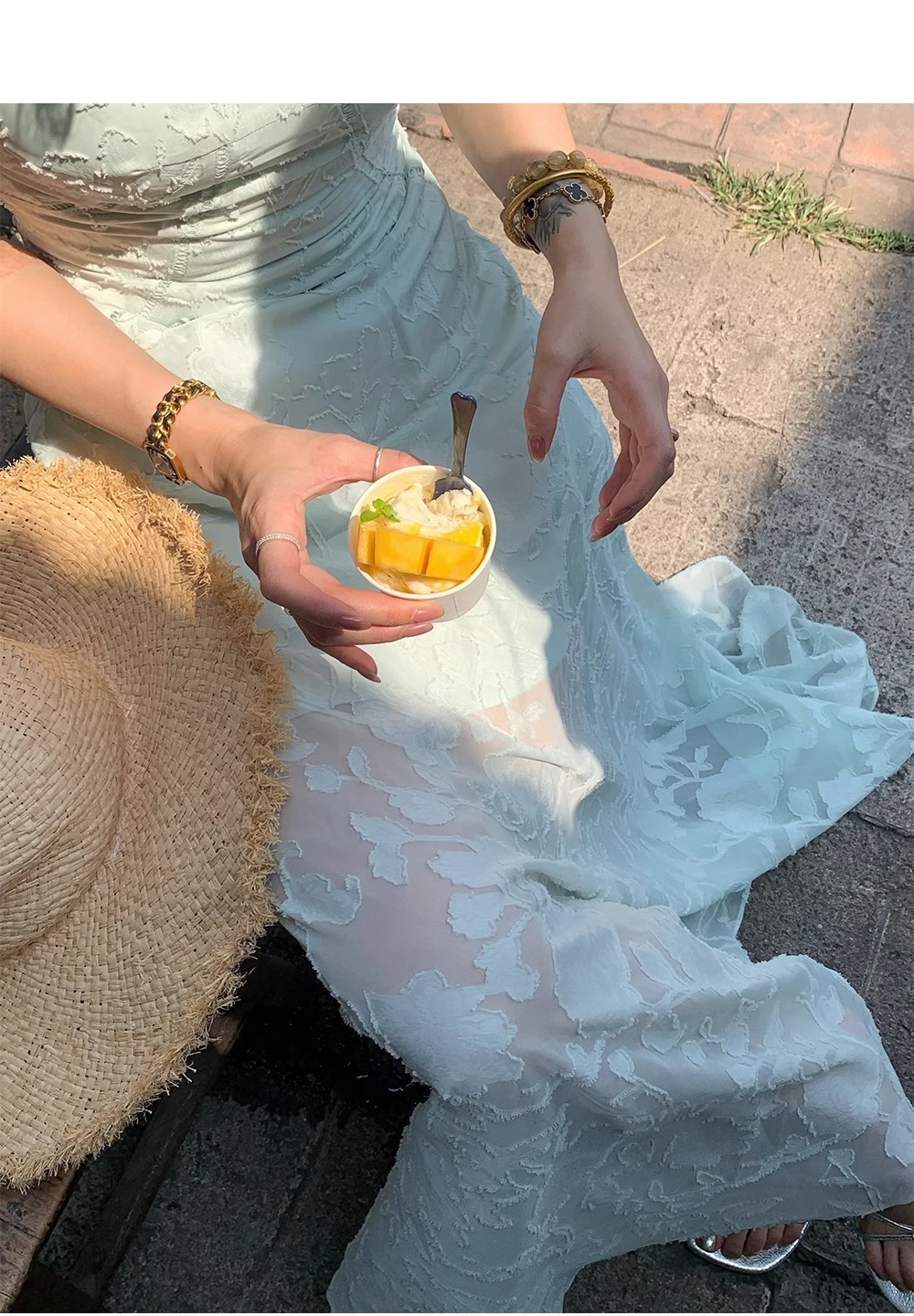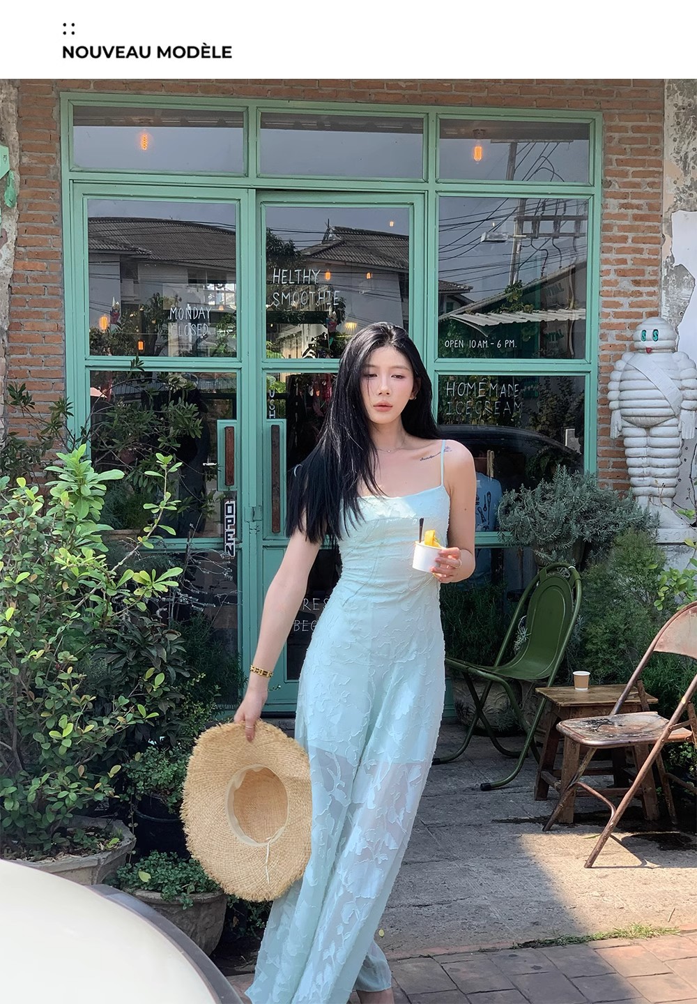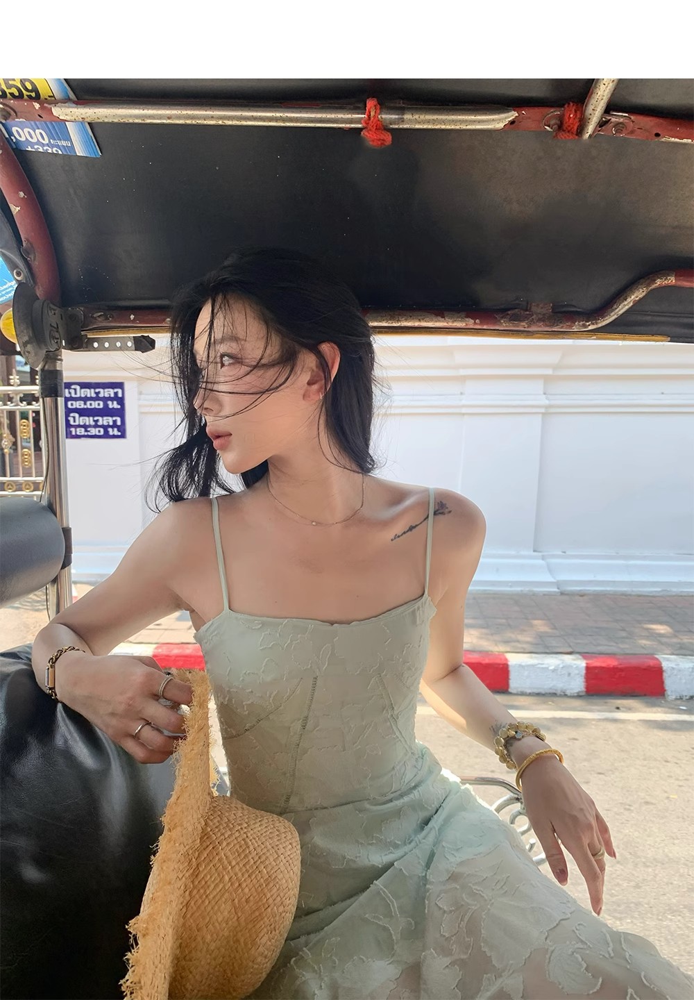 2025 새로운 여름 레이스 슬링 원피스 여름 민트 맘보 그린 여행복 해변 휴일 원피스스토어 가기
