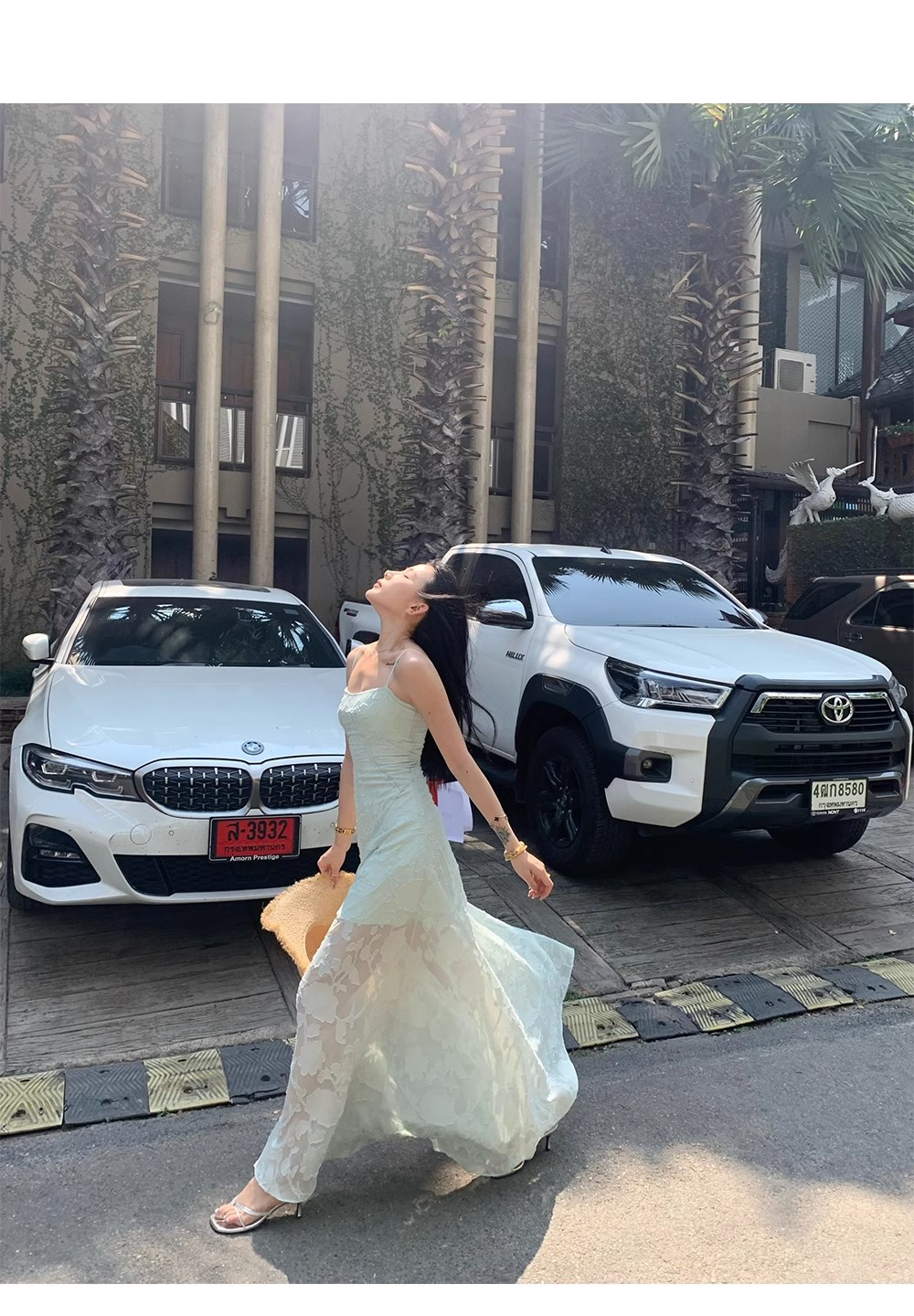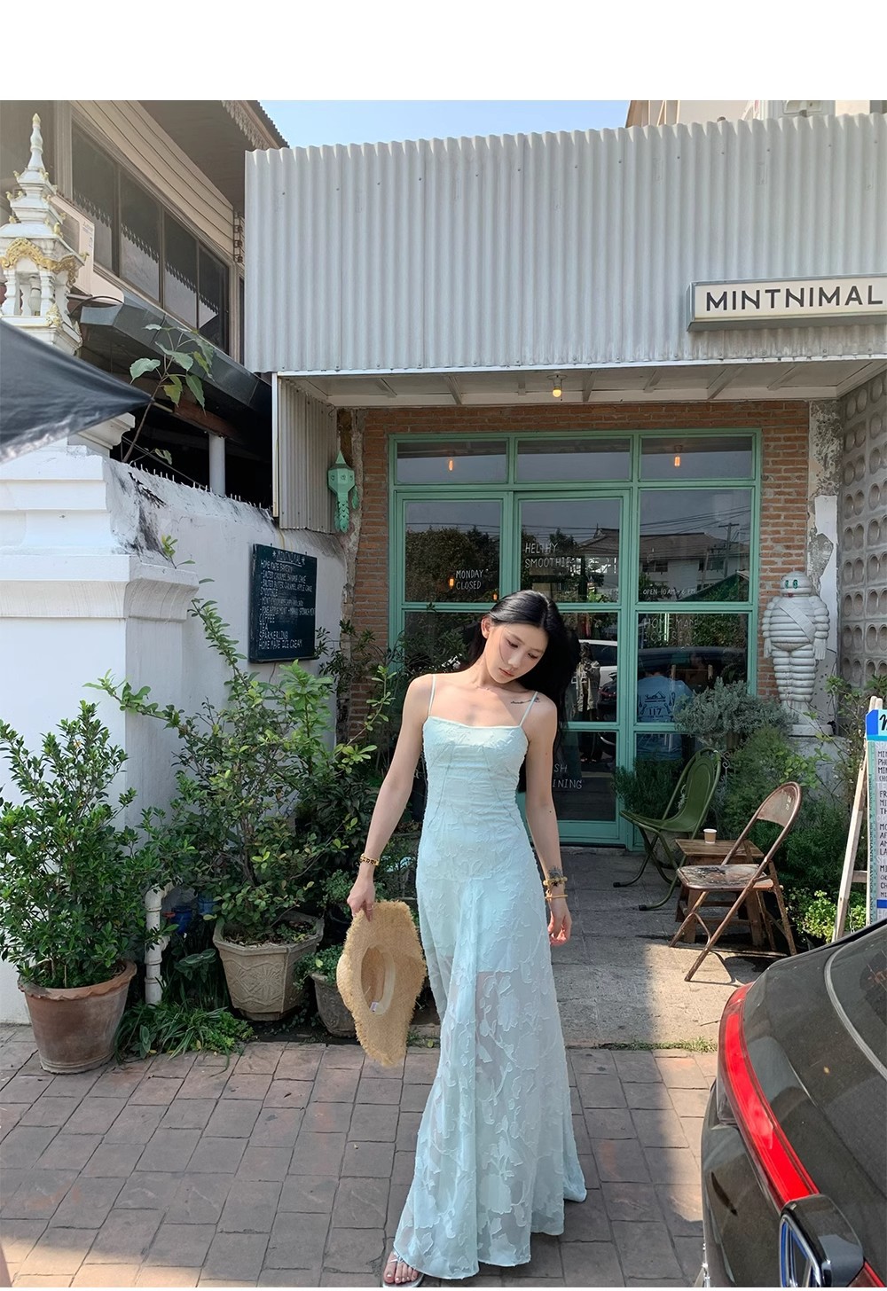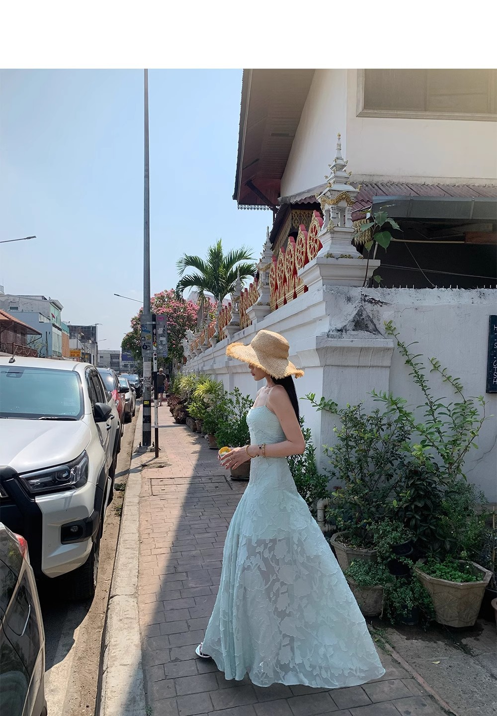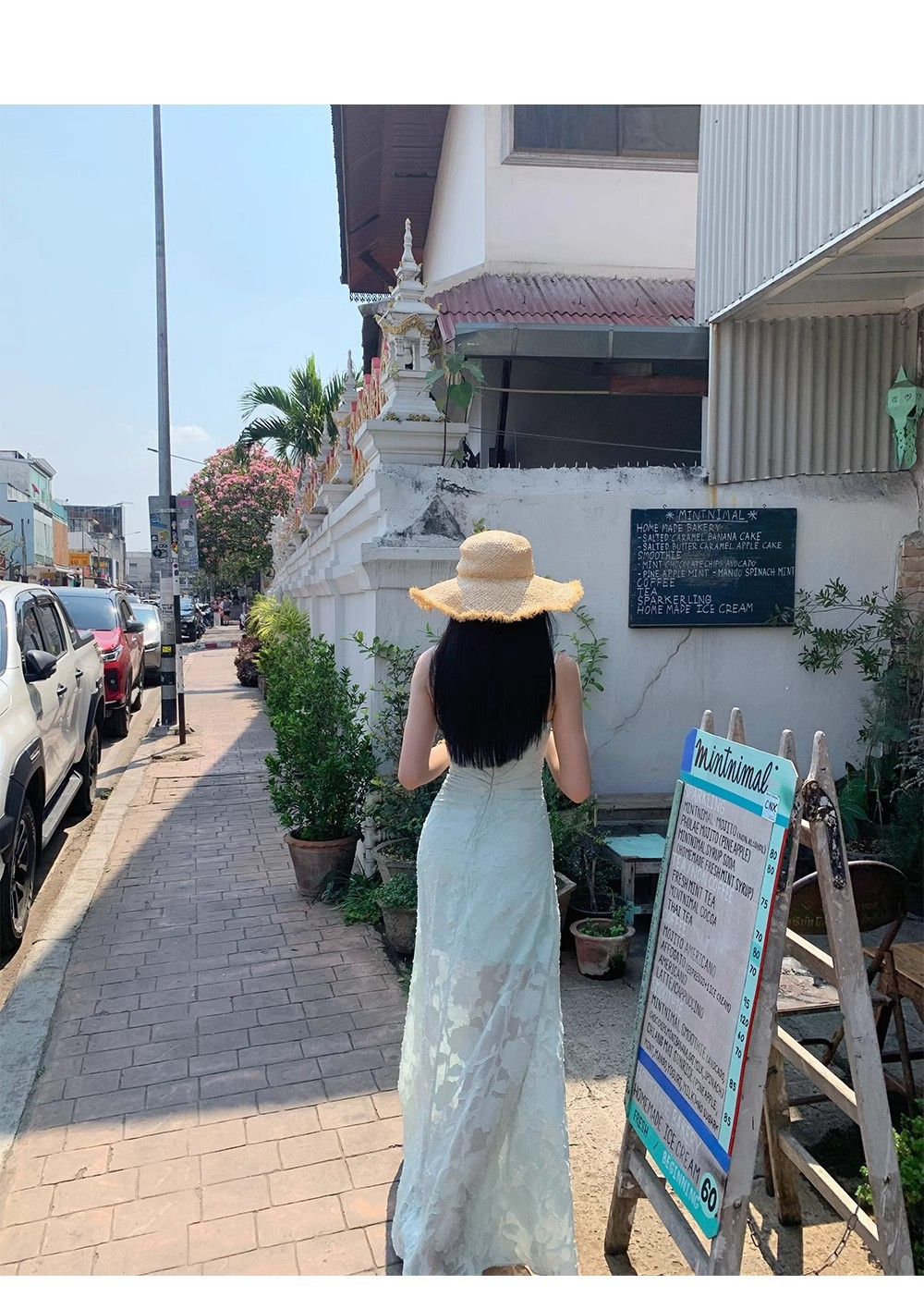 2025 새로운 여름 레이스 슬링 원피스 여름 민트 맘보 그린 여행복 해변 휴일 원피스스토어 가기