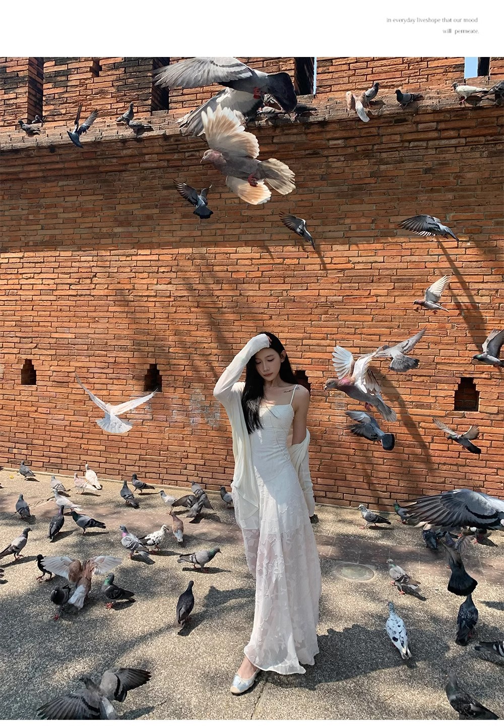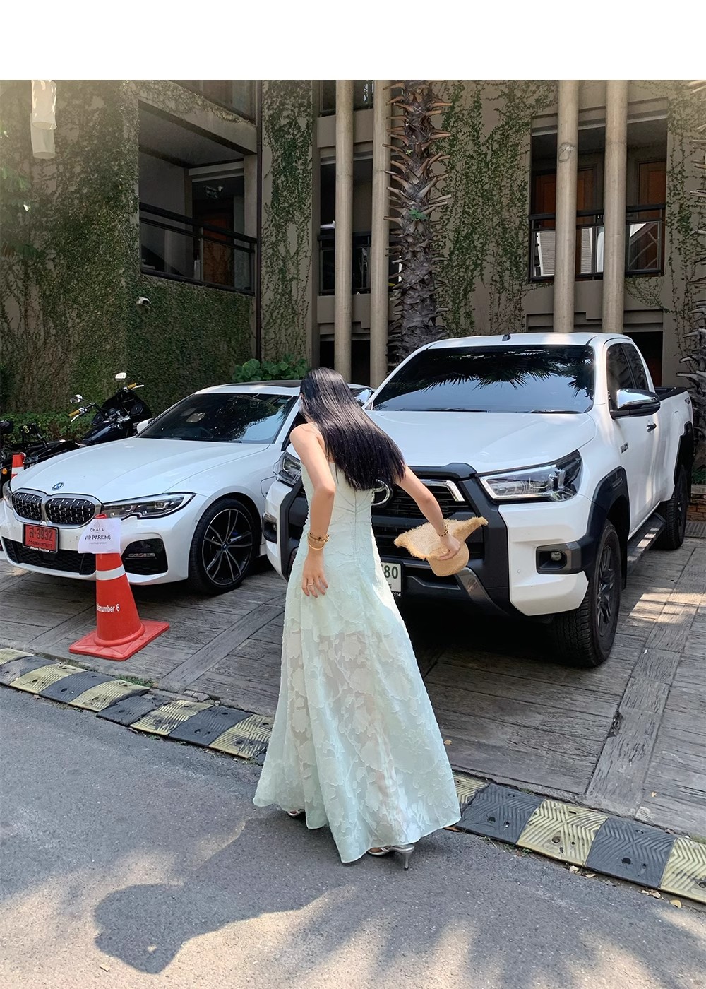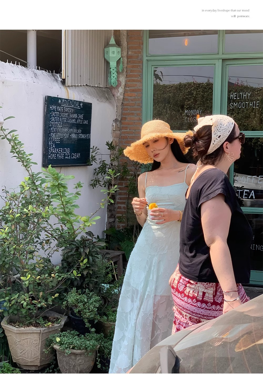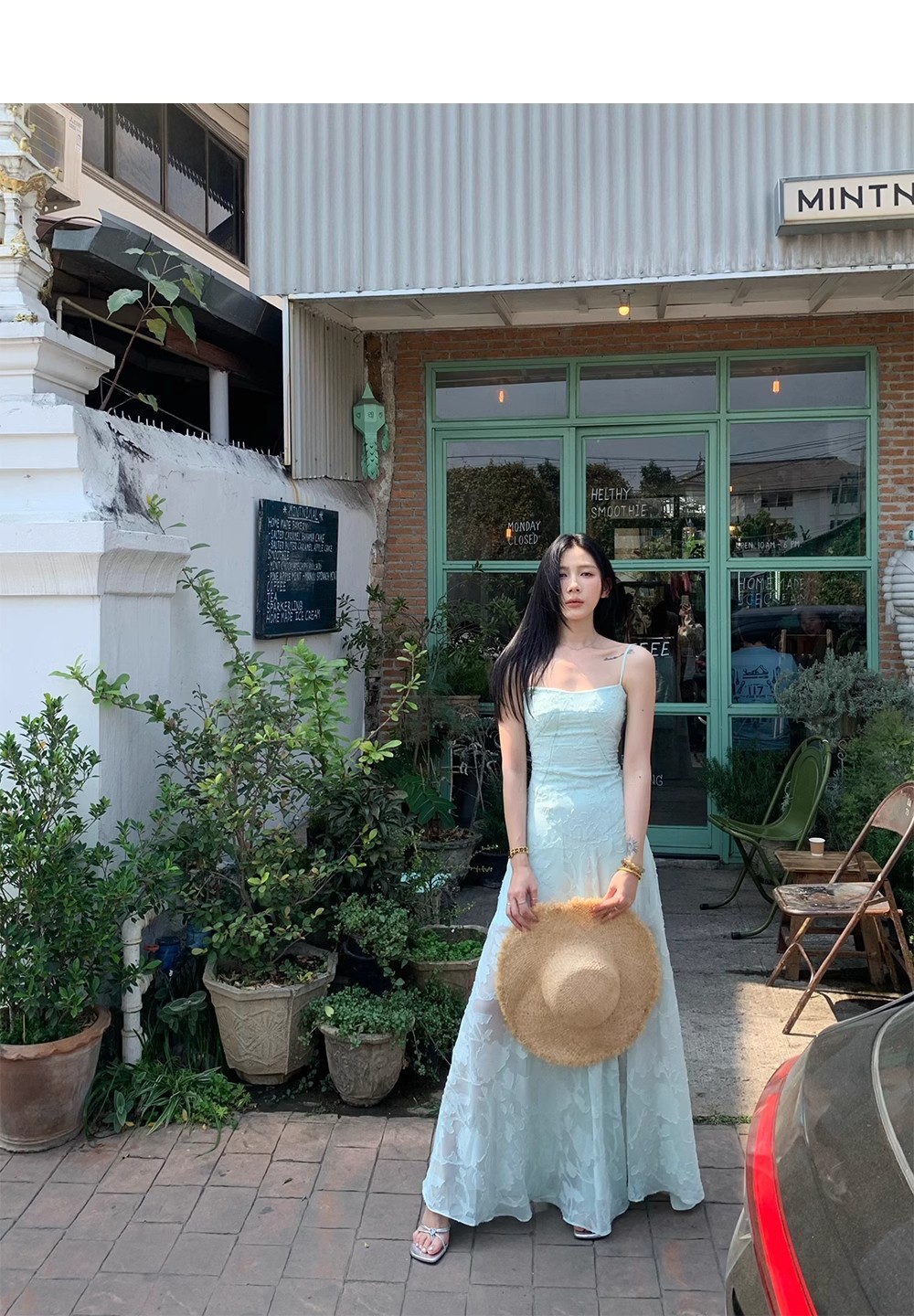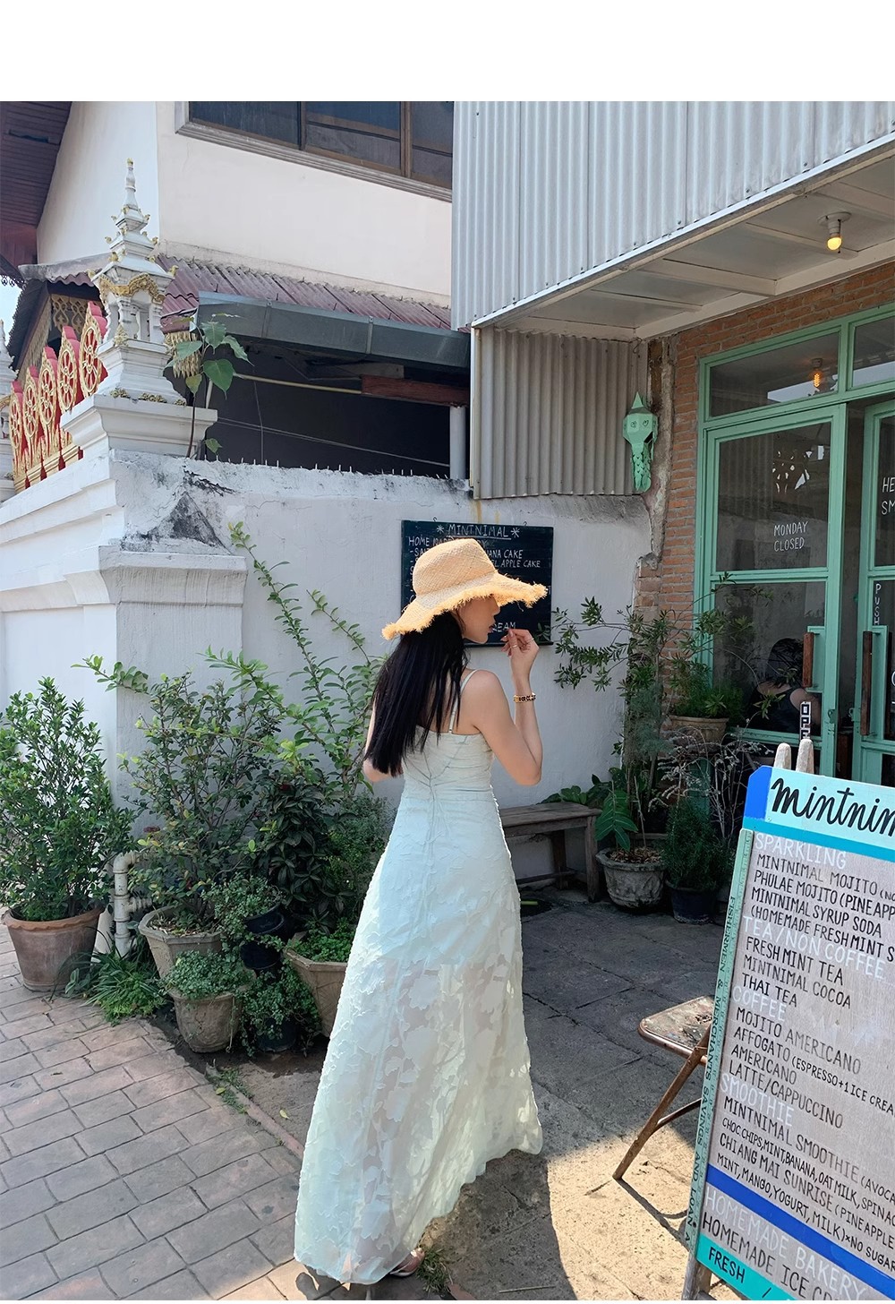 2025 새로운 여름 레이스 슬링 원피스 여름 민트 맘보 그린 여행복 해변 휴일 원피스스토어 가기