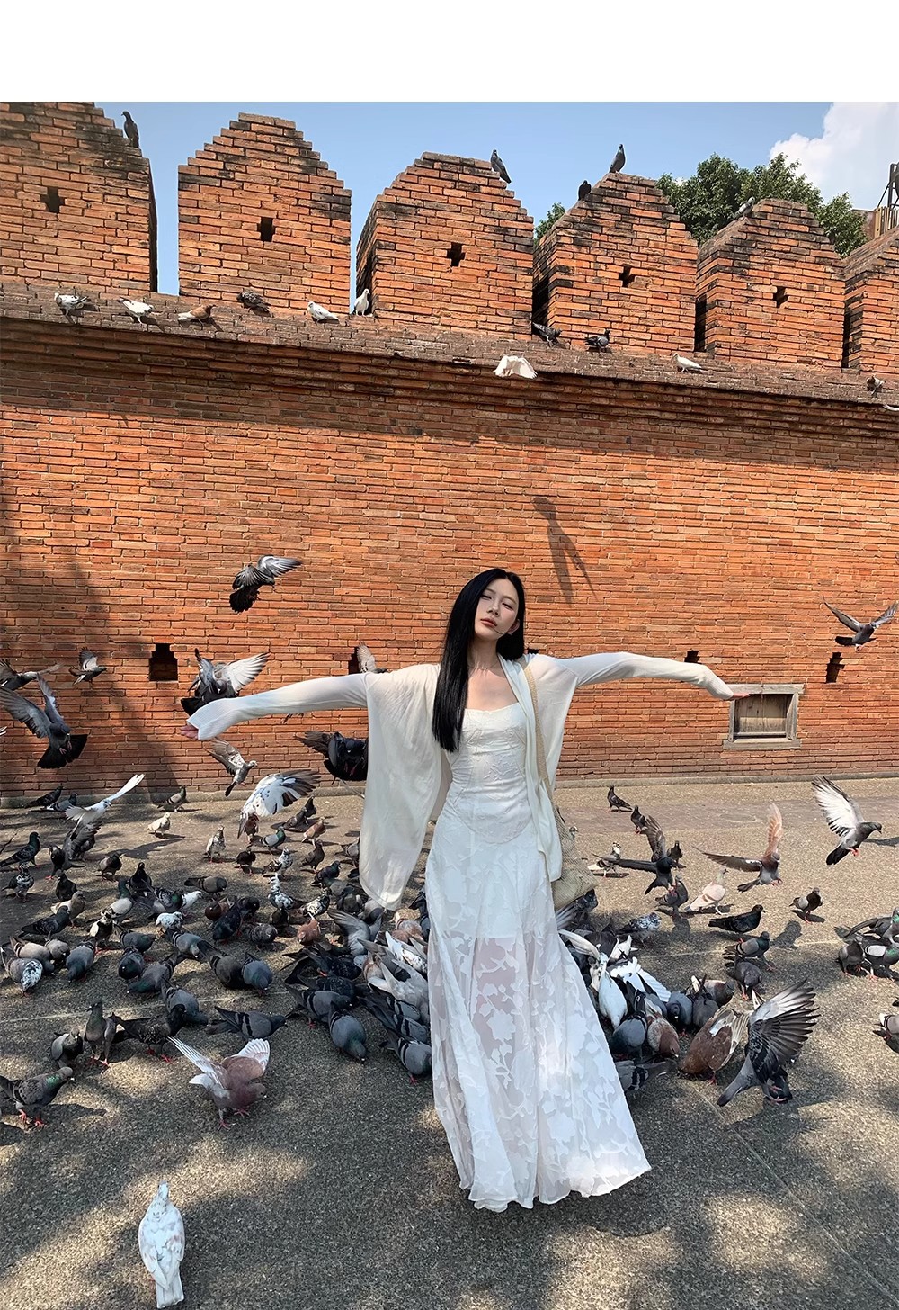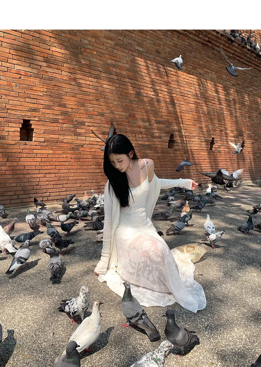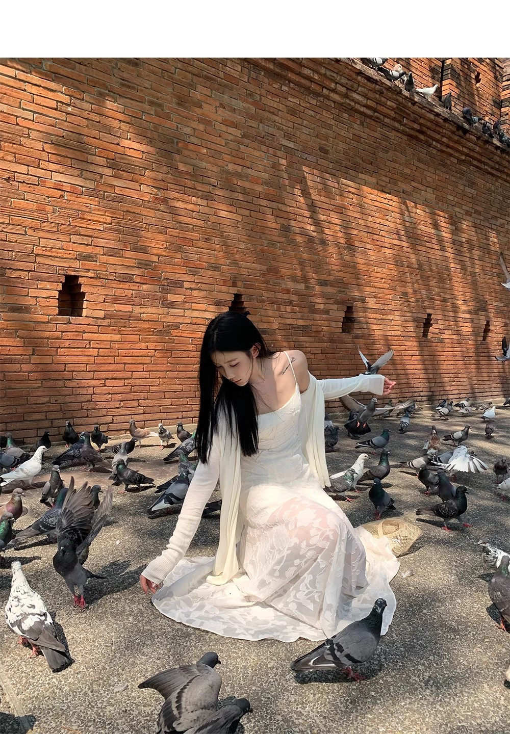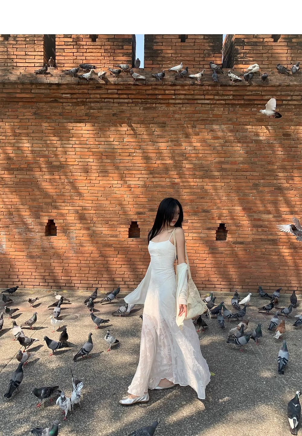 2025 새로운 여름 레이스 슬링 원피스 여름 민트 맘보 그린 여행복 해변 휴일 원피스스토어 가기