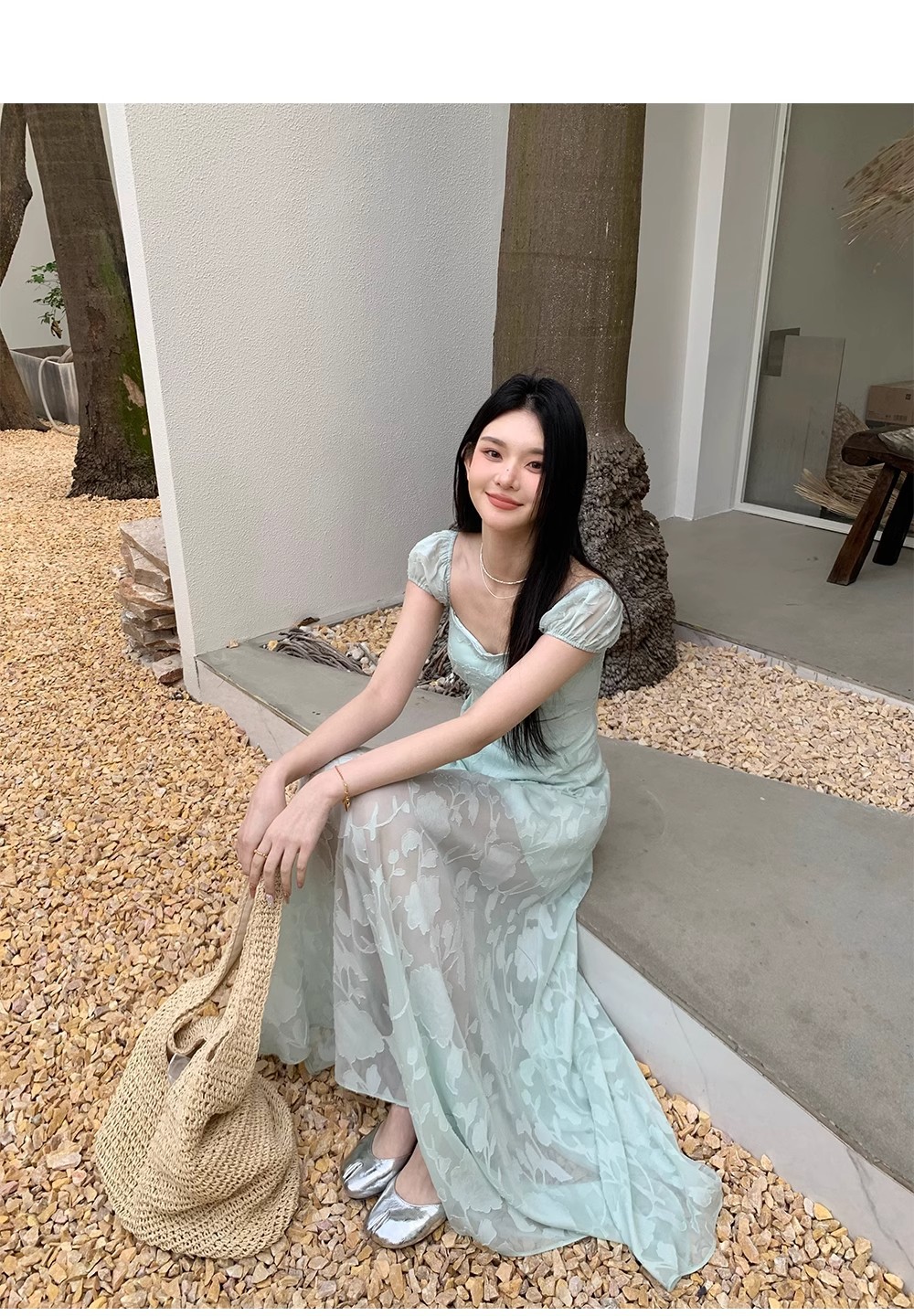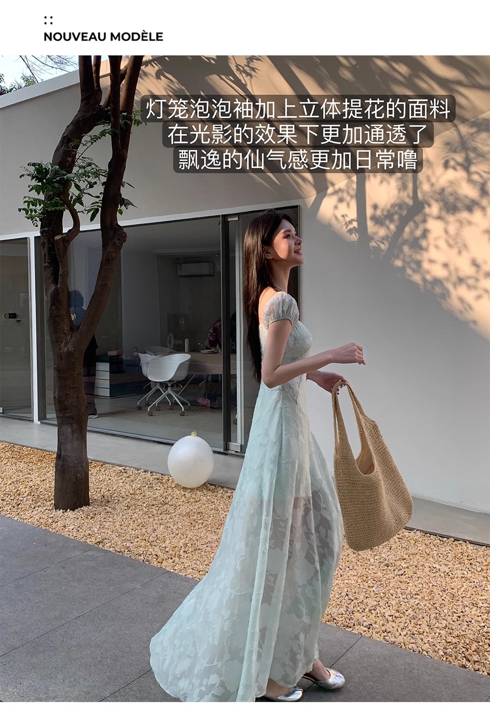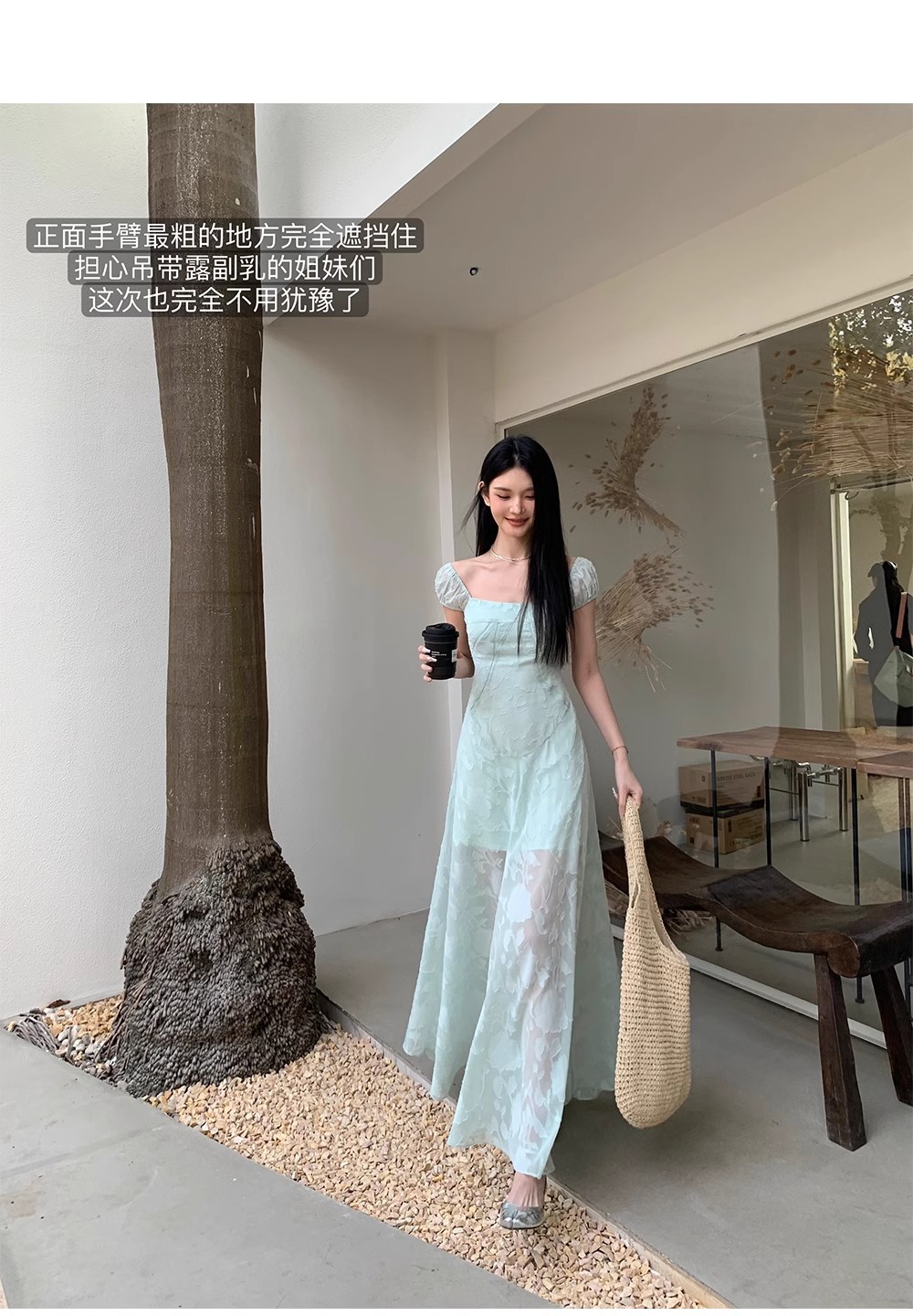 2025 새로운 여름 레이스 슬링 원피스 여름 민트 맘보 그린 여행복 해변 휴일 원피스
