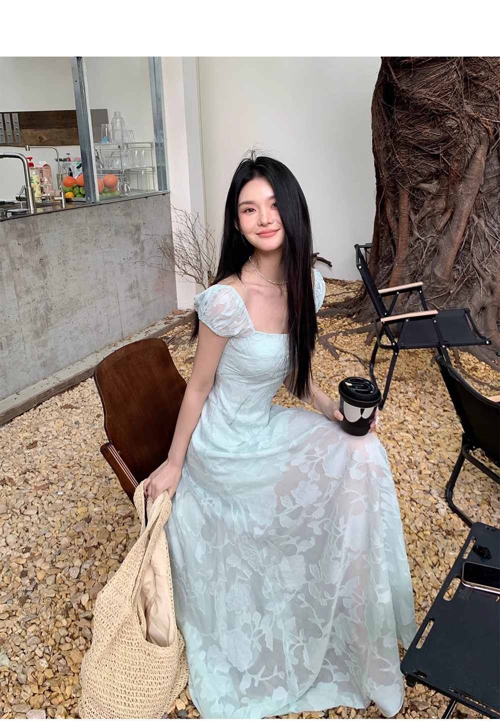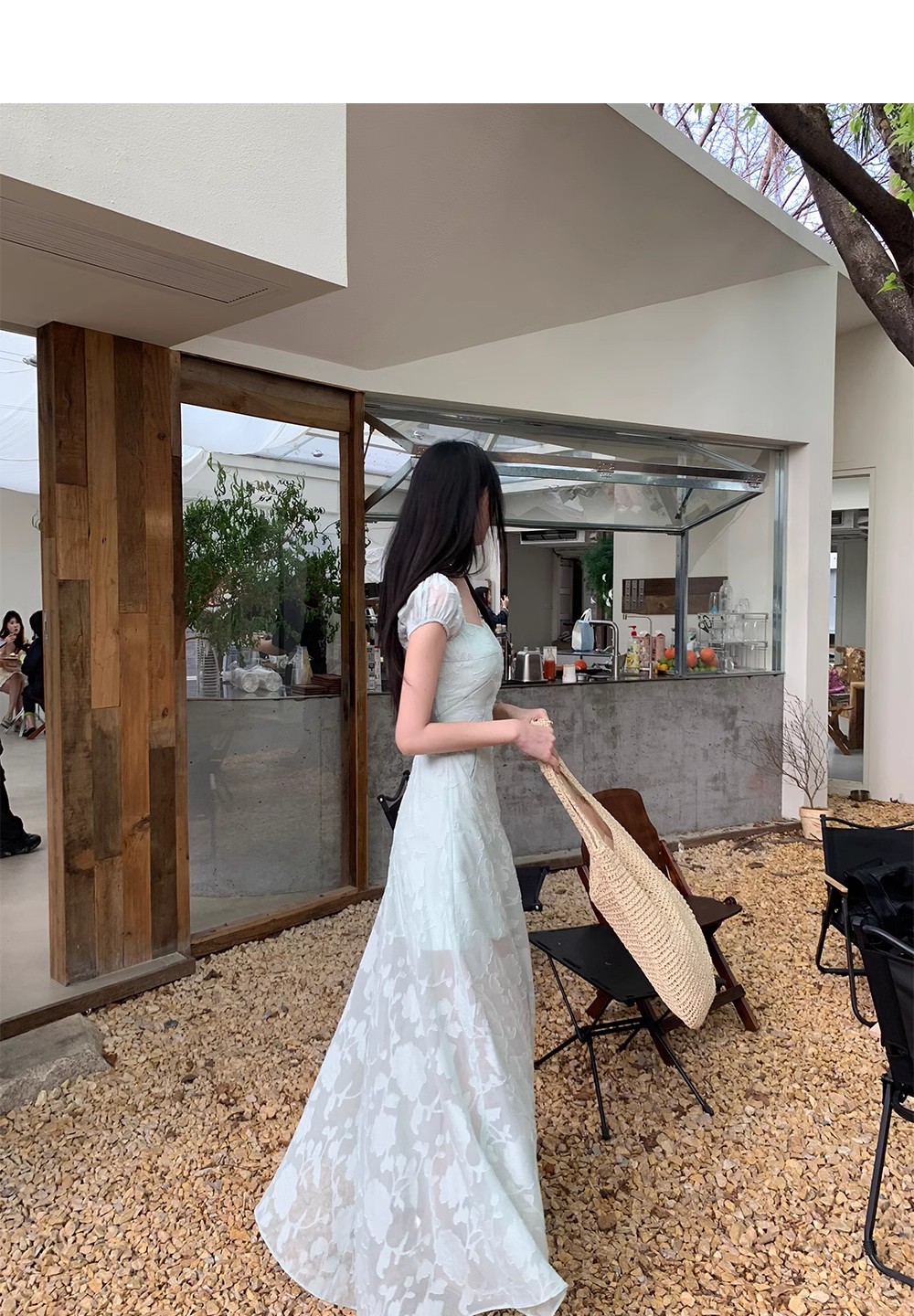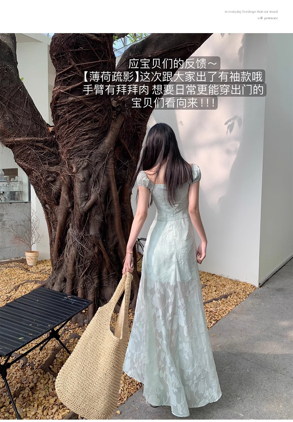 2025 새로운 여름 레이스 슬링 원피스 여름 민트 맘보 그린 여행복 해변 휴일 원피스