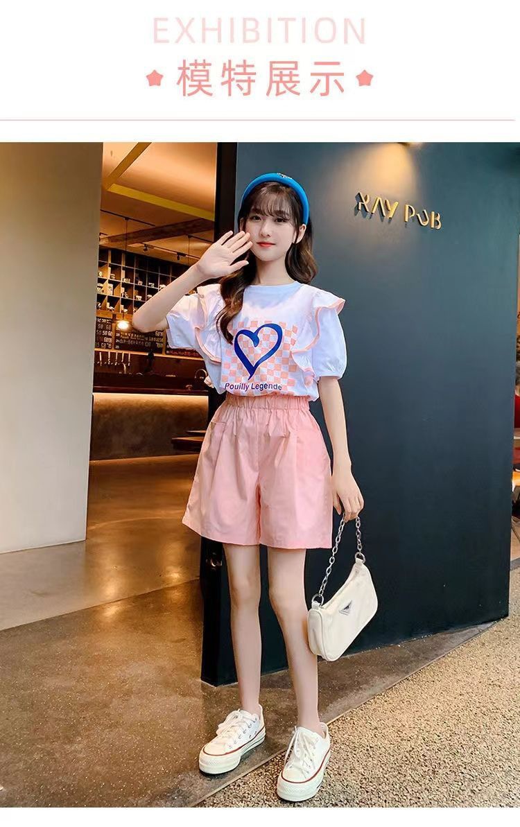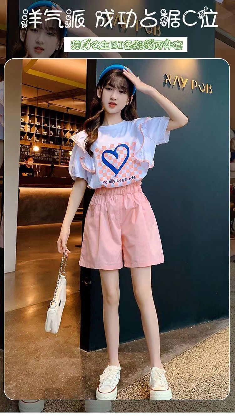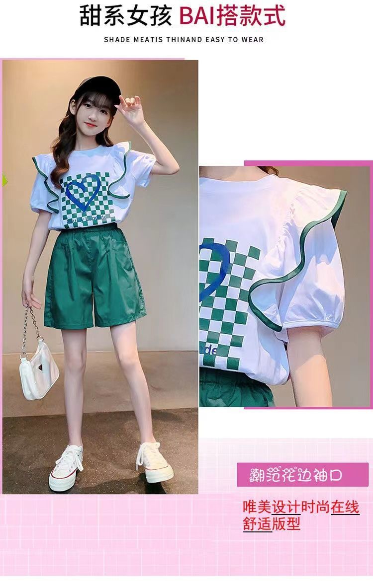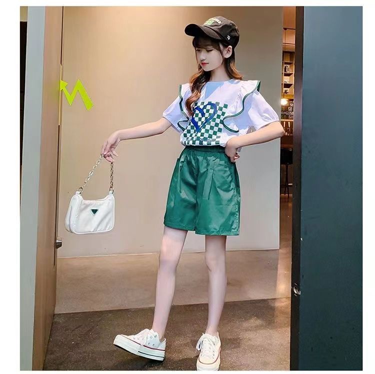 소녀 여름 옷 세트 2025 새로운 어린이 서양식 인터넷 인기 반팔 반바지 투피스 세트 소녀 중 큰 어린이 옷스토어 가기