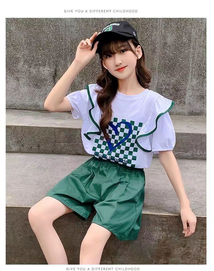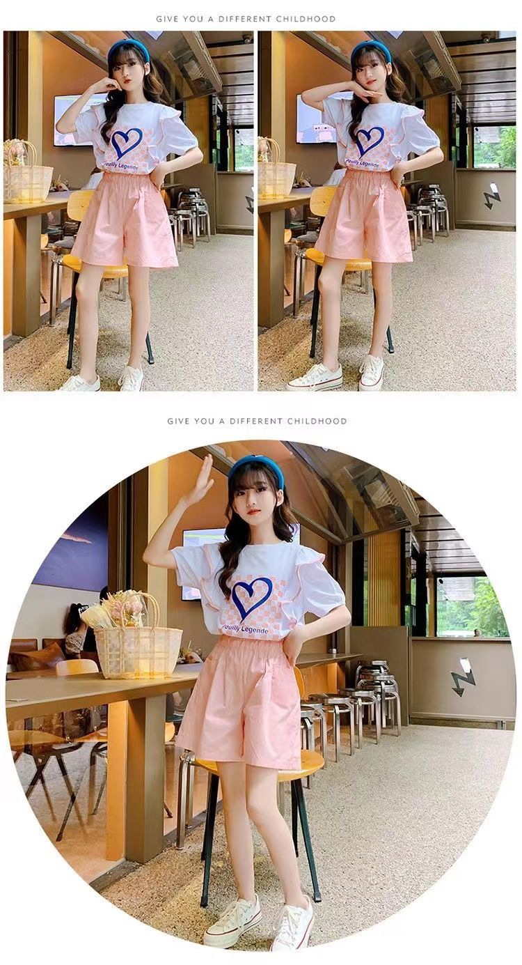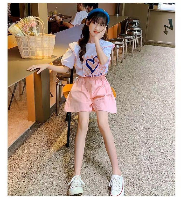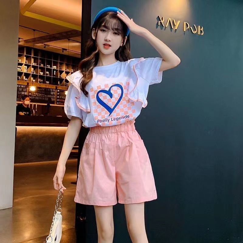 소녀 여름 옷 세트 2025 새로운 어린이 서양식 인터넷 인기 반팔 반바지 투피스 세트 소녀 중 큰 어린이 옷스토어 가기