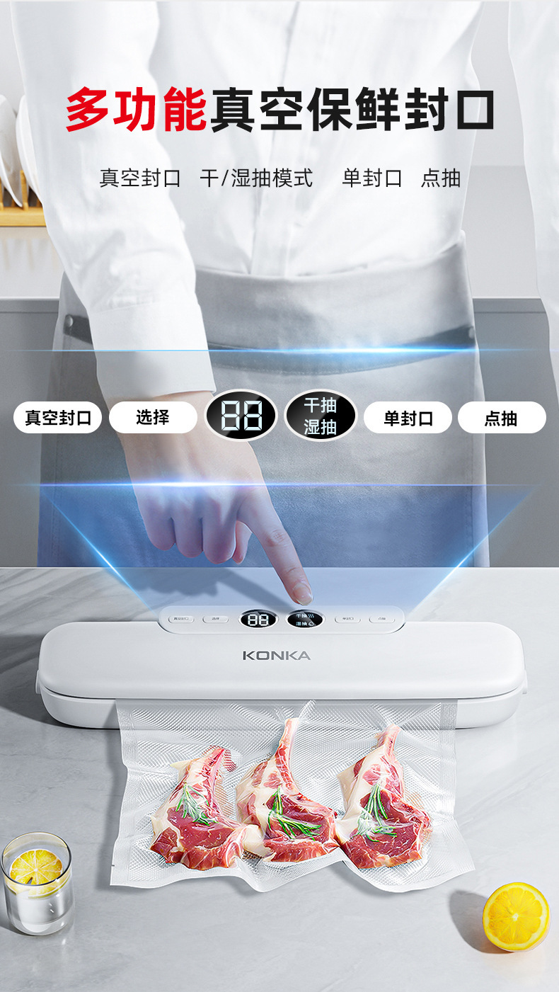 Konka 완전 자동 진공 밀봉 기계 올인원 진공 기계 건조하고 젖은 이중 목적 신선한 유지 백은 음식 가방을 선택하지 않습니다.스토어 가기