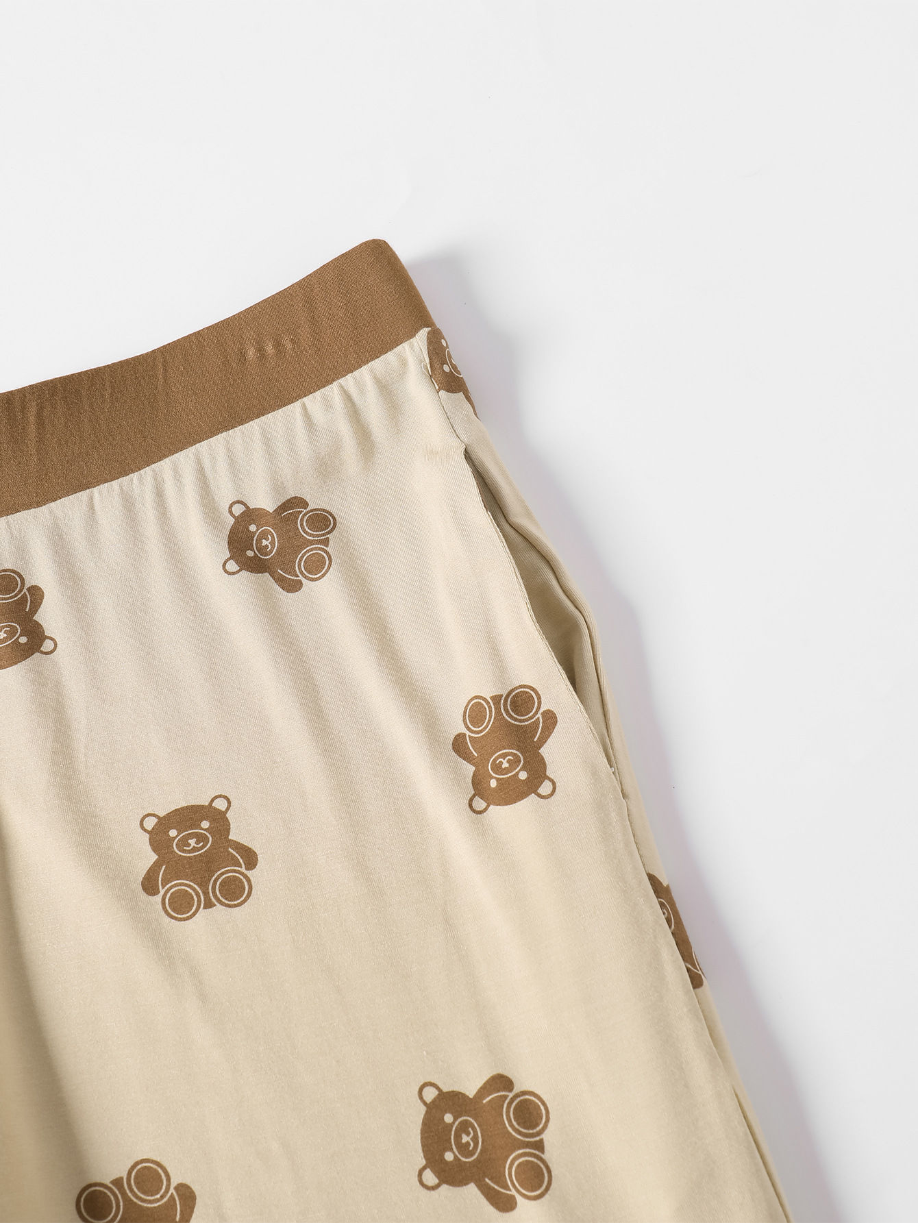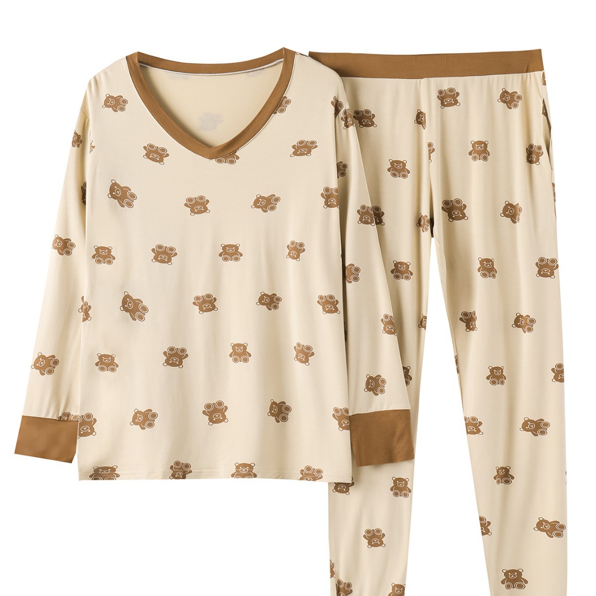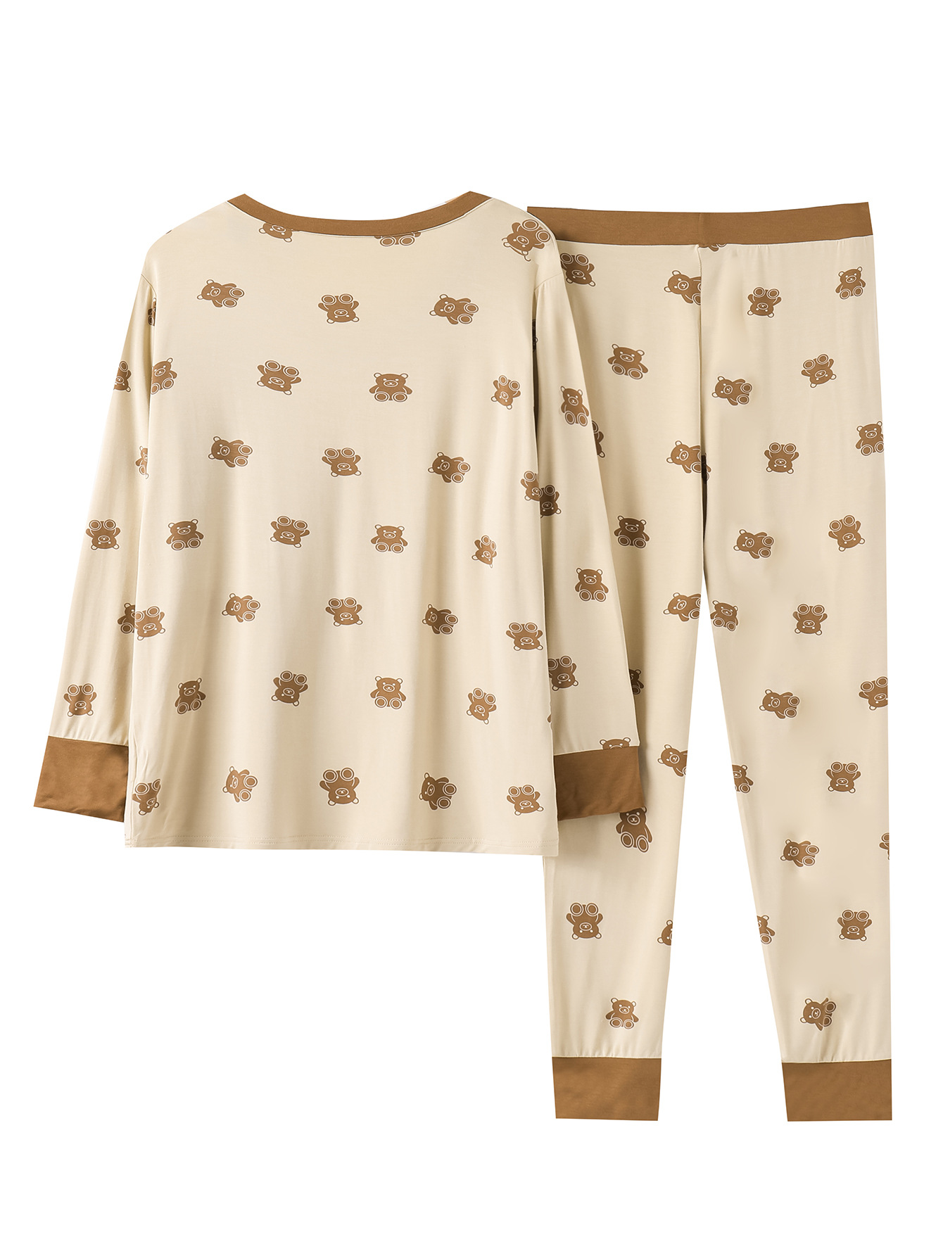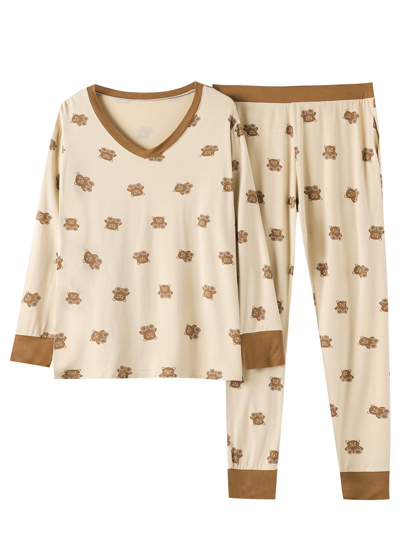 여성용 잠옷 대외 무역 대형 잠옷 홈웨어 긴팔 바지 정장 곰 프린트 대나무 섬유 원단 잠옷