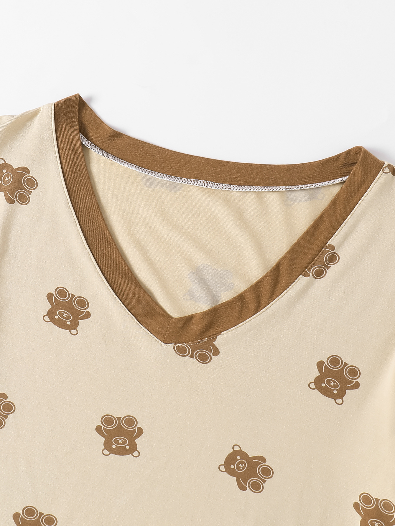 여성용 잠옷 대외 무역 대형 잠옷 홈웨어 긴팔 바지 정장 곰 프린트 대나무 섬유 원단 잠옷스토어 가기