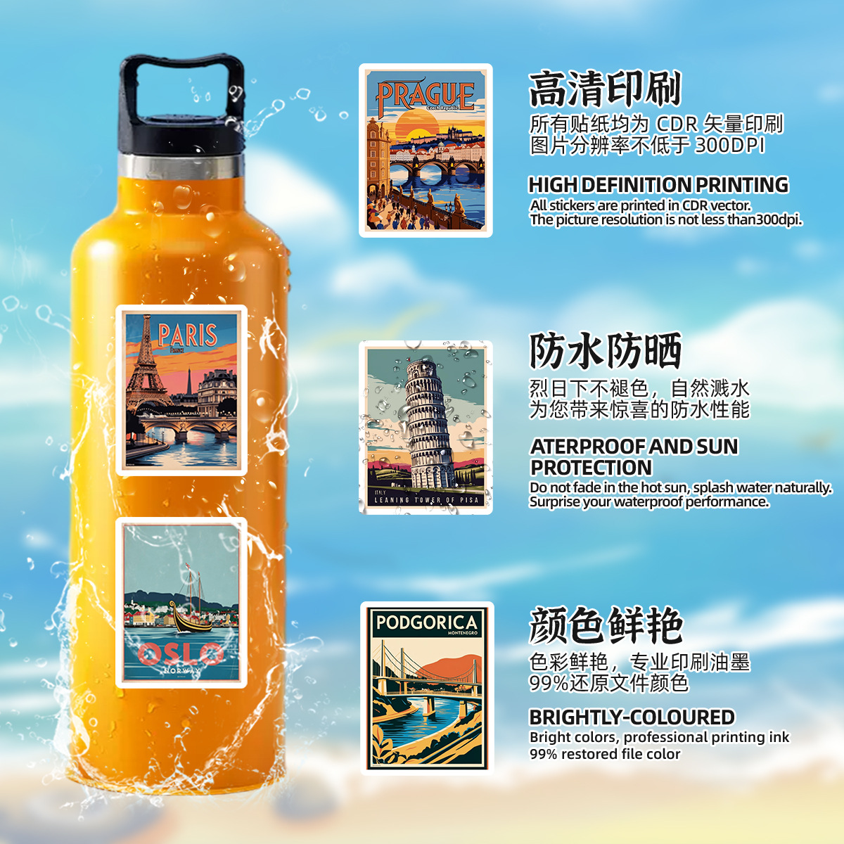 국경 50 유럽 여행 시리즈 낙서 스티커 물 컵 휴대 전화 컴퓨터 방수 장식 스티커 여행 스티커스토어 가기