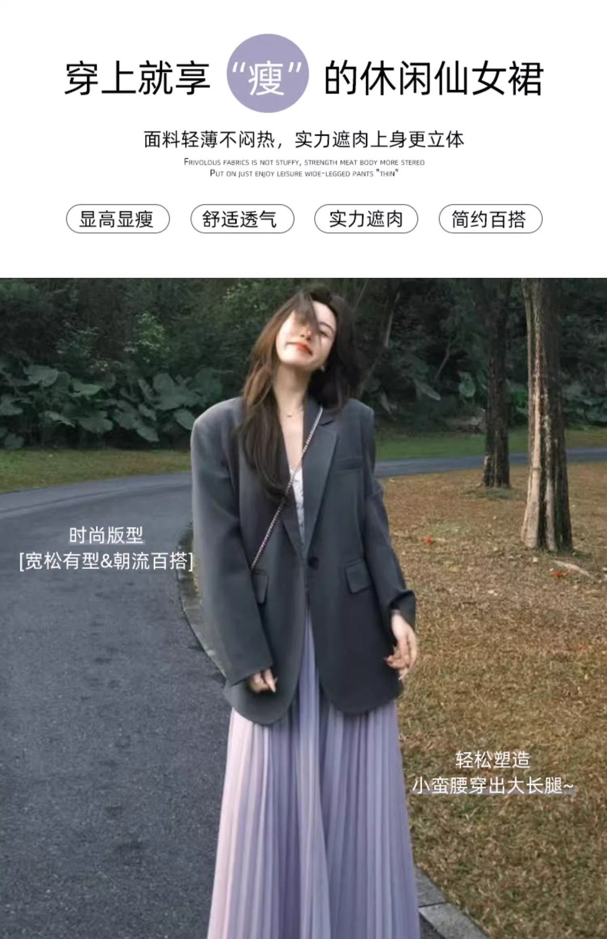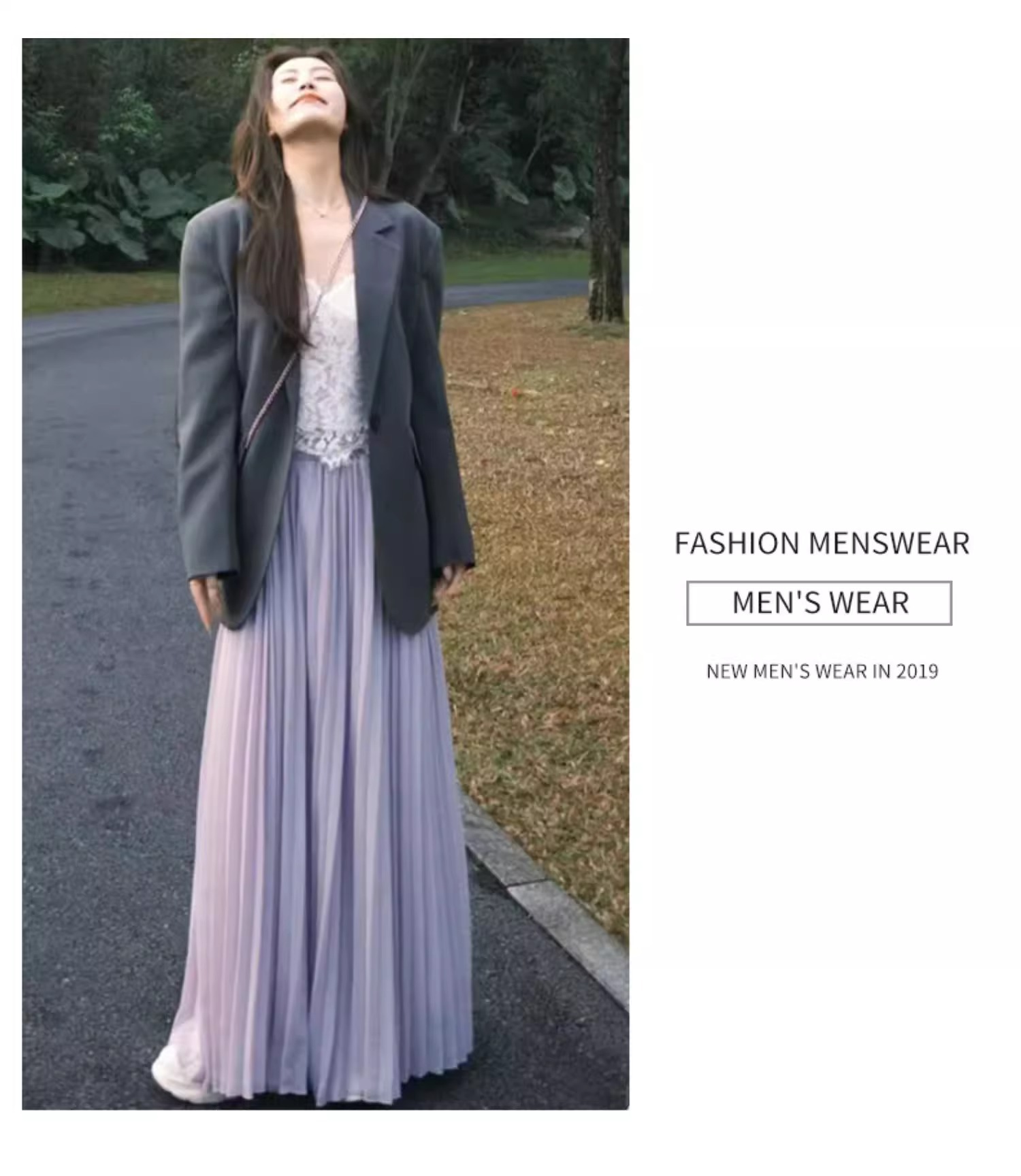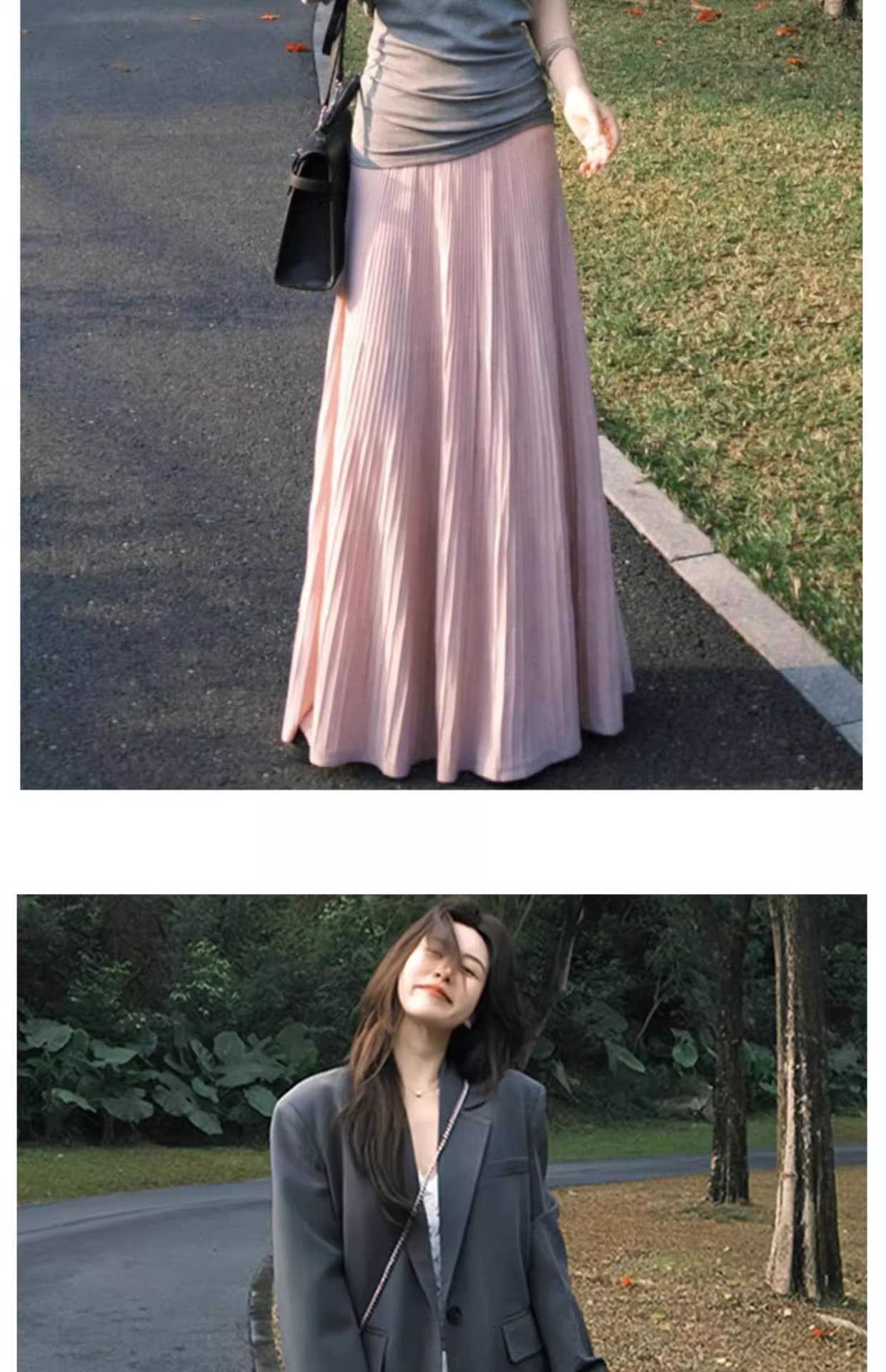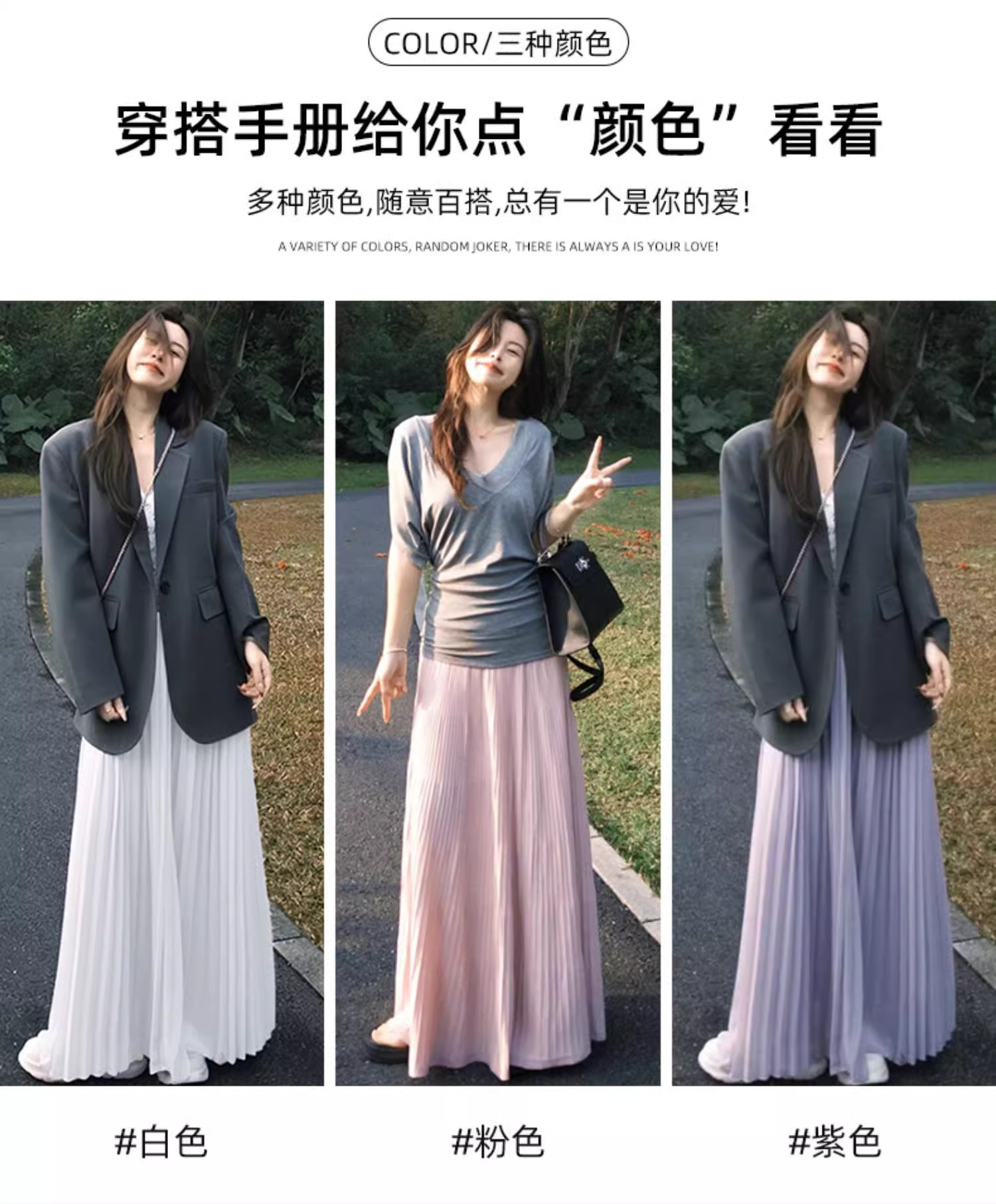 보라색 주름 치마 여성의 여름 얇은 2025 새로운 스타일 우아한 높은 허리 A 라인 거즈 스커트 작은 주름 치마스토어 가기