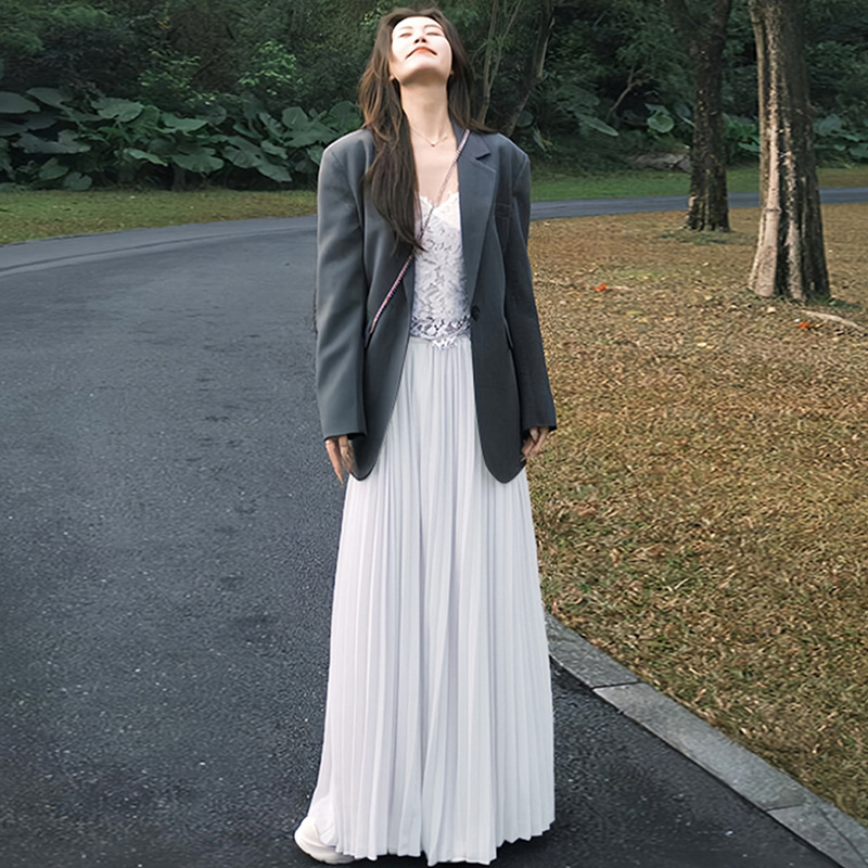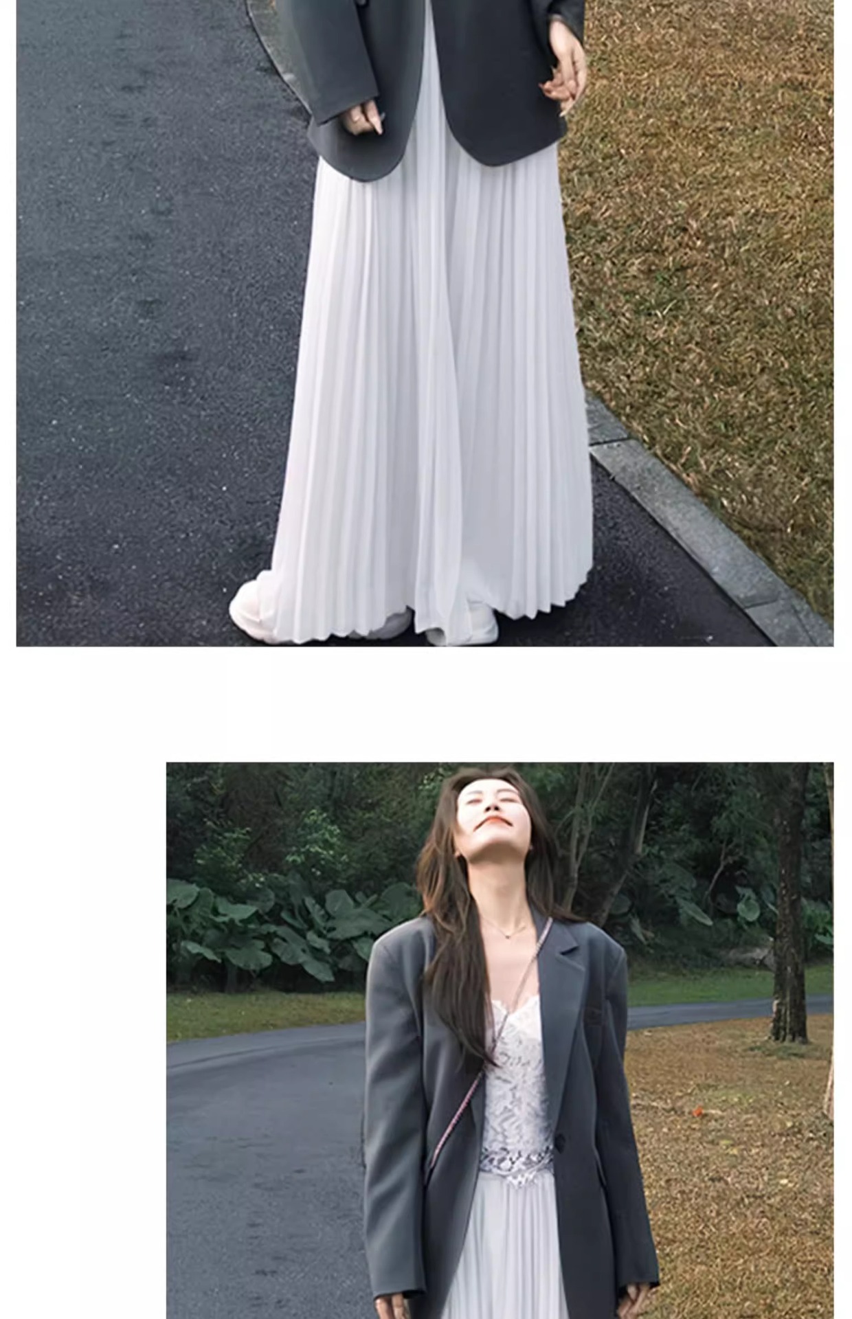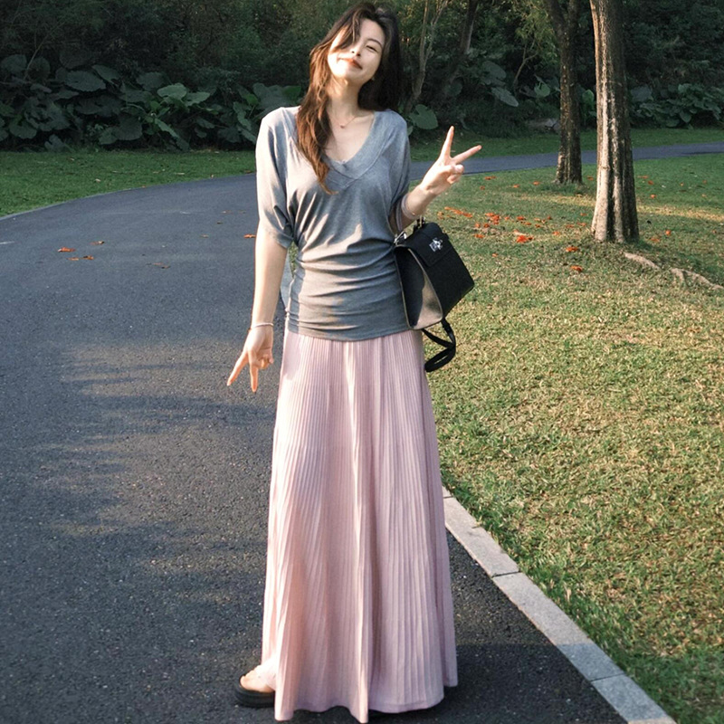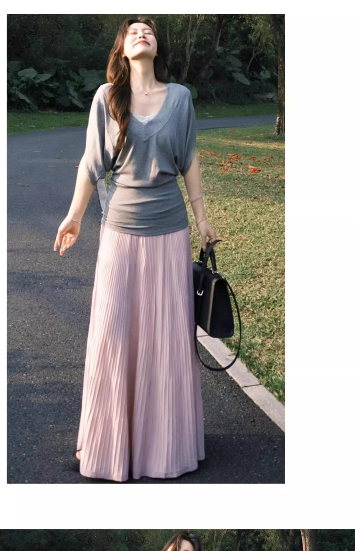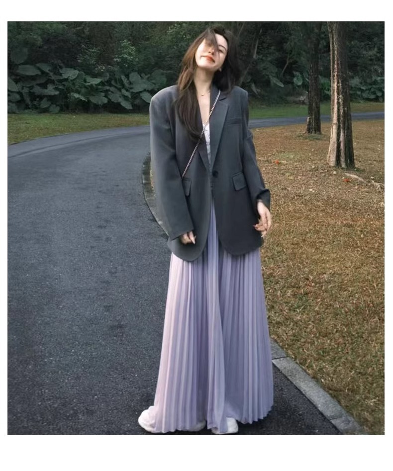 보라색 주름 치마 여성의 여름 얇은 2025 새로운 스타일 우아한 높은 허리 A 라인 거즈 스커트 작은 주름 치마스토어 가기