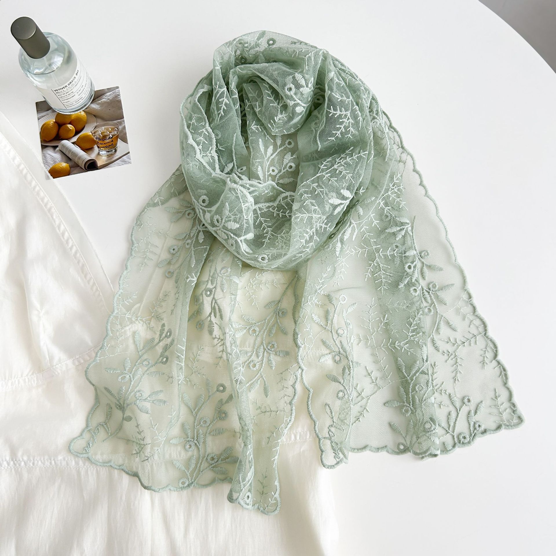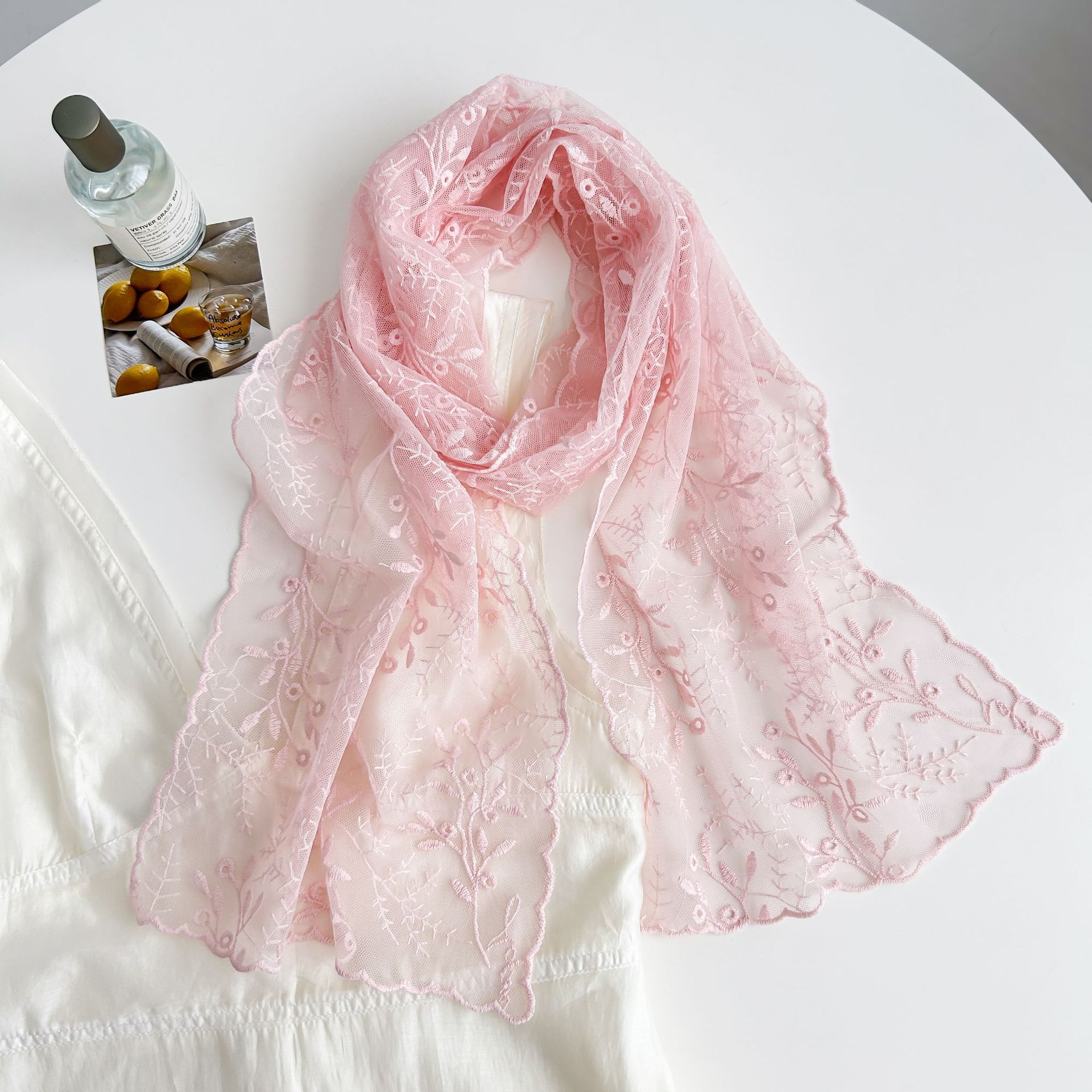 [레이스 시리즈] 봄과 여름 얇은 레이스 스카프 여름 선 스크린 스카프 조커 단색 아트 목도리 스카프