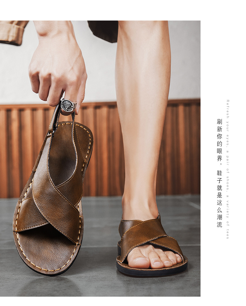 로마 남성 샌들 크로스보더 남성 샌들 정품 가죽 샌들 다용도 여름 대외 무역 대형 남성 로마 샌들