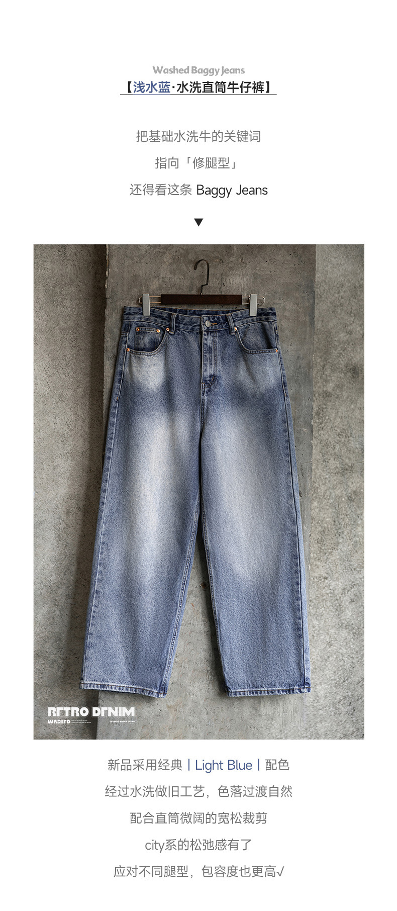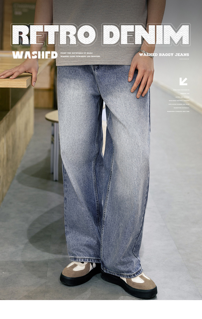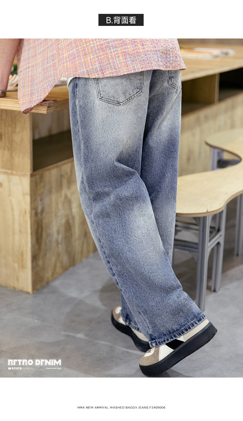 MRA 남성 레트로 워싱 데님 청바지 루즈 스트레이트 와이드 팬츠 캐주얼 롱 팬츠 남성 봄스토어 가기