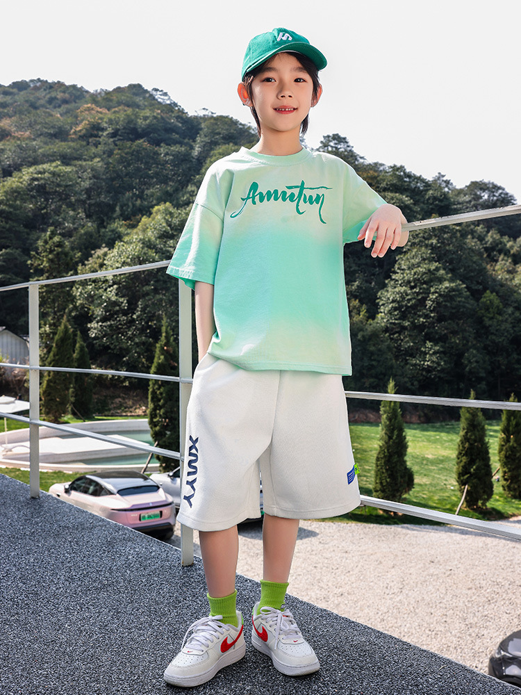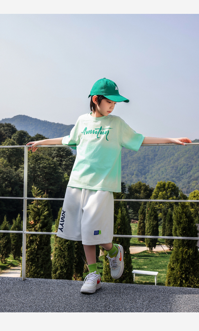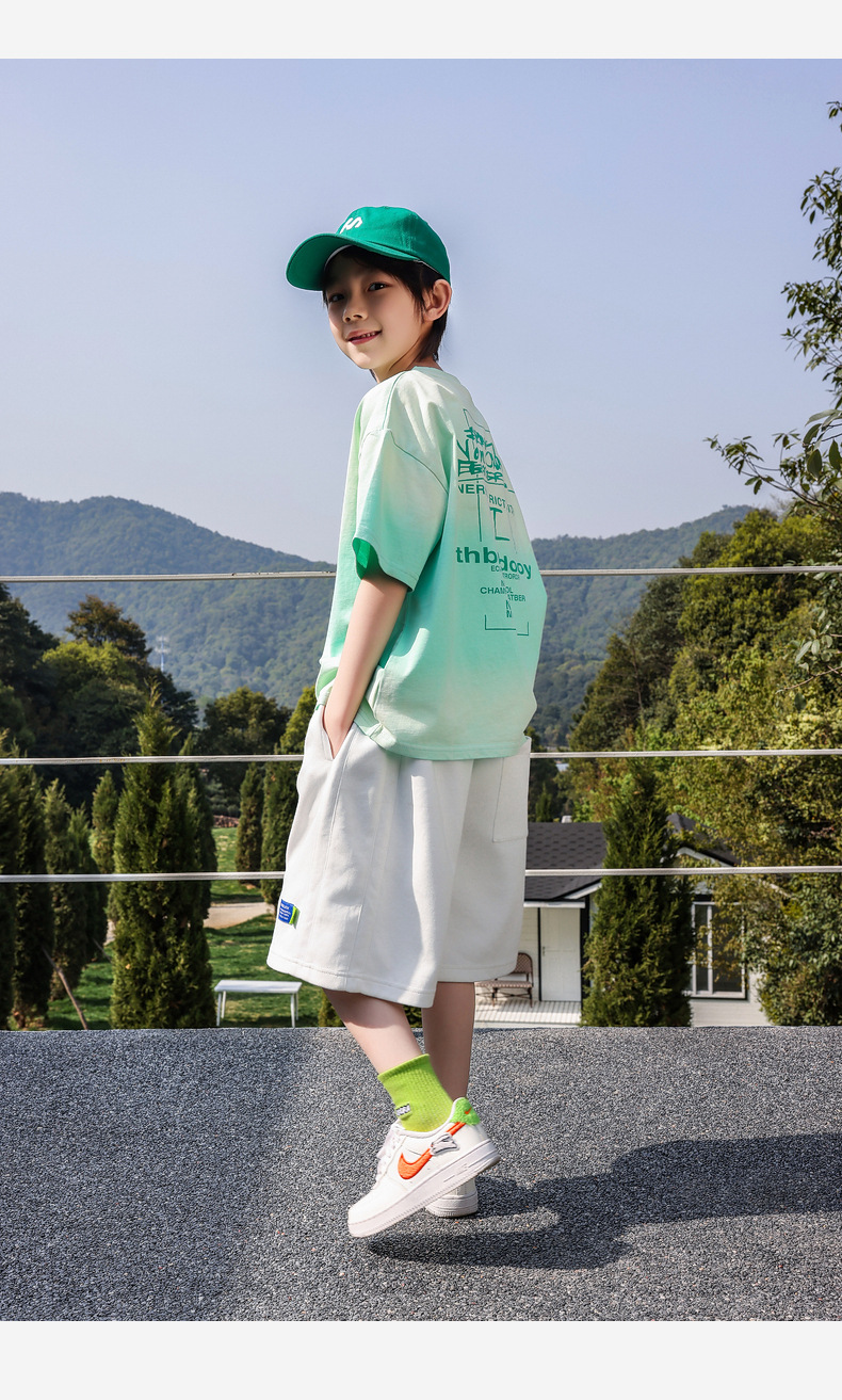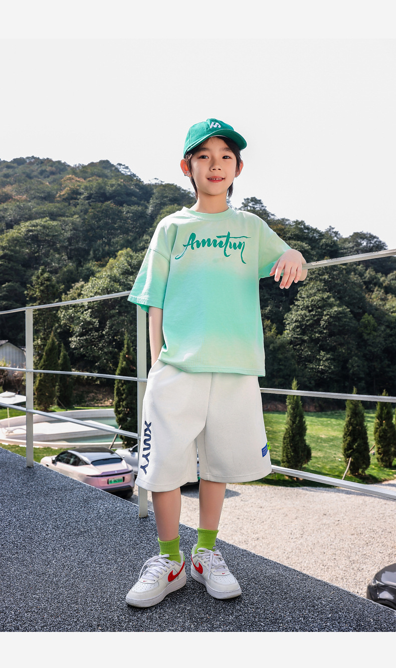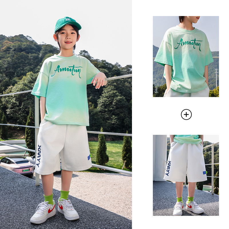 Panda Yuanyuan 2025 여름 새로운 그라디언트 소년 반팔 세트 Huzhou Zhili 아동복 어린이 스포츠 여름복스토어 가기
