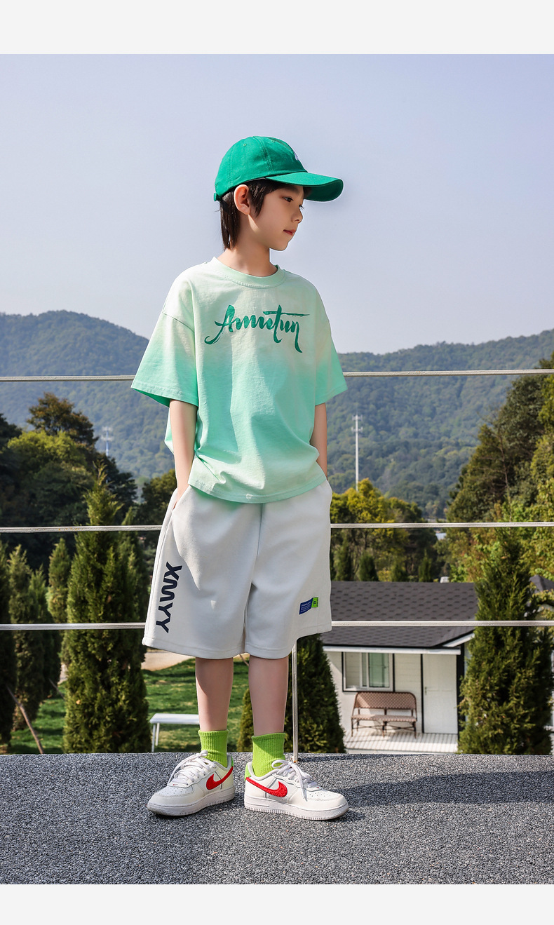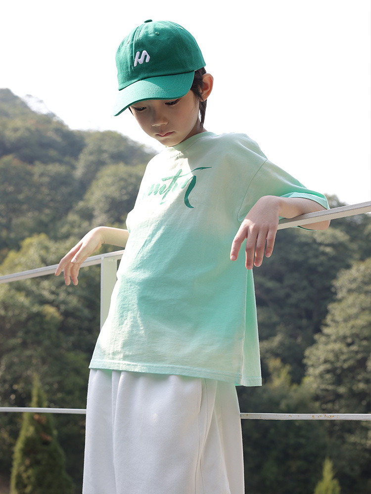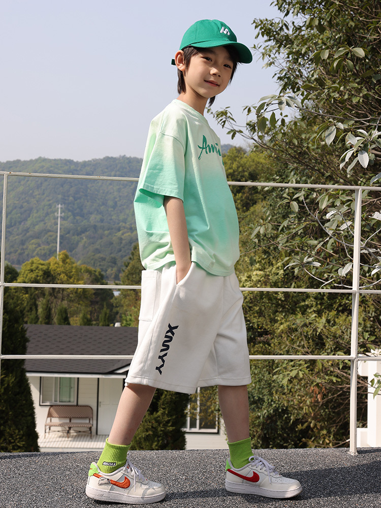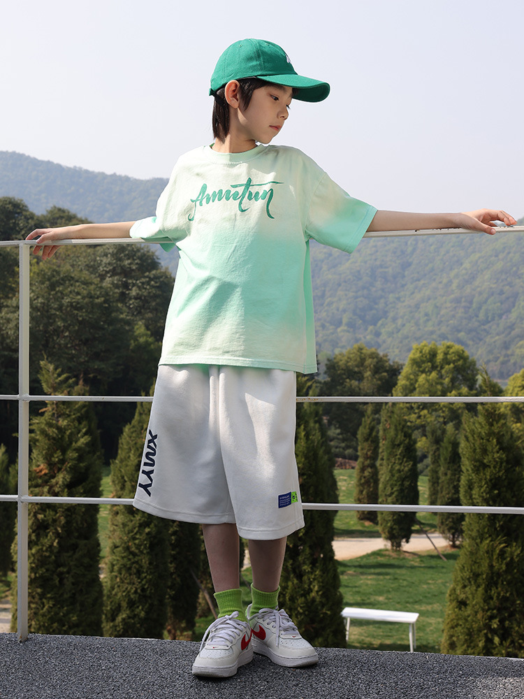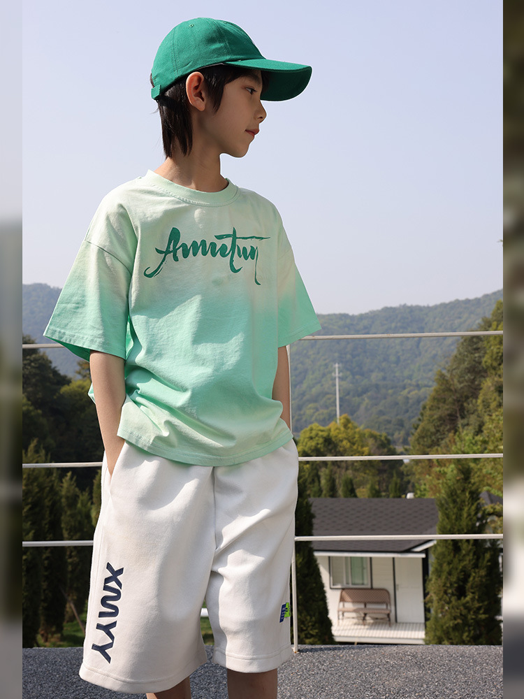 Panda Yuanyuan 2025 여름 새로운 그라디언트 소년 반팔 세트 Huzhou Zhili 아동복 어린이 스포츠 여름복스토어 가기