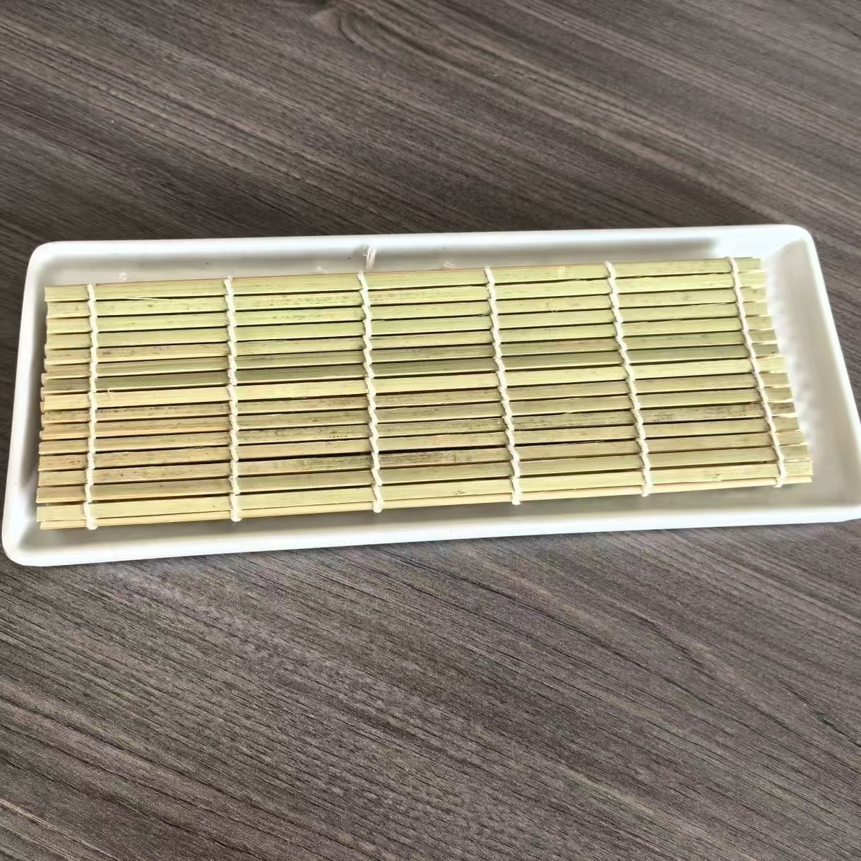 • 흰색 망치로 쳐진 긴 접시 + 대나무 커튼 [멜라민 + 대나무]