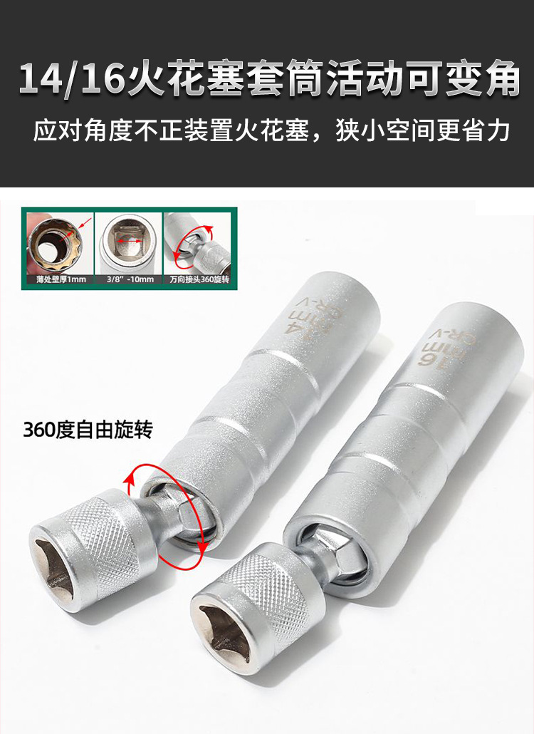 자동 수리를위한 마그네틱 스파크 플러그 슬리브 14/16mm 초박형 강한 자기 범용 연장 렌치 특수 분해 도구