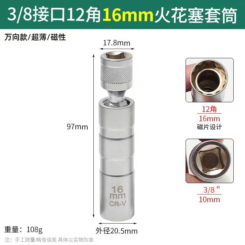 자동 수리를위한 마그네틱 스파크 플러그 슬리브 14/16mm 초박형 강한 자기 범용 연장 렌치 특수 분해 도구스토어 가기