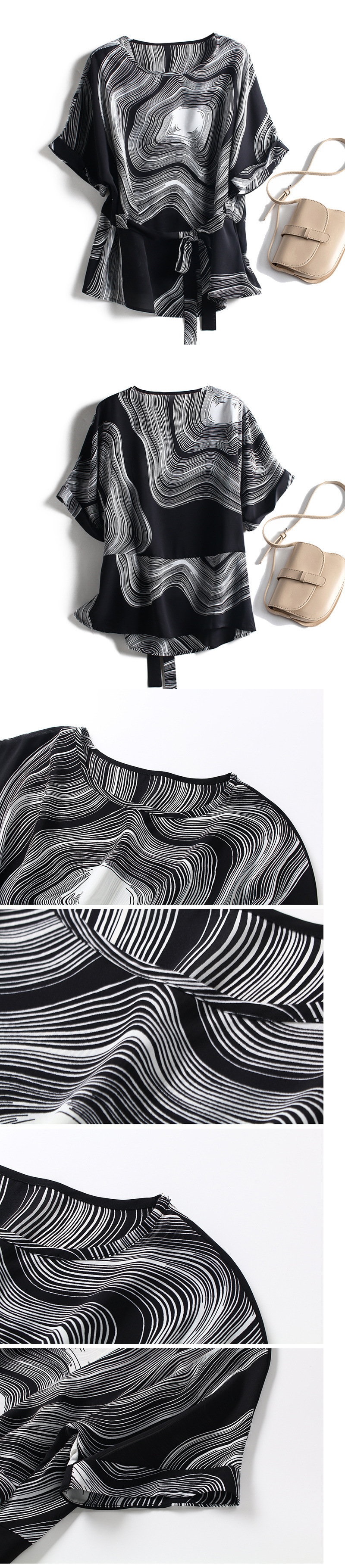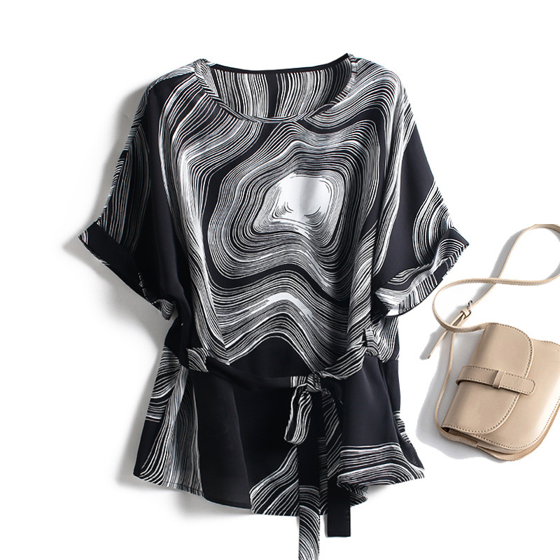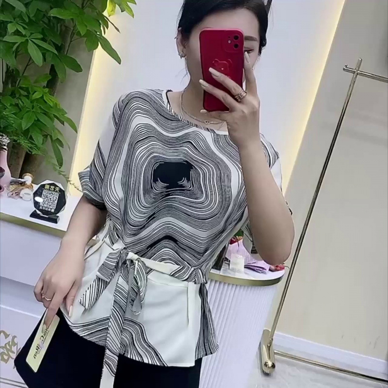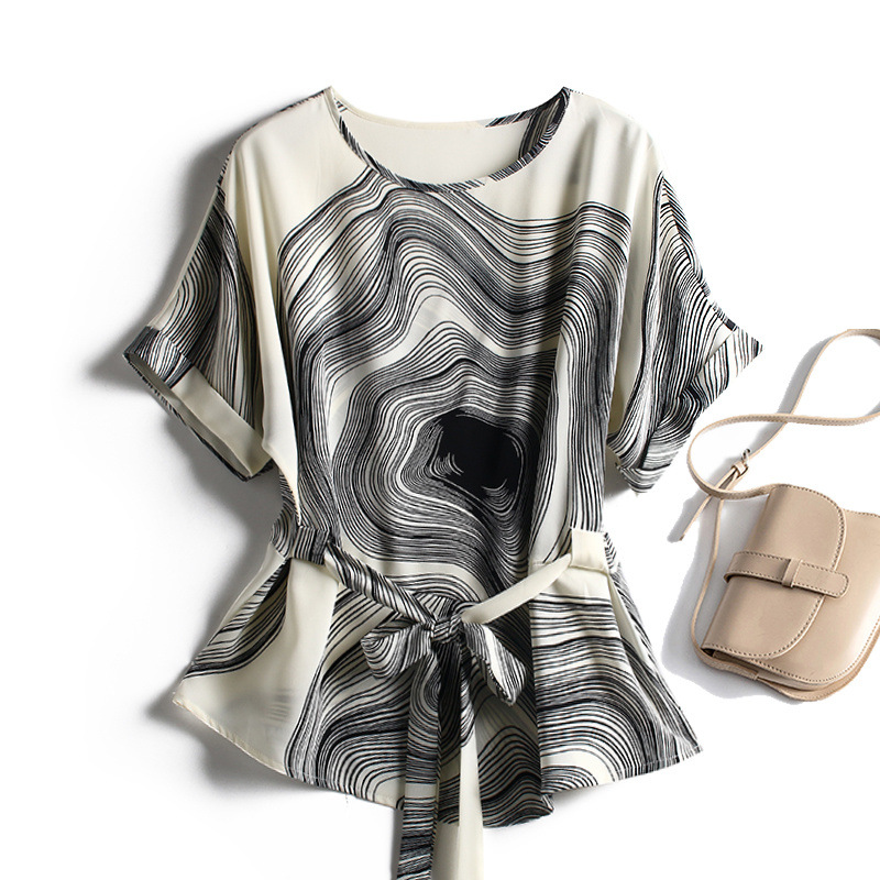 여성용 핀치 웨이스트 셔츠, 슬리밍 쉬폰 탑, 여성용 여름 예쁜 프린트 레이스 업 엄마복, 작은 티셔츠스토어 가기