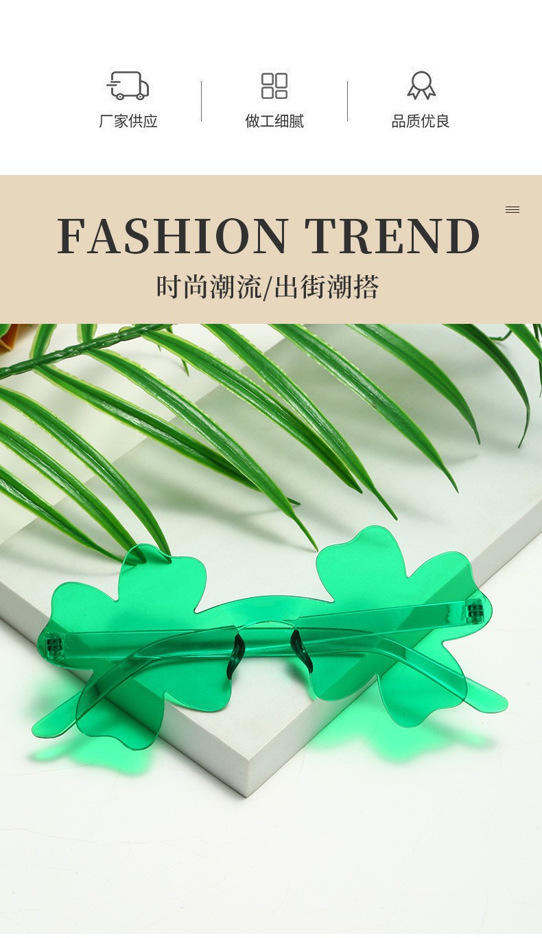 TY12 국경 간 네잎 클로버 선글라스 맞춤형 캔디 컬러 결합 안경 파티 파티 장식 선글라스 도매스토어 가기