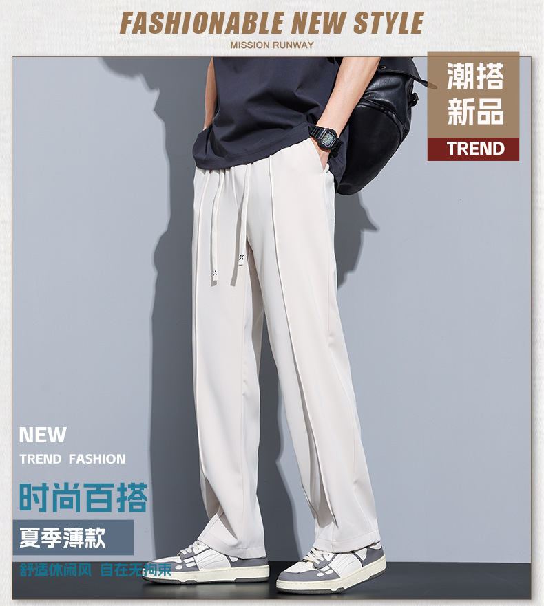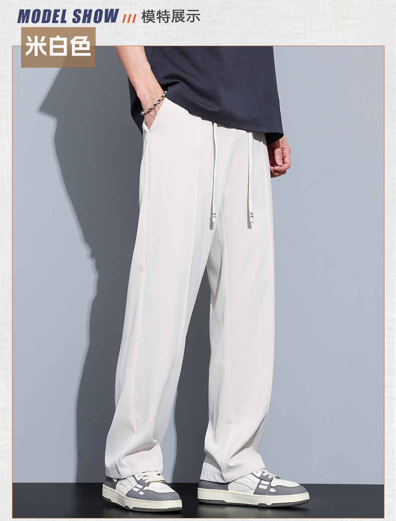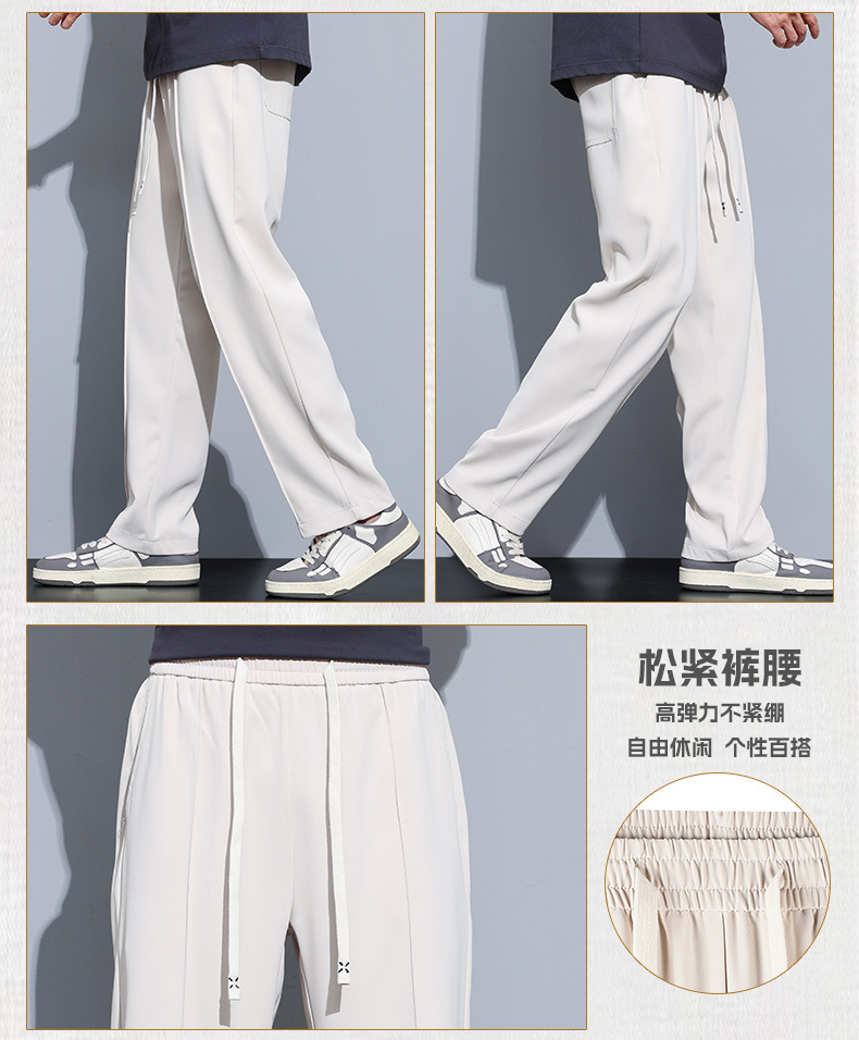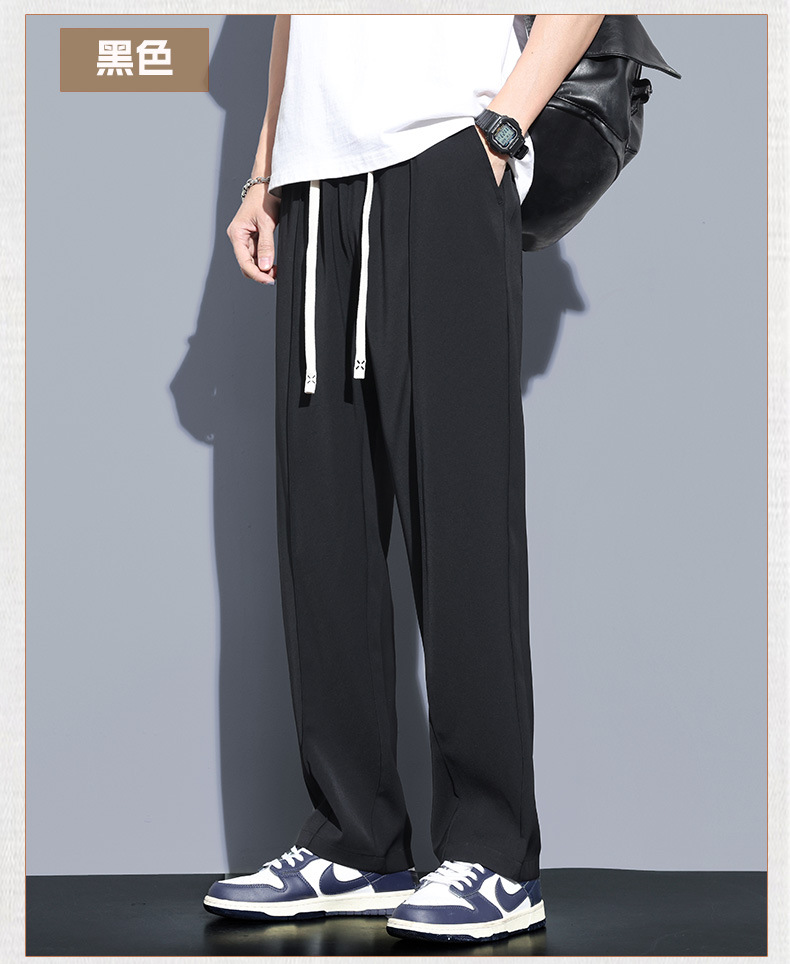 冰丝休闲裤男垂感宽松直筒速干潮牌美式运动阔腿长裤子帅气夏季