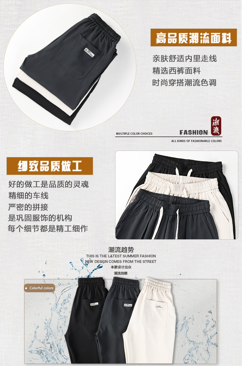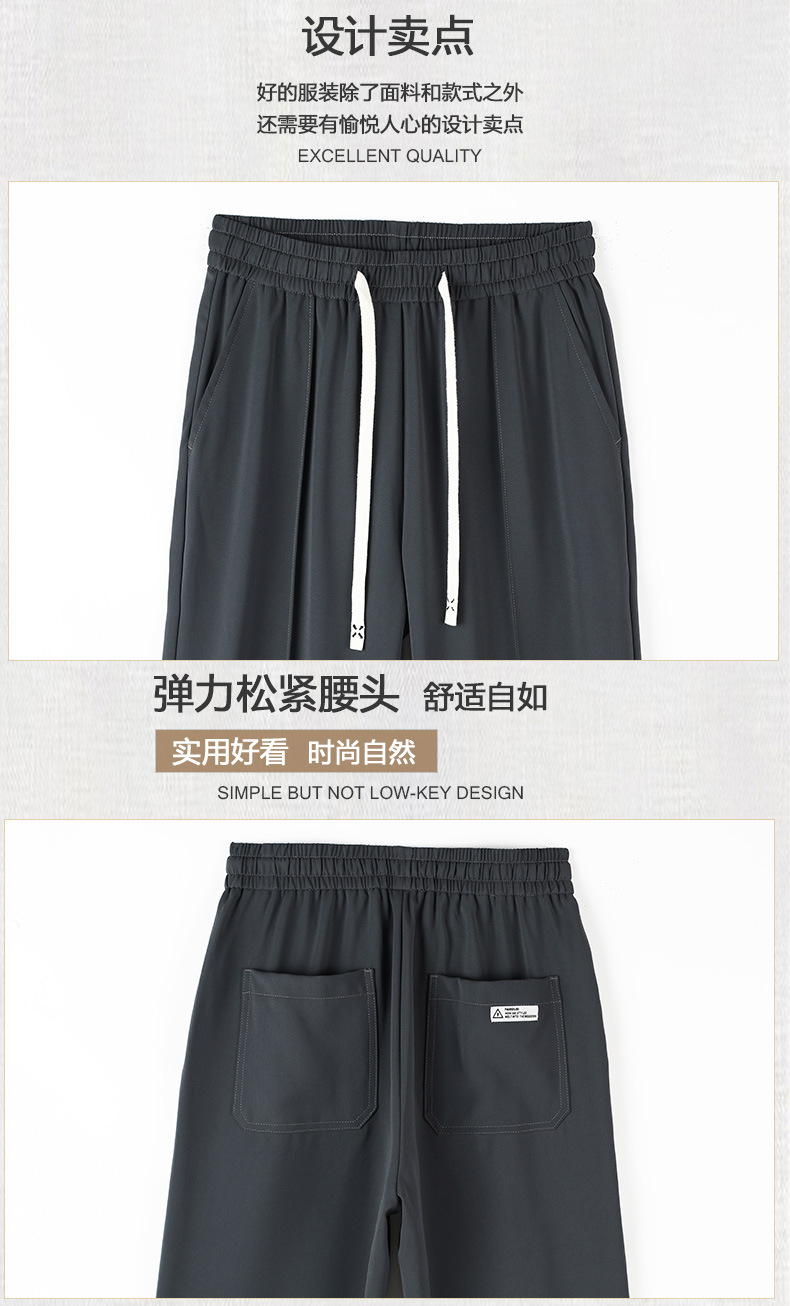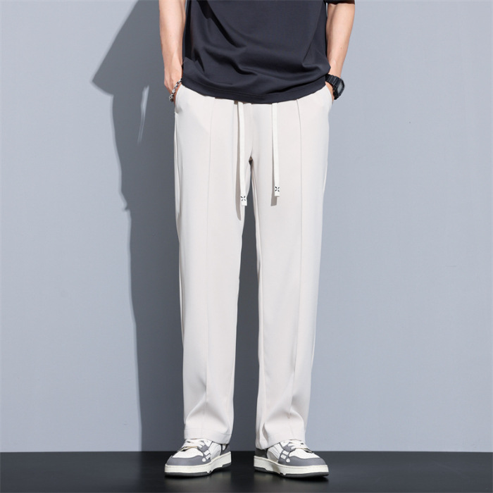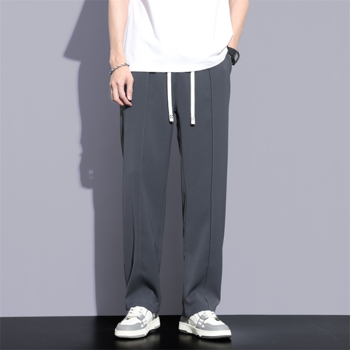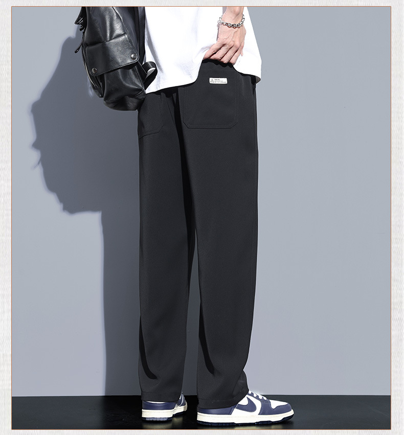 冰丝休闲裤男垂感宽松直筒速干潮牌美式运动阔腿长裤子帅气夏季