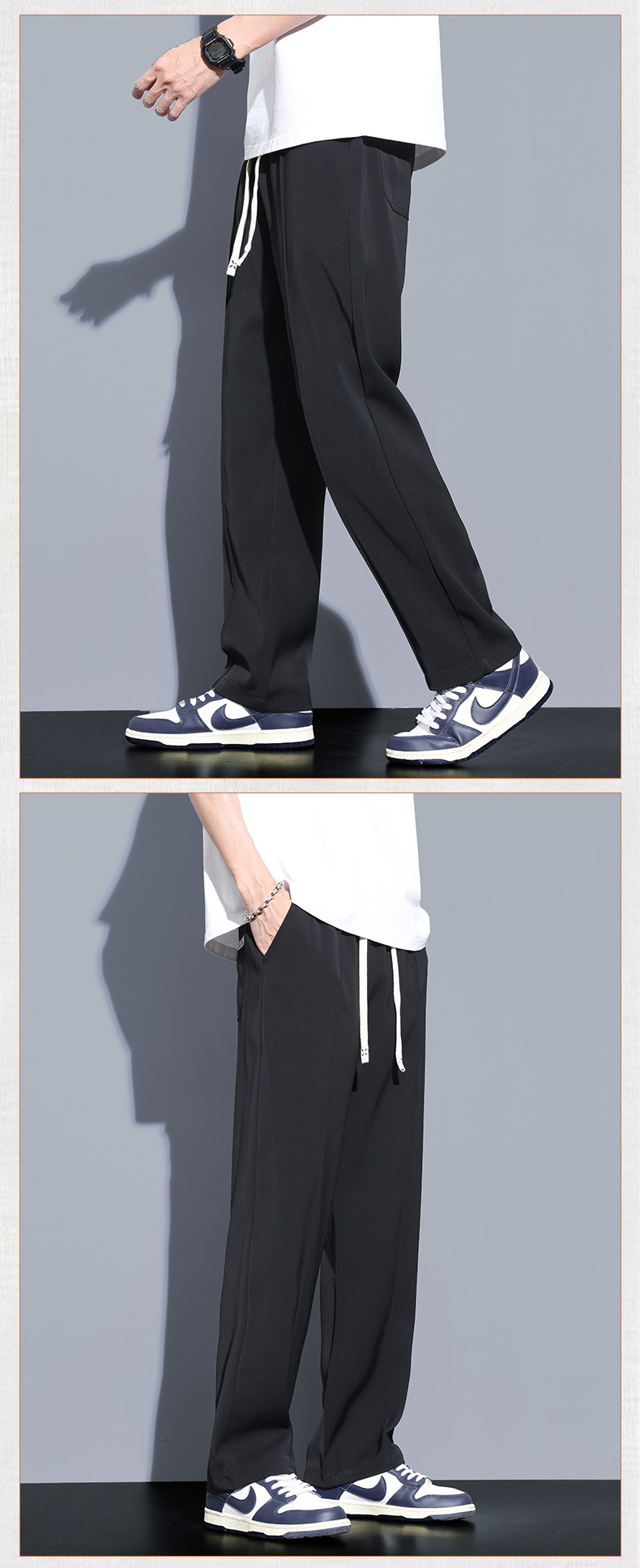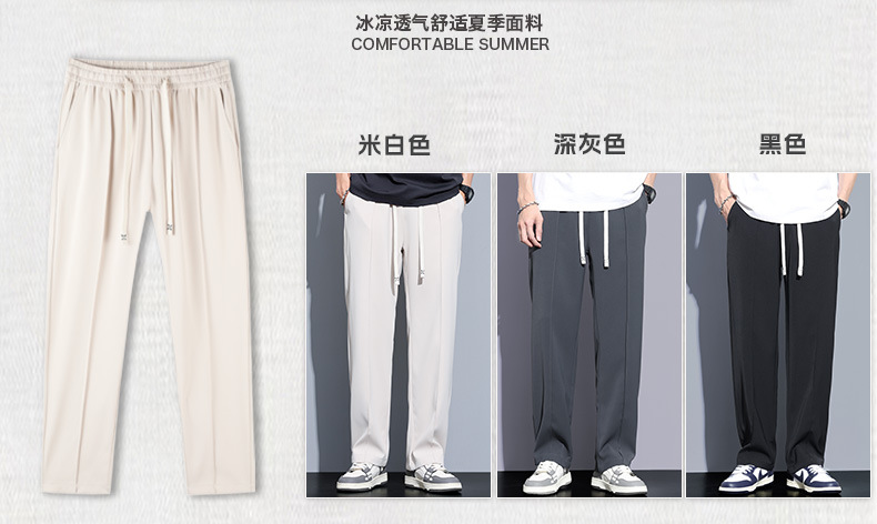 冰丝休闲裤男垂感宽松直筒速干潮牌美式运动阔腿长裤子帅气夏季스토어 가기