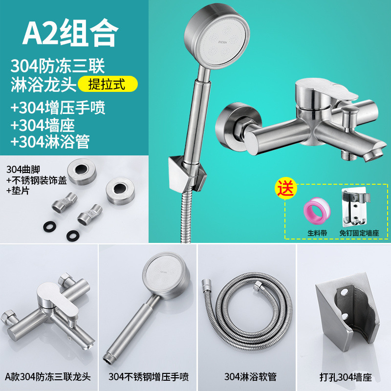 304 스테인레스 스틸 샤워 수도꼭지 샤워 세트 냉수 히터 욕조 혼합 밸브 욕조 트리플 스위치스토어 가기
