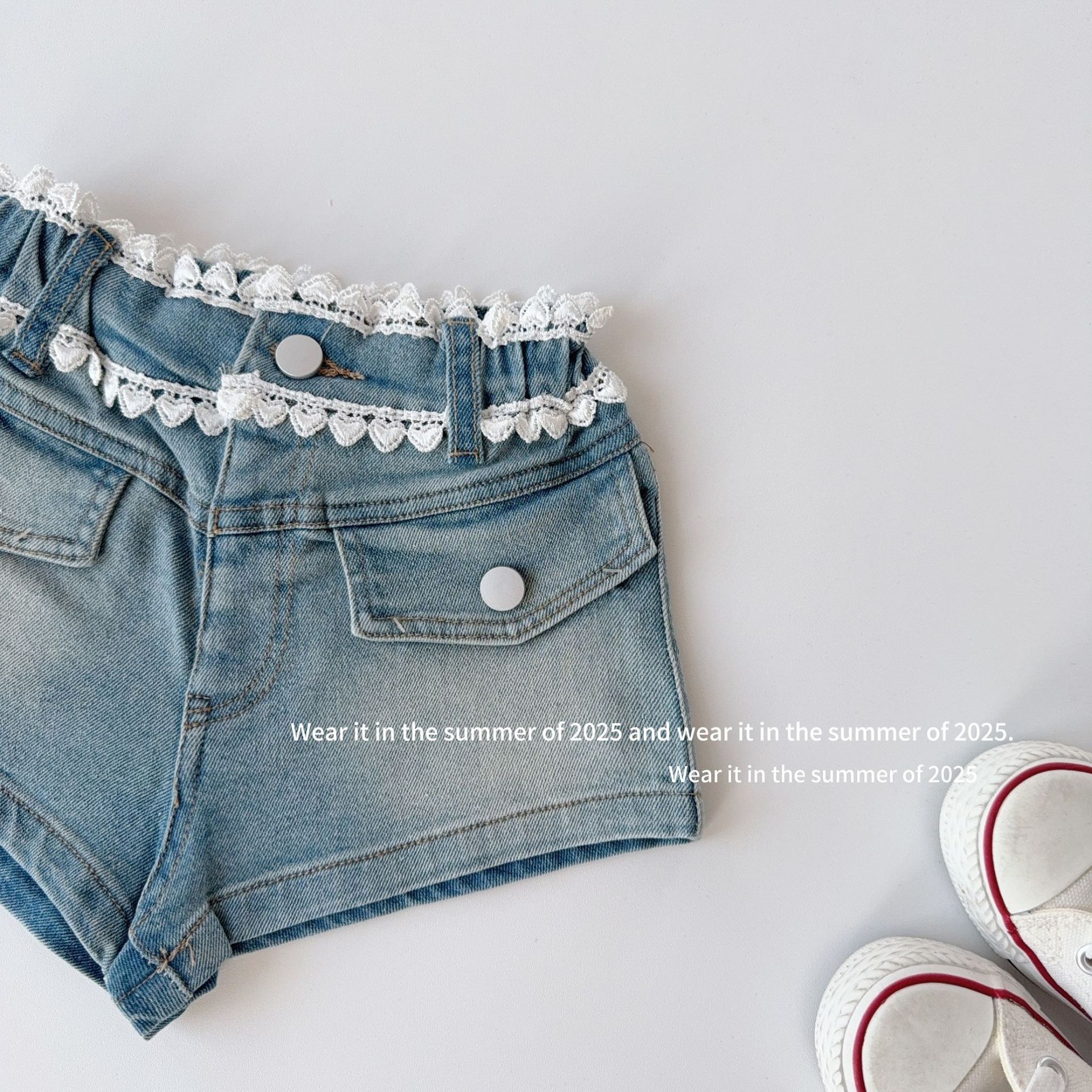 [스트레치] 걸스 아메리칸 스파이스 낮은 허리 바느질 레이스 청바지 반바지 여름 레트로 핫 바지