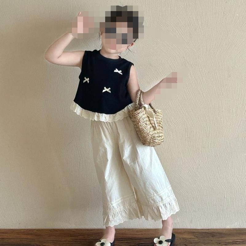 소녀 세트 여름 새로운 어린이 활 조끼 넓은 다리 바지 투피스 서양식 공주 스타일 레이스 탑