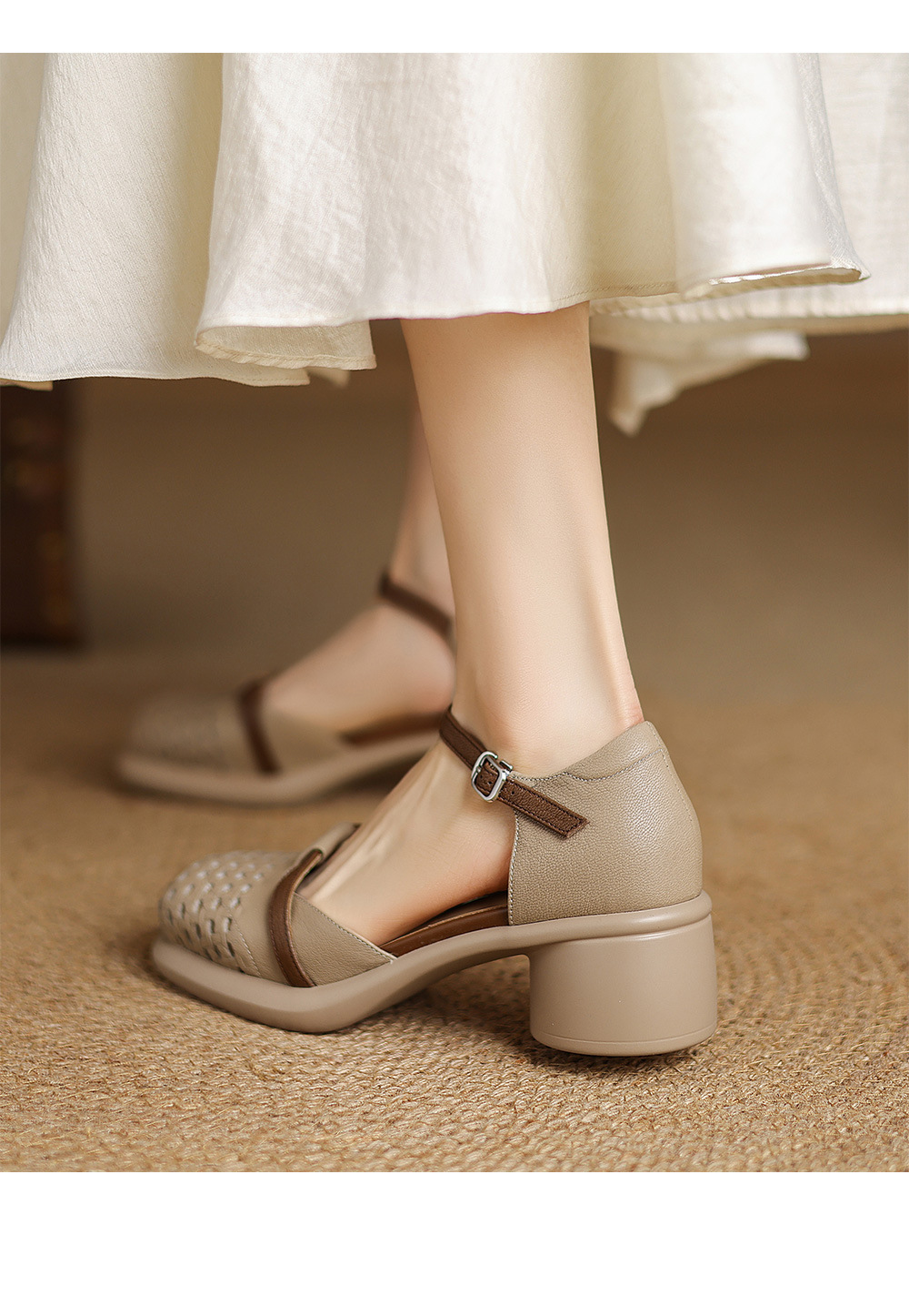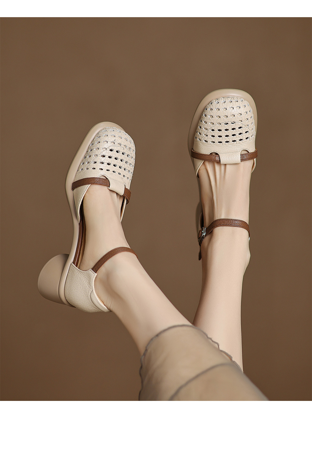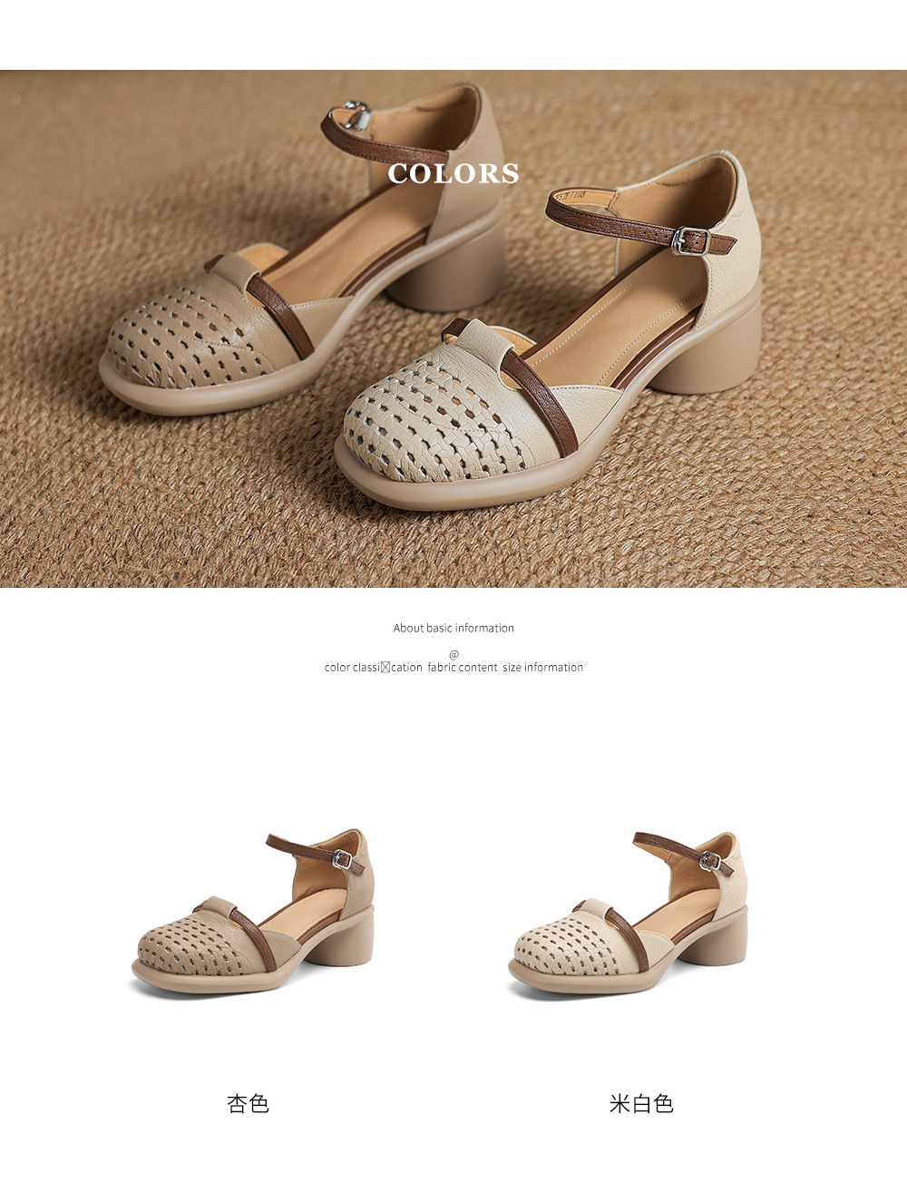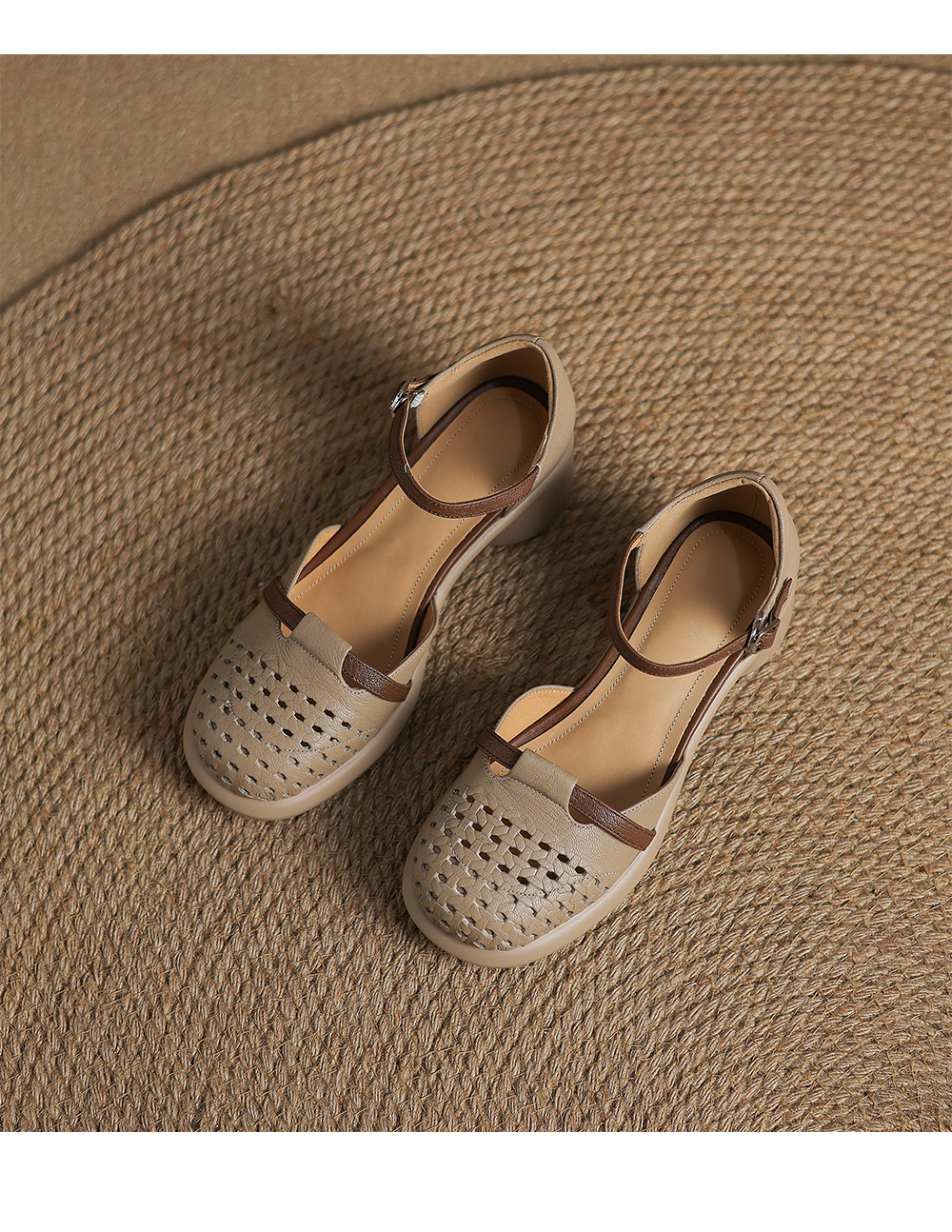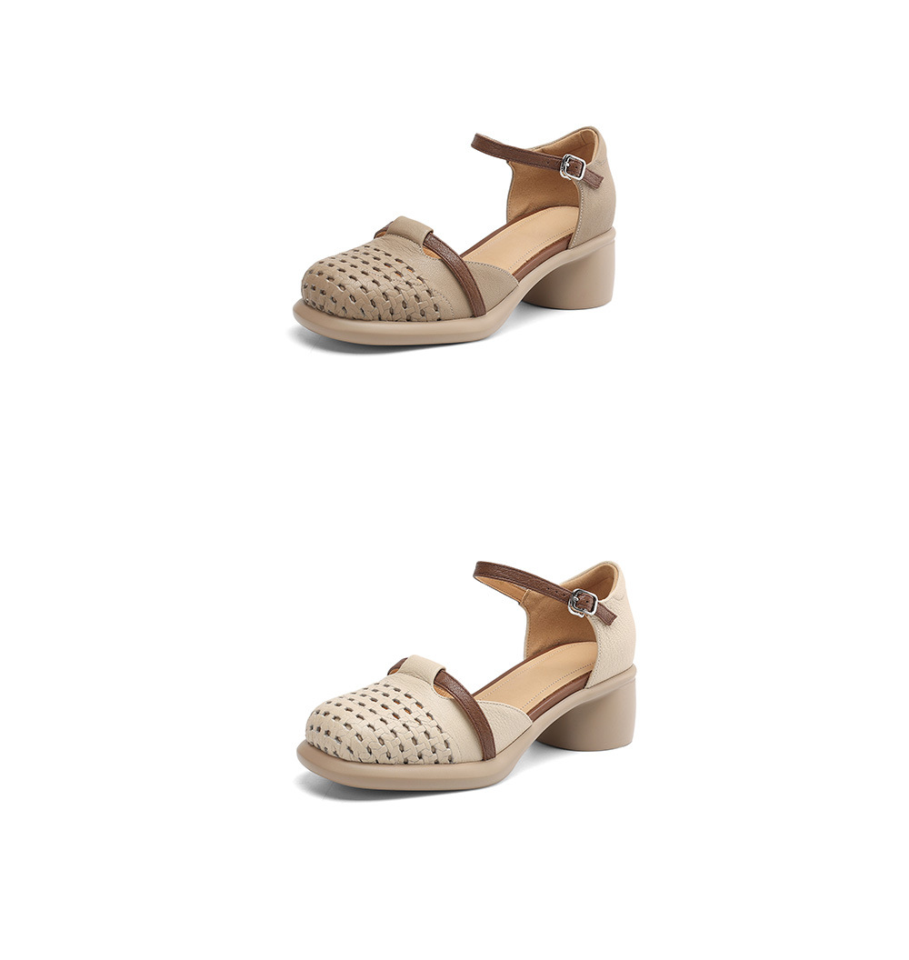 레트로 컬러 블록 플랫폼 하이힐 샌들 여성용 여름 Baotou 할로우 두꺼운 발 뒤꿈치 캐주얼 버클 로마 신발 샌들스토어 가기
