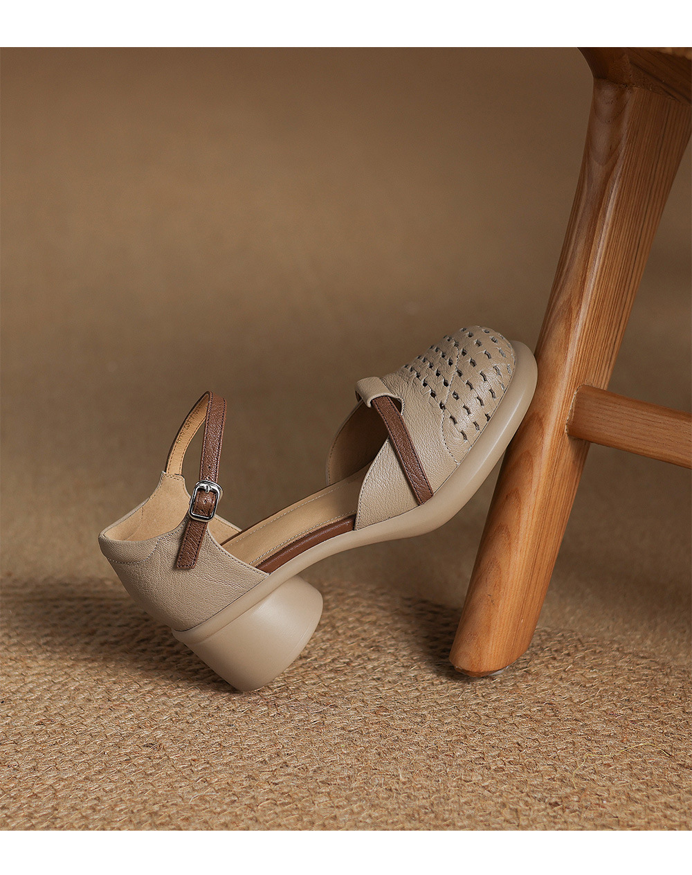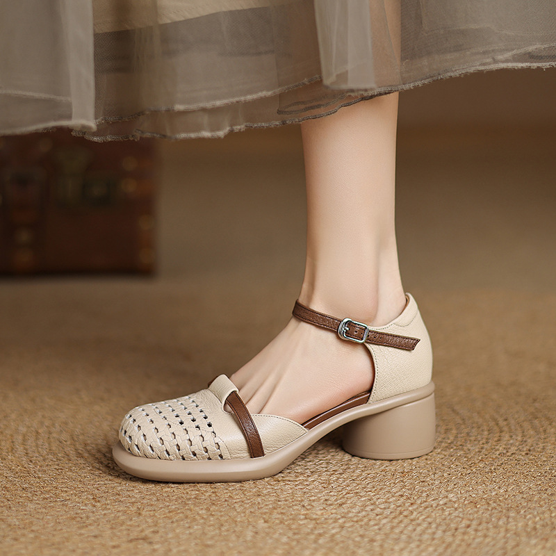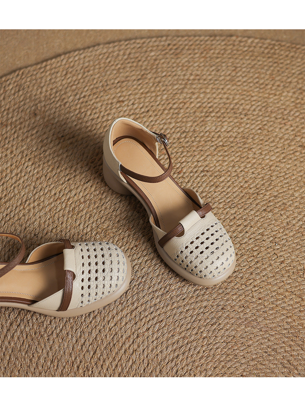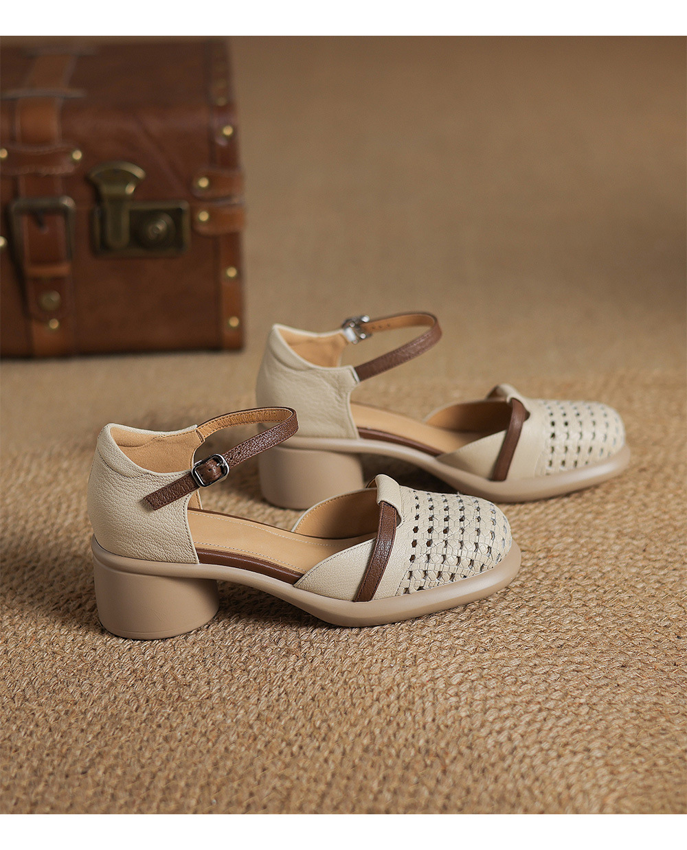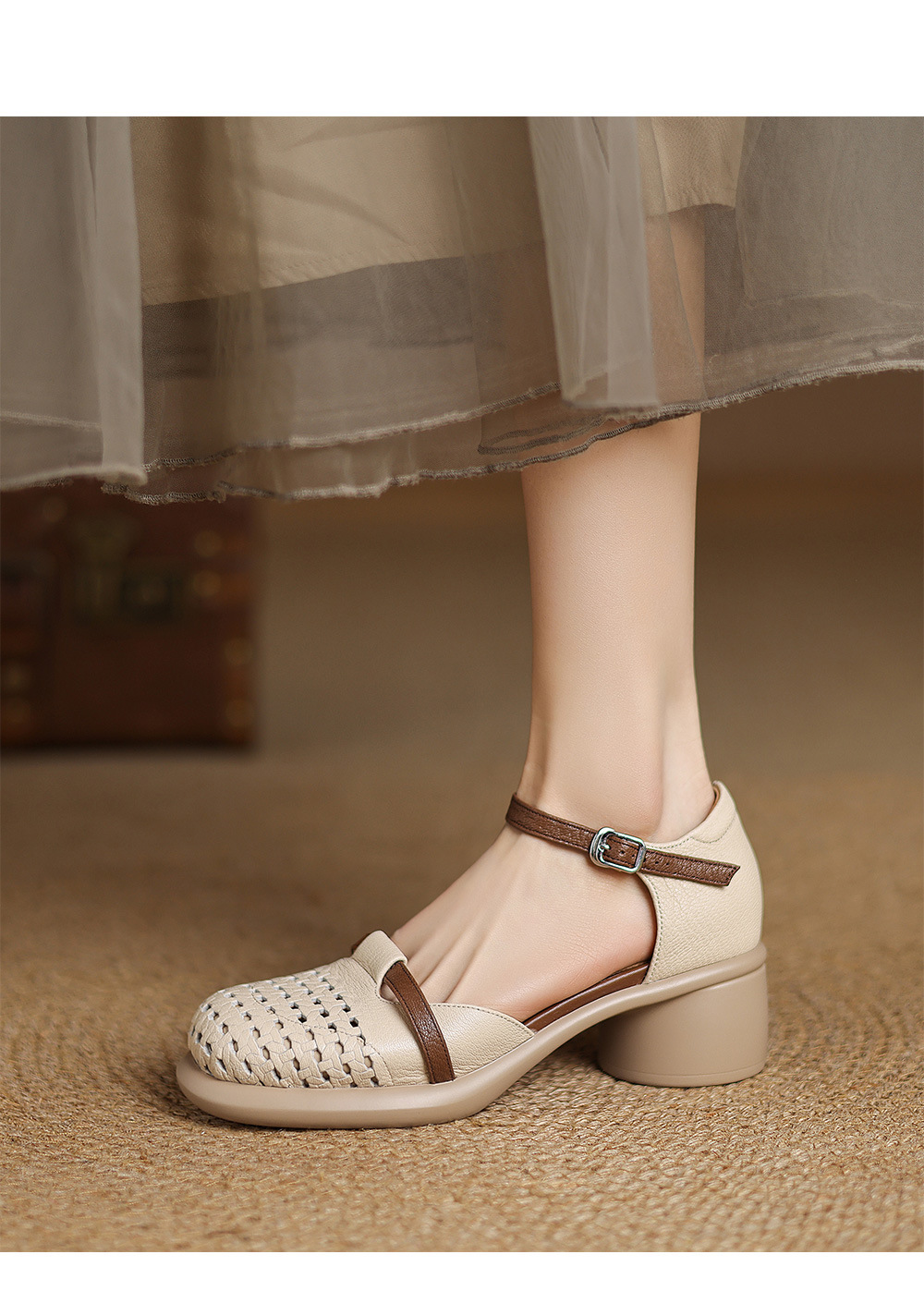 레트로 컬러 블록 플랫폼 하이힐 샌들 여성용 여름 Baotou 할로우 두꺼운 발 뒤꿈치 캐주얼 버클 로마 신발 샌들스토어 가기
