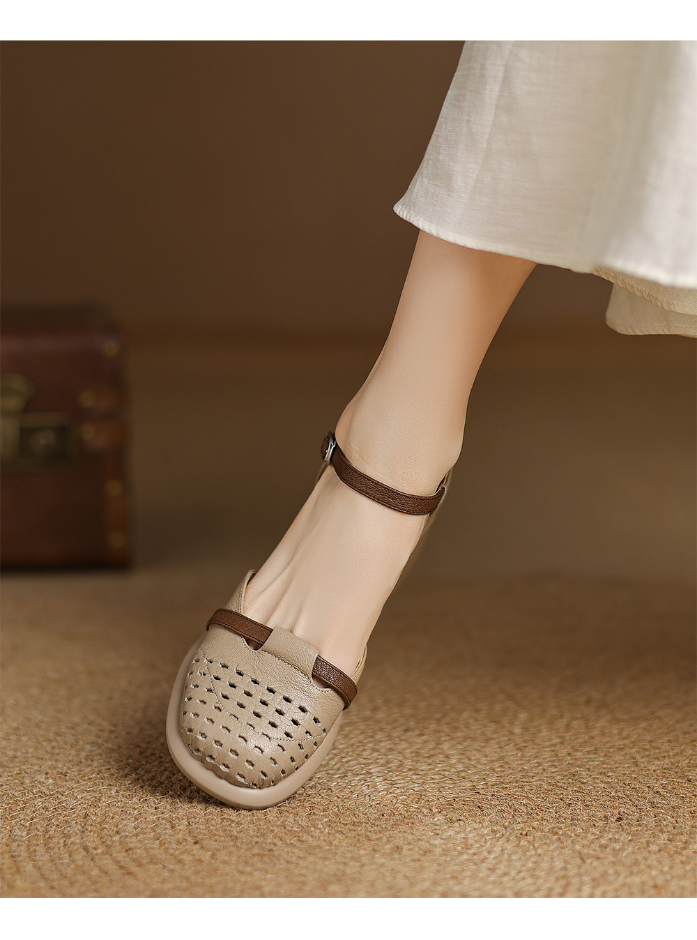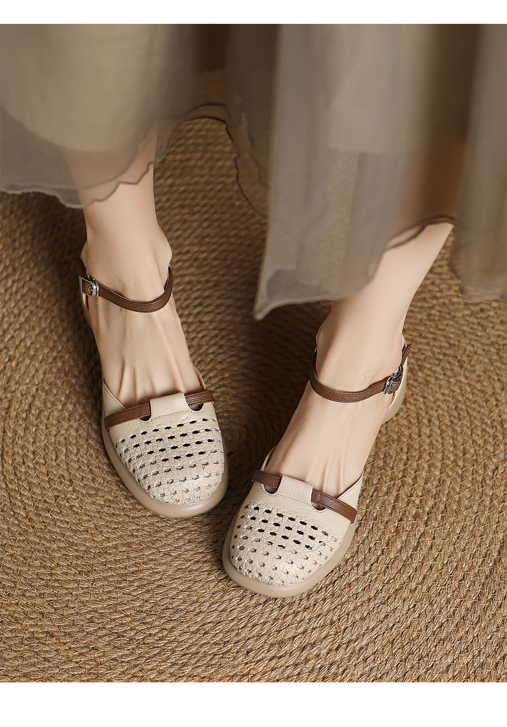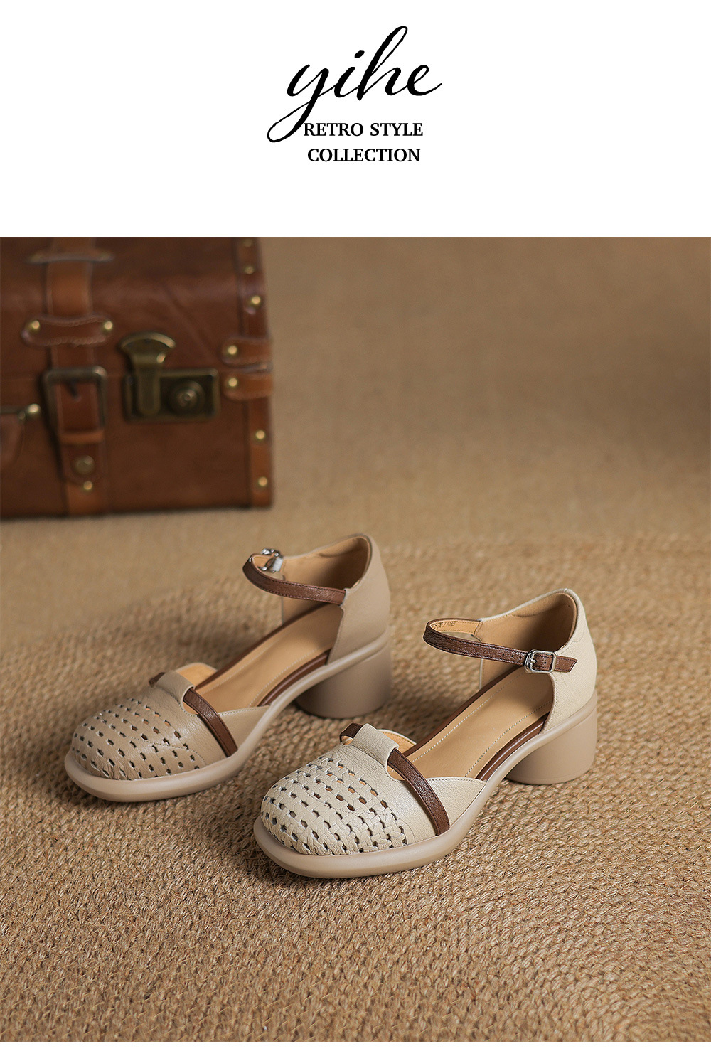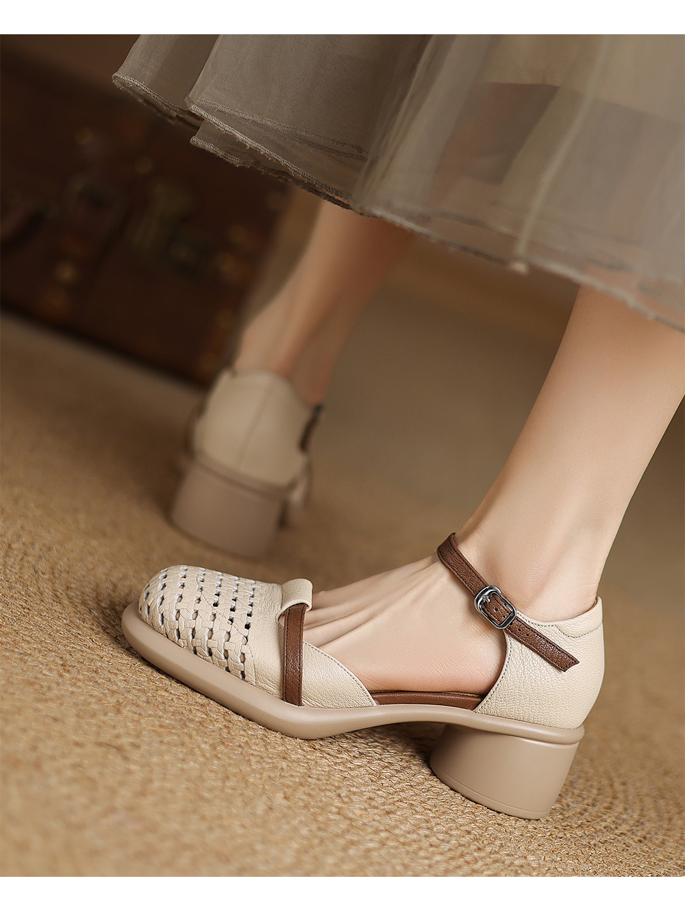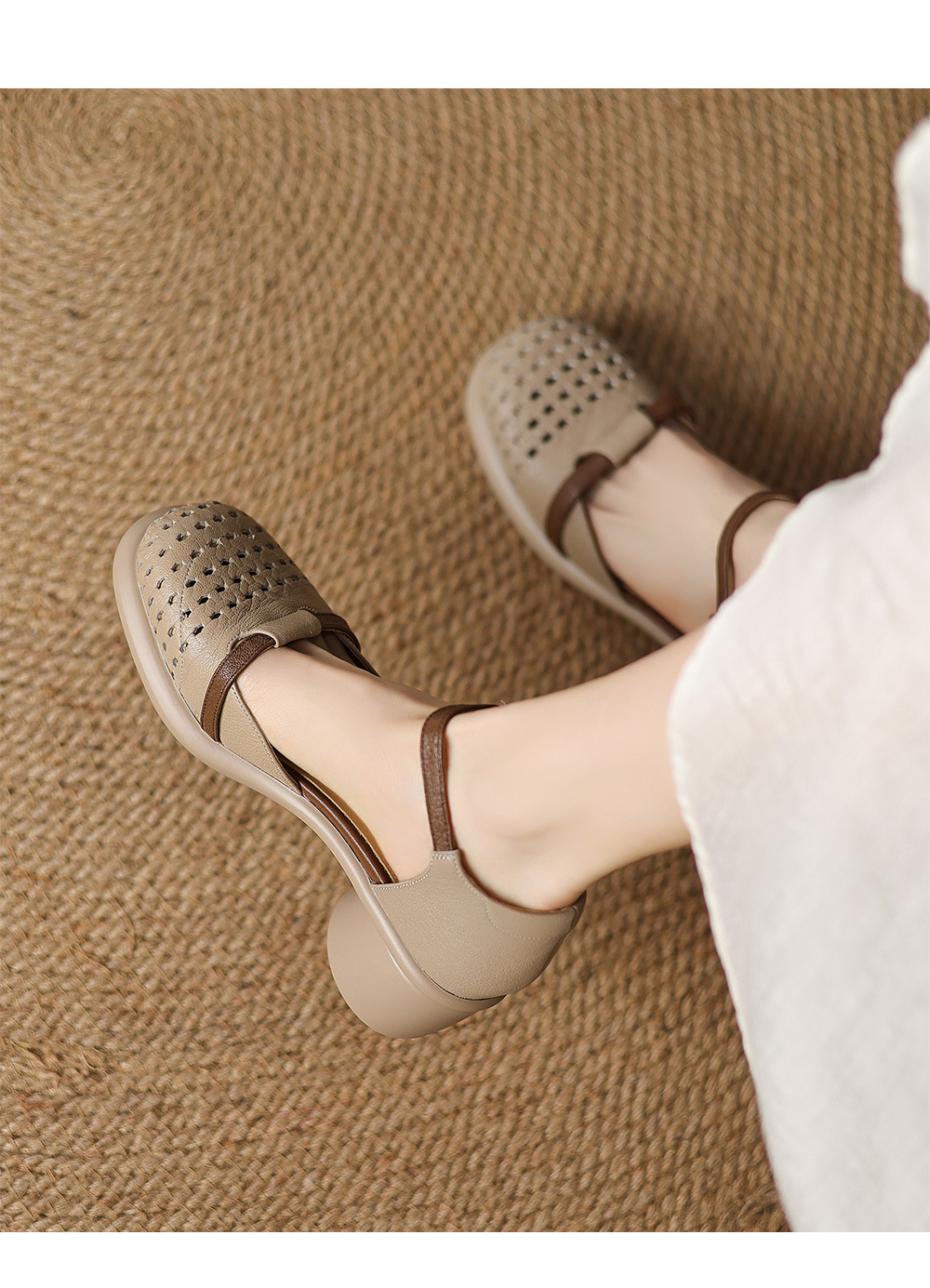 레트로 컬러 블록 플랫폼 하이힐 샌들 여성용 여름 Baotou 할로우 두꺼운 발 뒤꿈치 캐주얼 버클 로마 신발 샌들스토어 가기