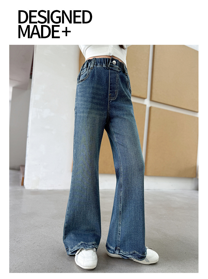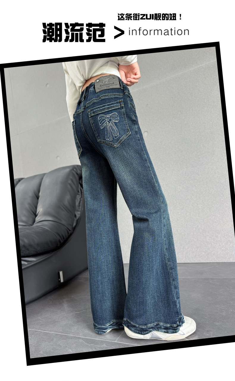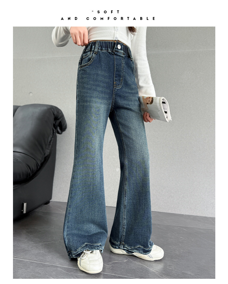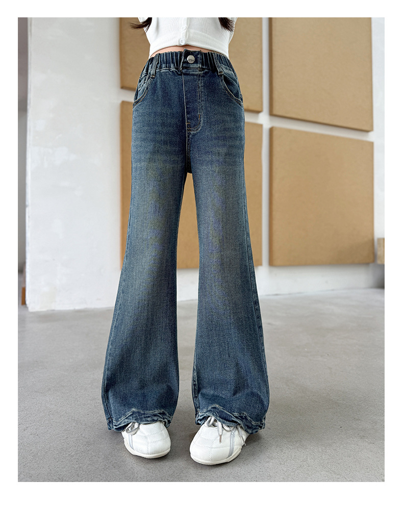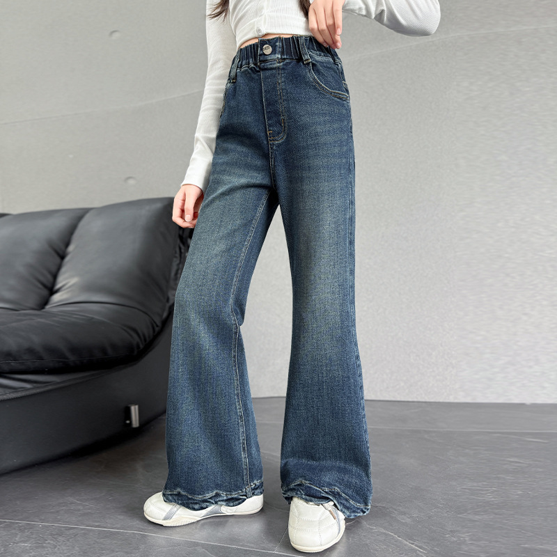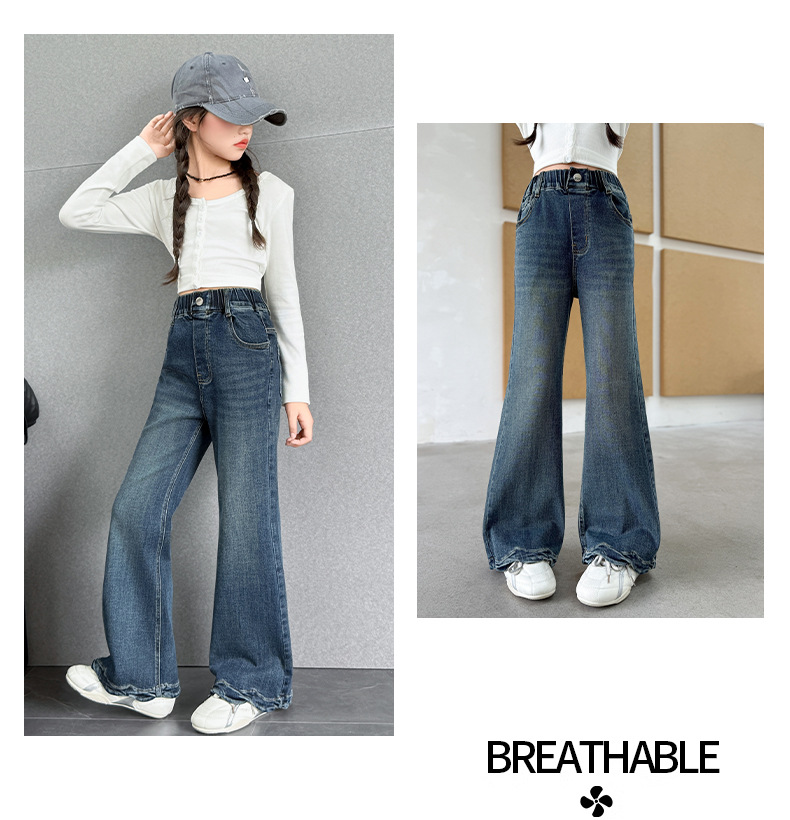 여아 데님 나팔바지 2025 봄 가을 신상 중대형 아동 한국 스타일 슬림핏 약간의 플레어 바지 세련된 웨이브 밑단