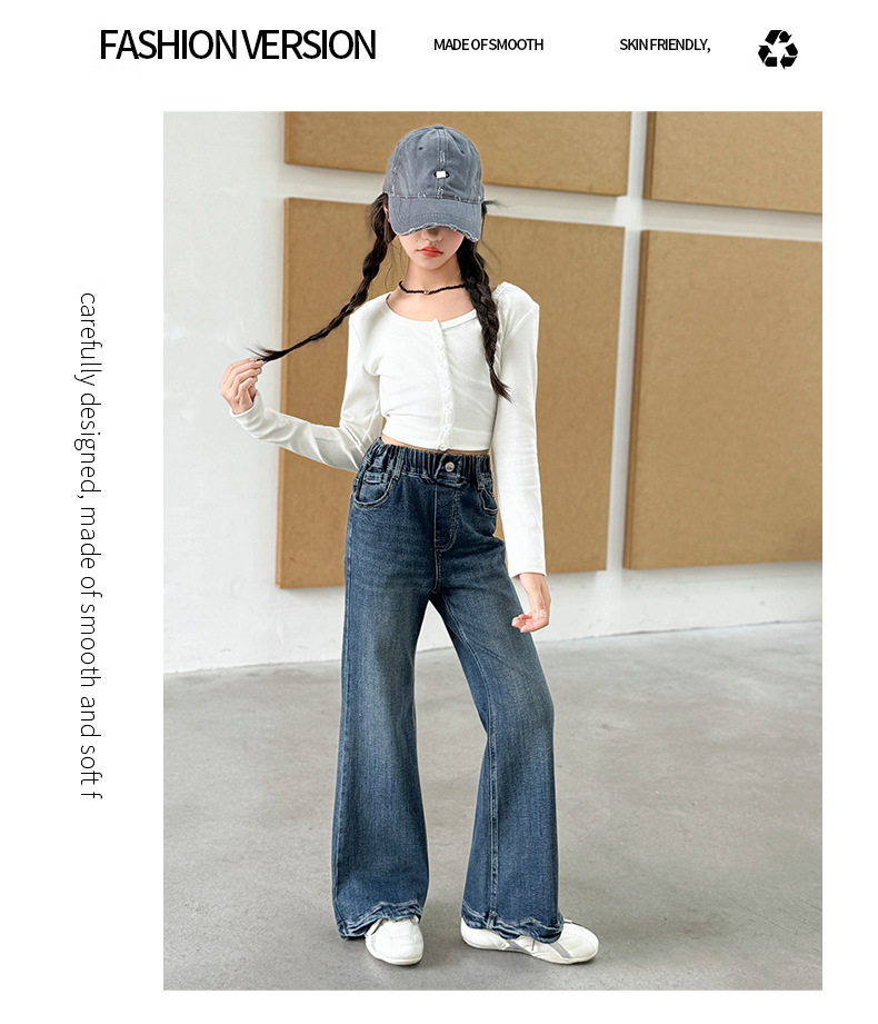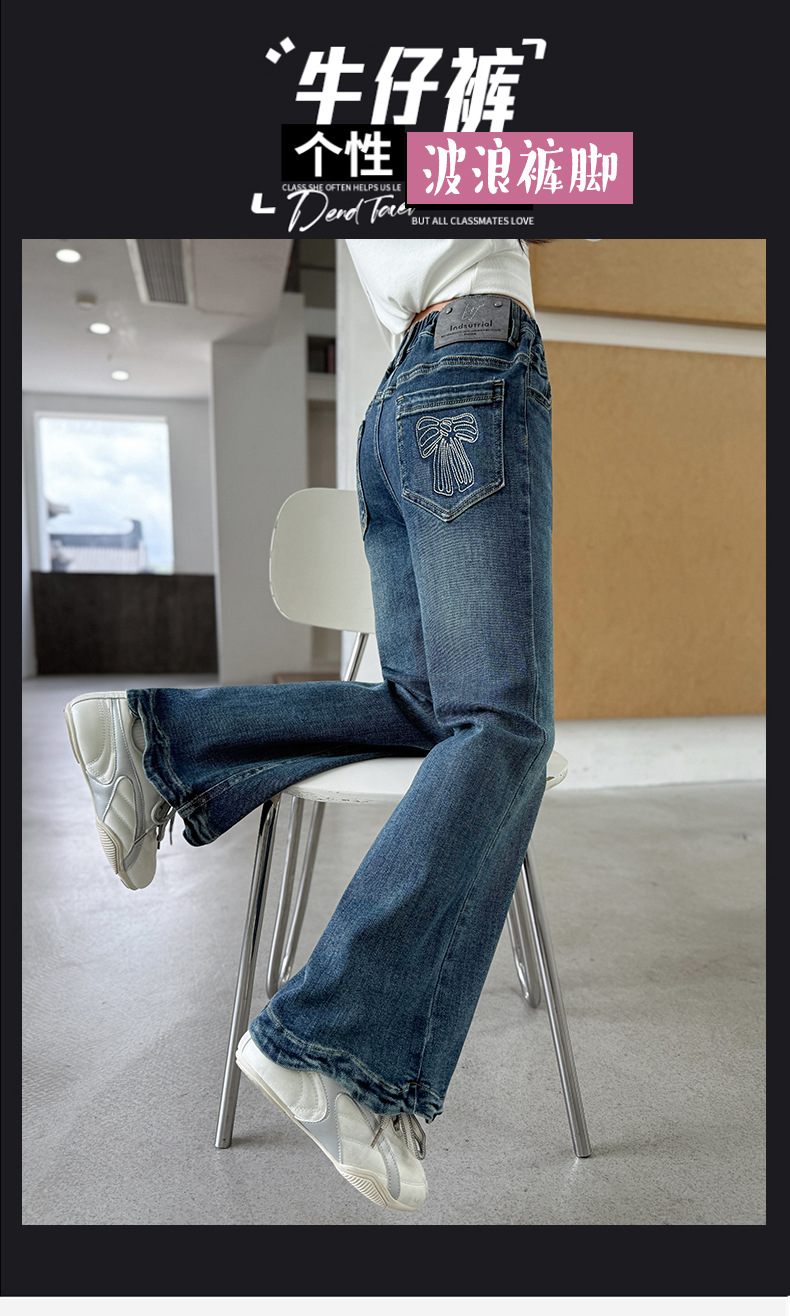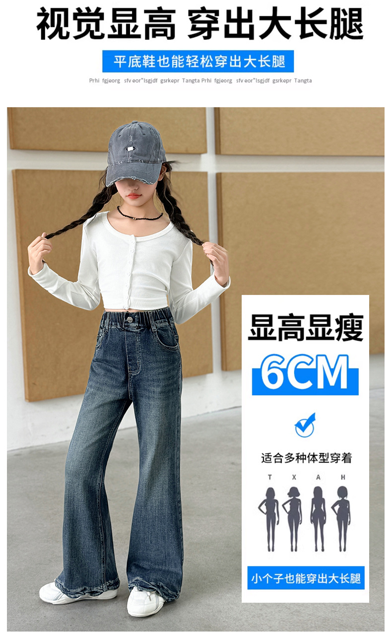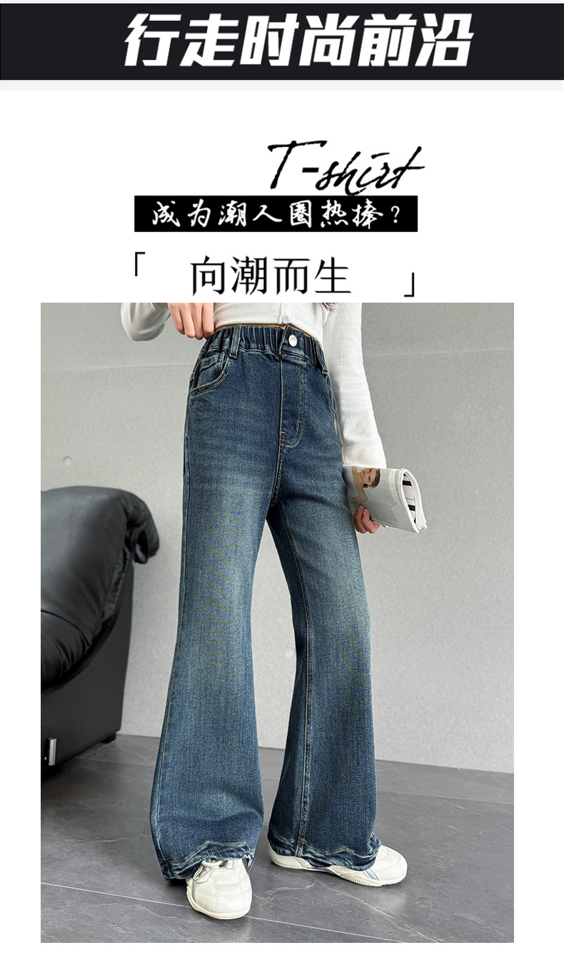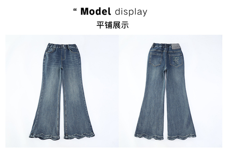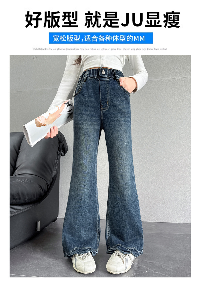 여아 데님 나팔바지 2025 봄 가을 신상 중대형 아동 한국 스타일 슬림핏 약간의 플레어 바지 세련된 웨이브 밑단