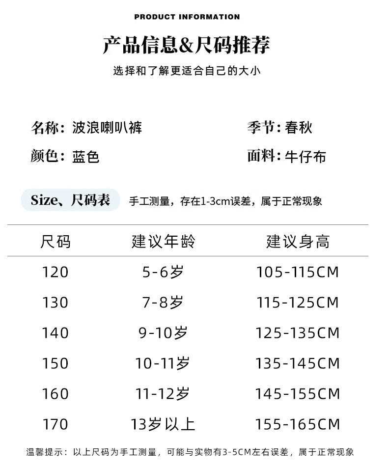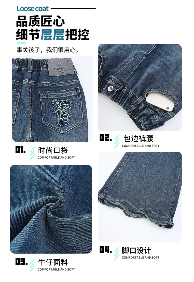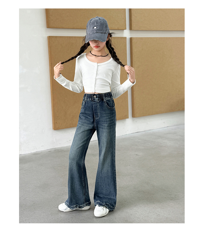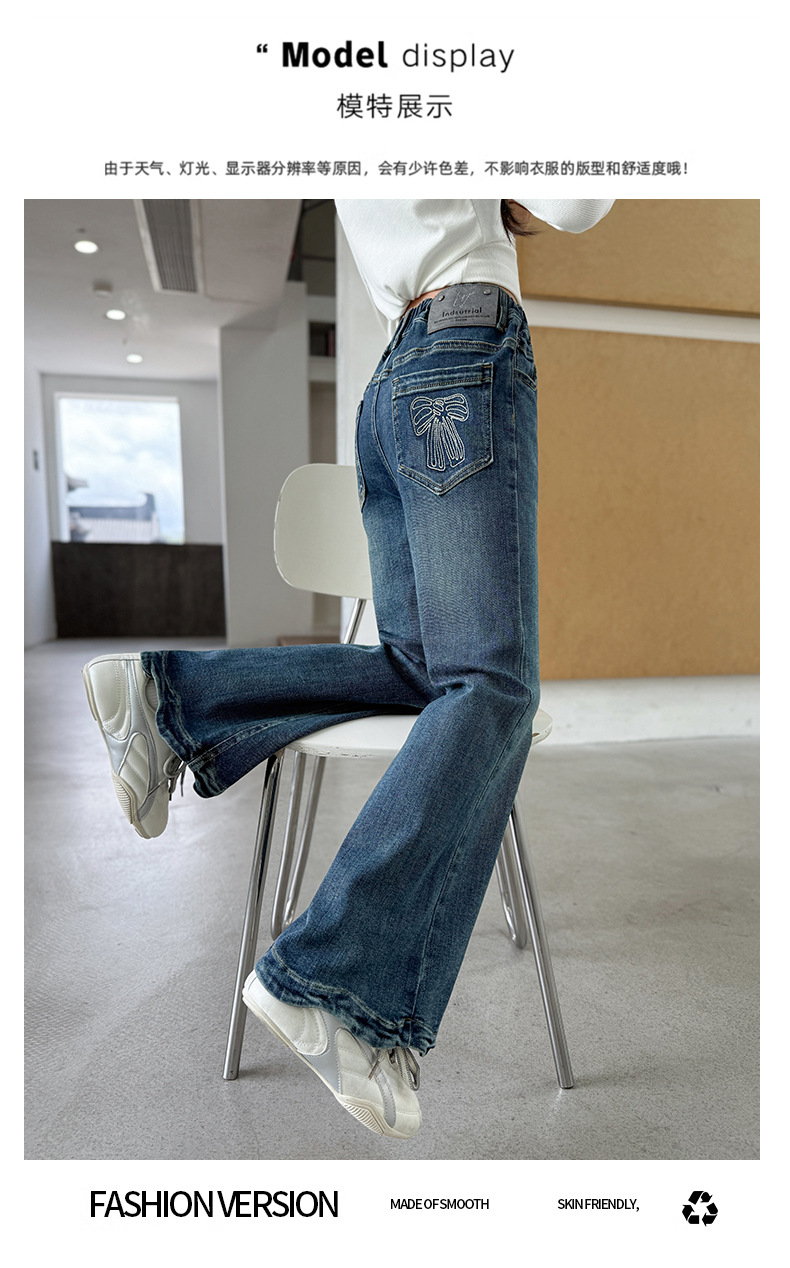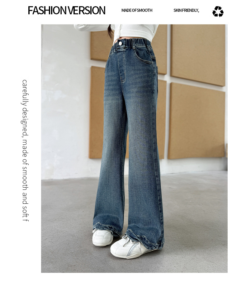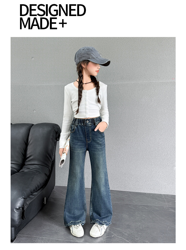 여아 데님 나팔바지 2025 봄 가을 신상 중대형 아동 한국 스타일 슬림핏 약간의 플레어 바지 세련된 웨이브 밑단
