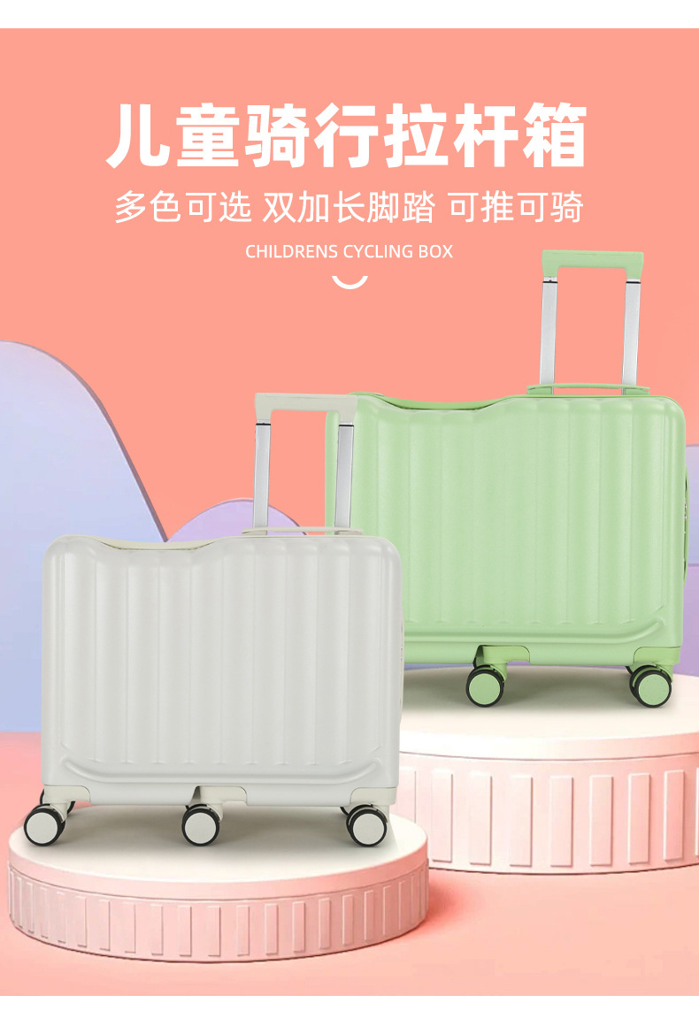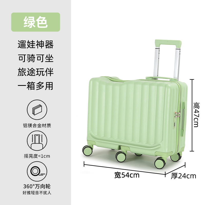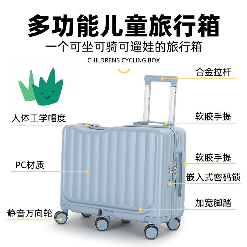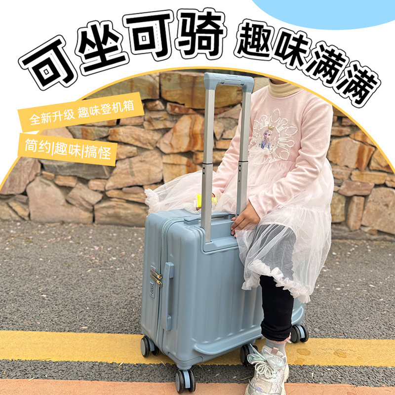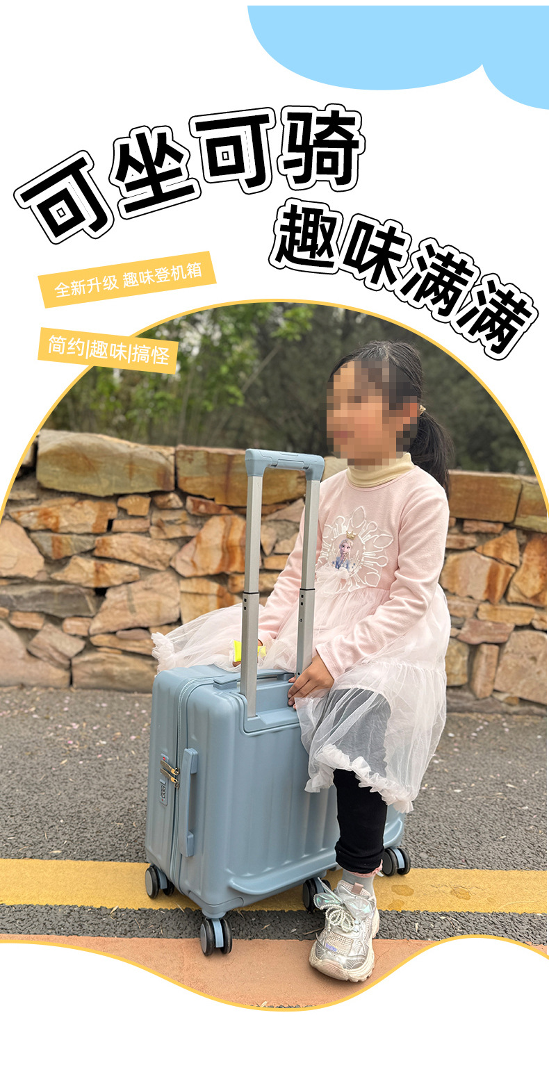 6륜 어린이용 여행가방, 승용 및 탑승용, 남녀 어린이용 트롤리 케이스, 최대 하중 90kgkg, 휴대폰 홀더 포함