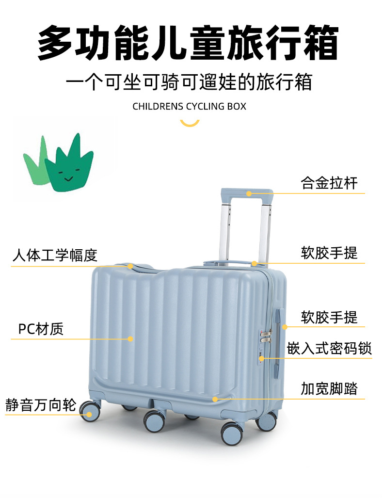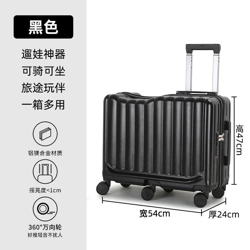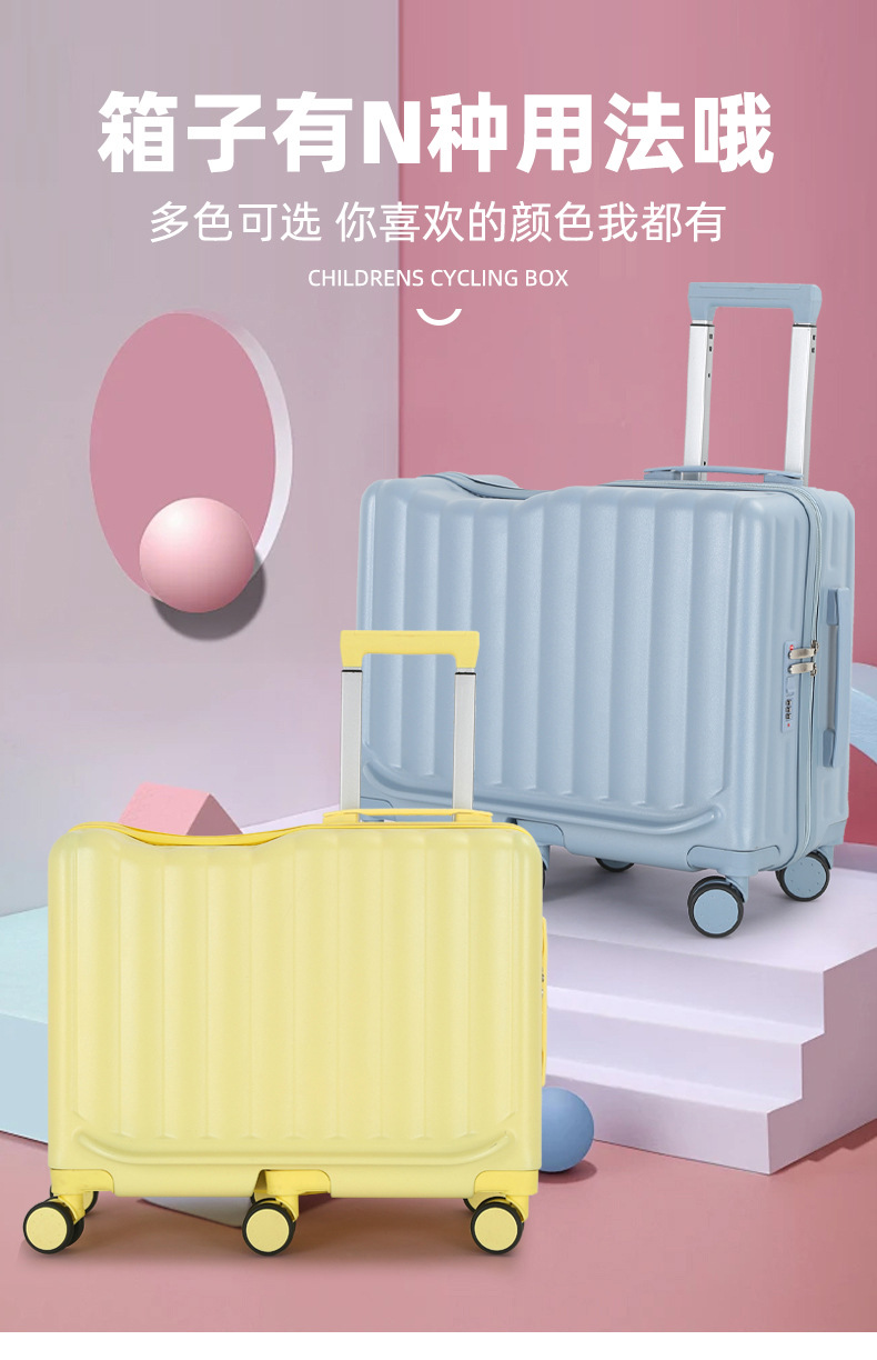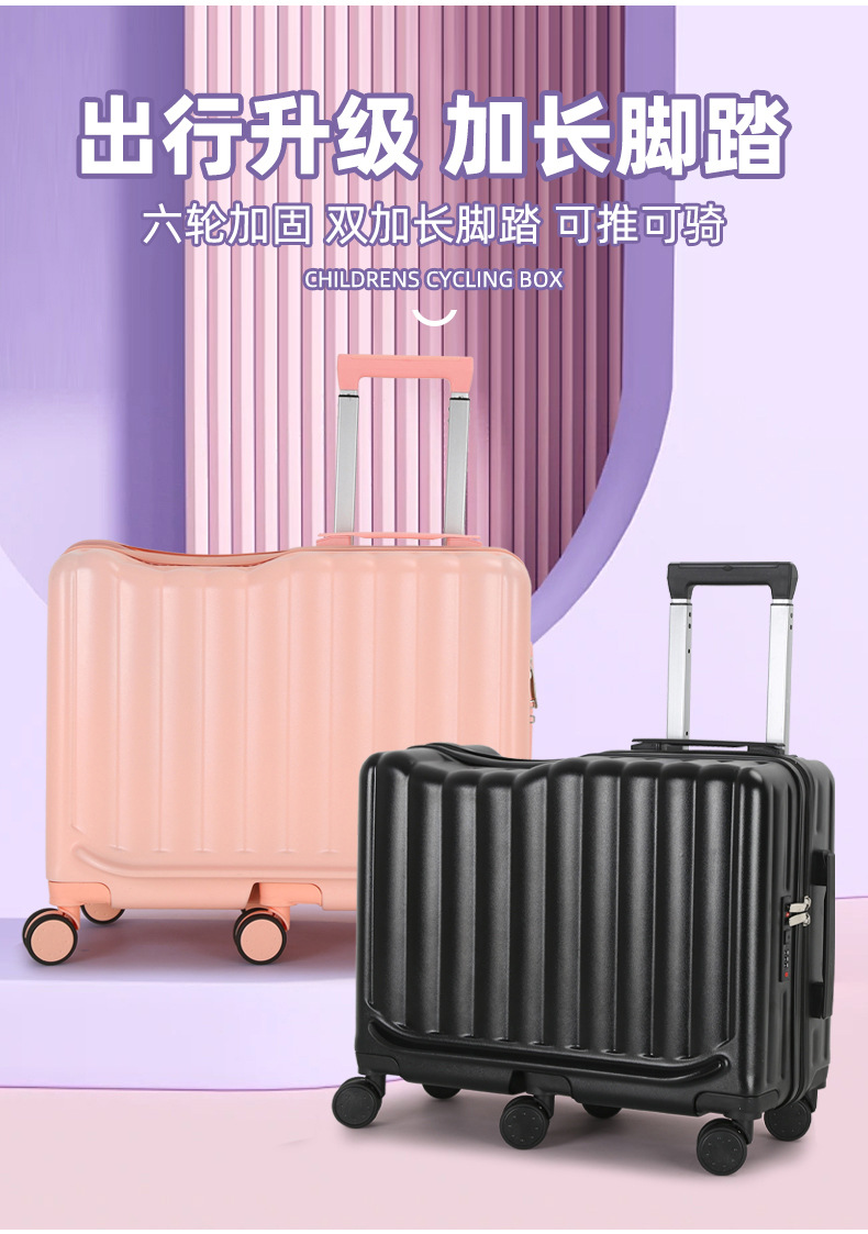 6륜 어린이용 여행가방, 승용 및 탑승용, 남녀 어린이용 트롤리 케이스, 최대 하중 90kgkg, 휴대폰 홀더 포함
