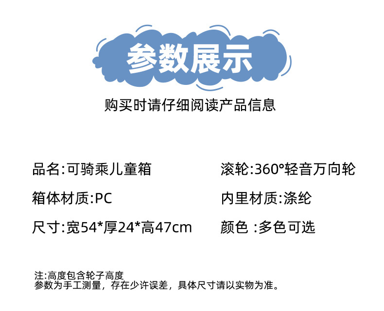 6륜 어린이용 여행가방, 승용 및 탑승용, 남녀 어린이용 트롤리 케이스, 최대 하중 90kgkg, 휴대폰 홀더 포함스토어 가기