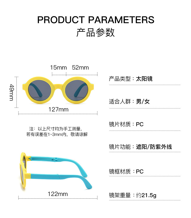 2025년 남학생과 여학생을 위한 접이식 어린이 선글라스, 여름 거리 사진 촬영, 귀여운 자외선 차단 원형 프레임 아기 선글라스