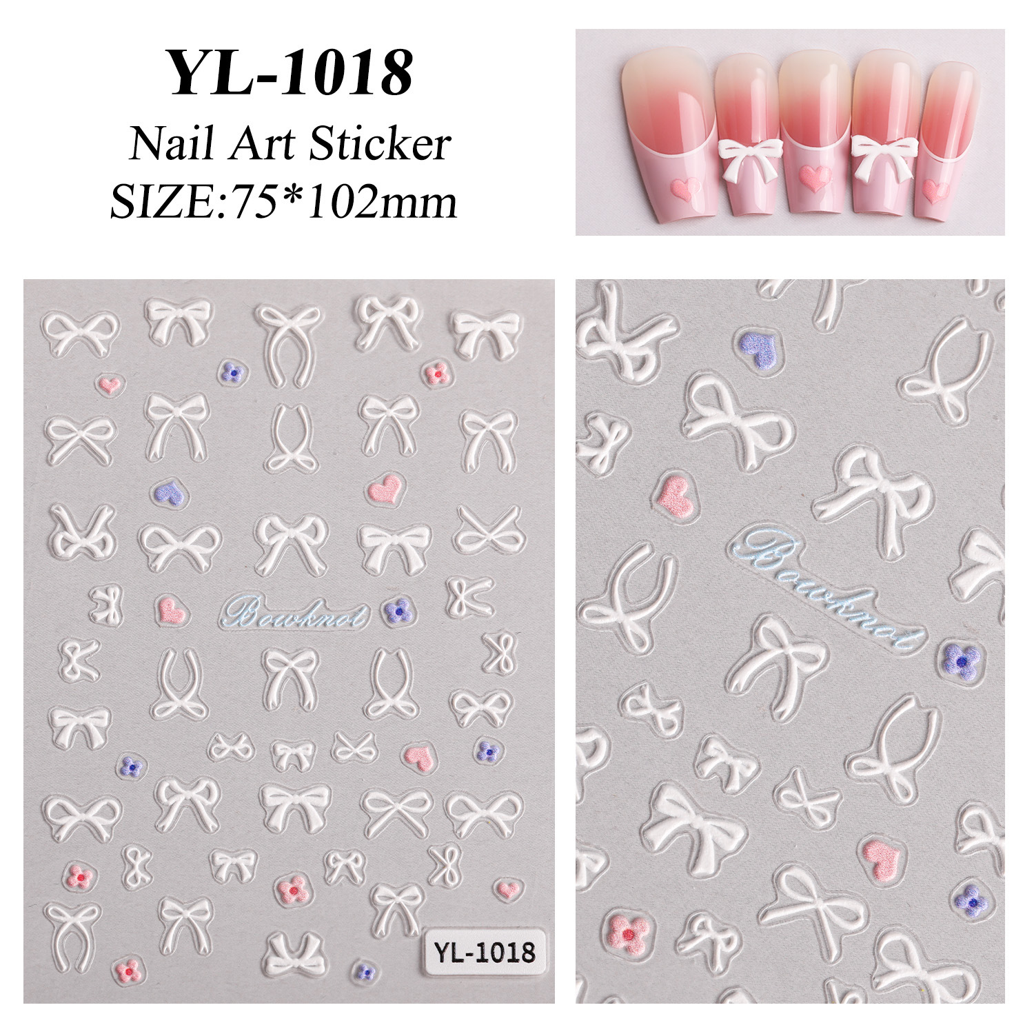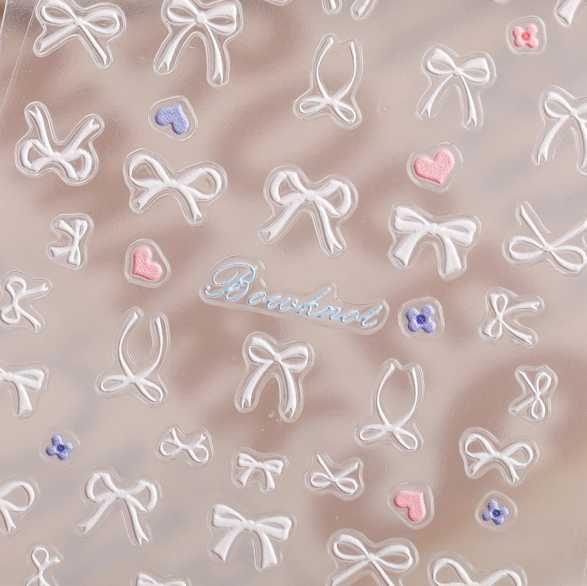사랑 활 네일 스티커 5D 구호 3 차원 순수한 흰색 활 네일 스티커 보석 YL스토어 가기