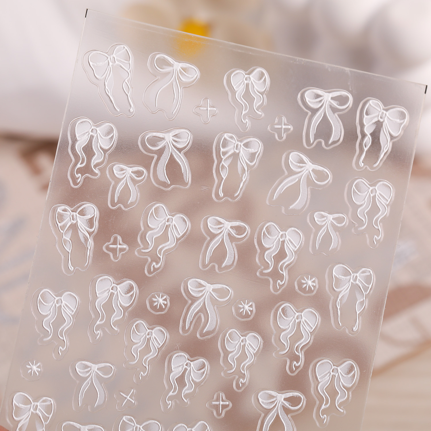 사랑 활 네일 스티커 5D 구호 3 차원 순수한 흰색 활 네일 스티커 보석 YL