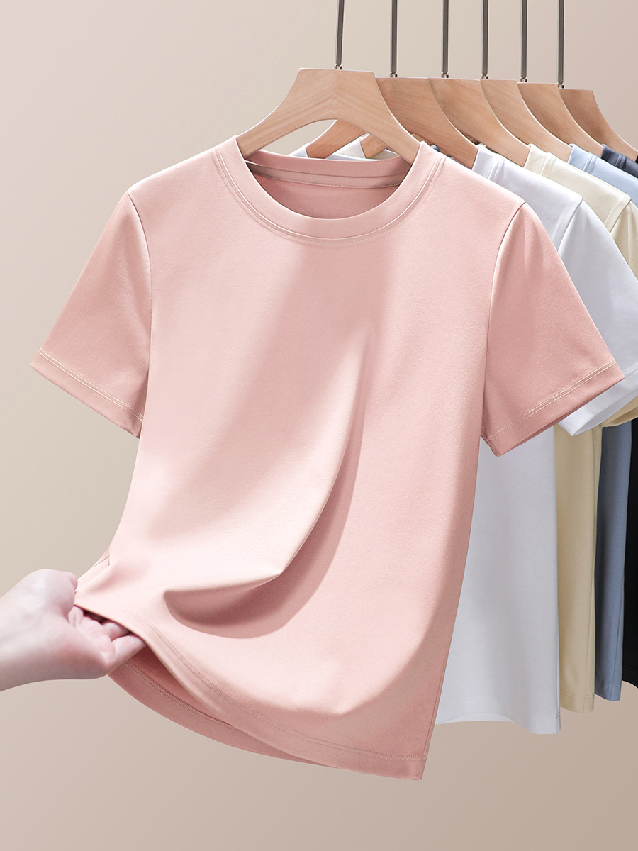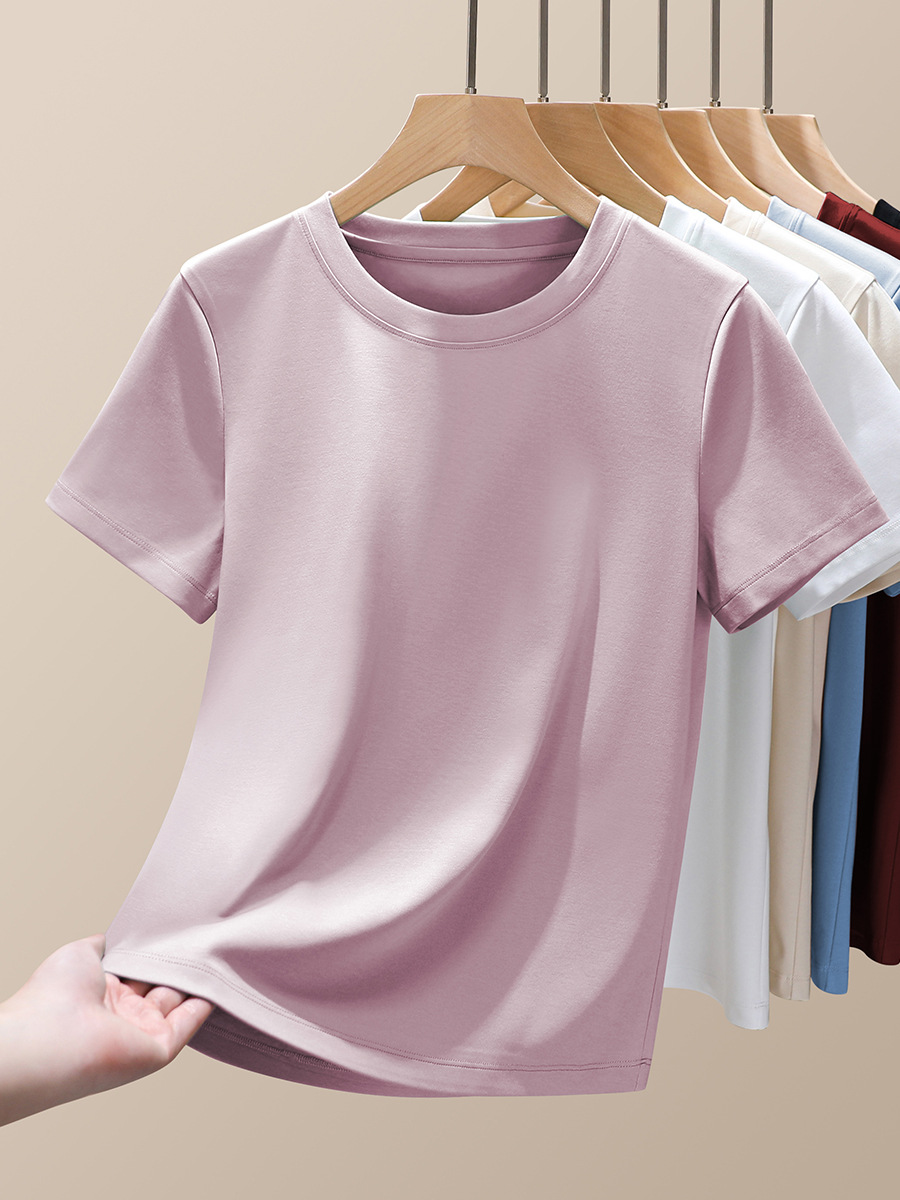 Mercerized 코튼 티셔츠 여성용 하이 퀄리티 2025 새로운 느슨한 슬리밍 아우터 착용 둥근 목 액체 암모니아 짧은 소매 티셔츠베이스 셔츠스토어 가기