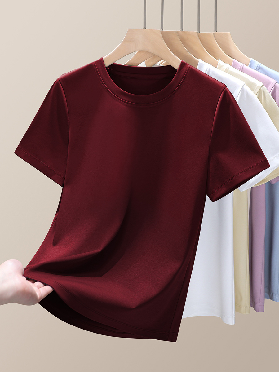 Mercerized 코튼 티셔츠 여성용 하이 퀄리티 2025 새로운 느슨한 슬리밍 아우터 착용 둥근 목 액체 암모니아 짧은 소매 티셔츠베이스 셔츠