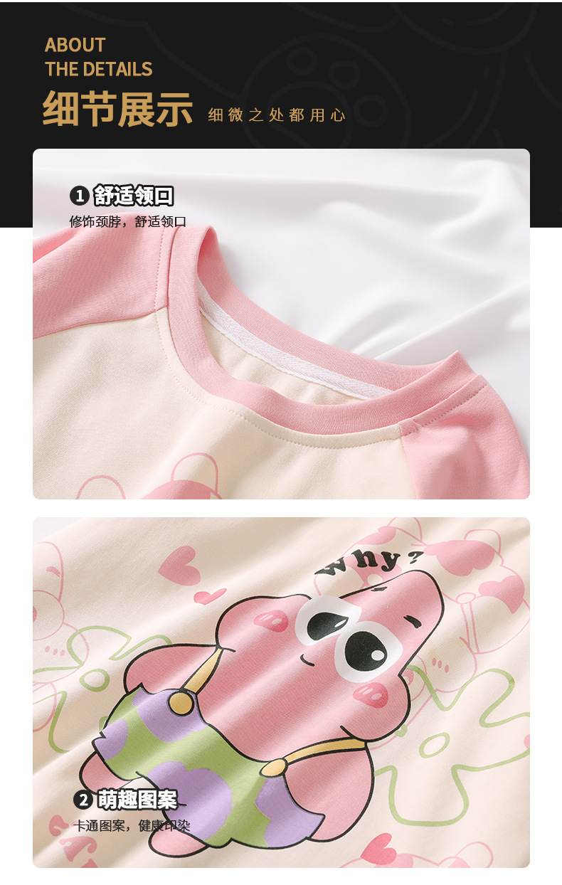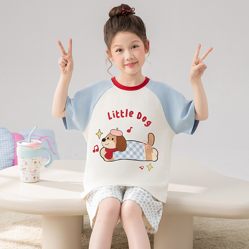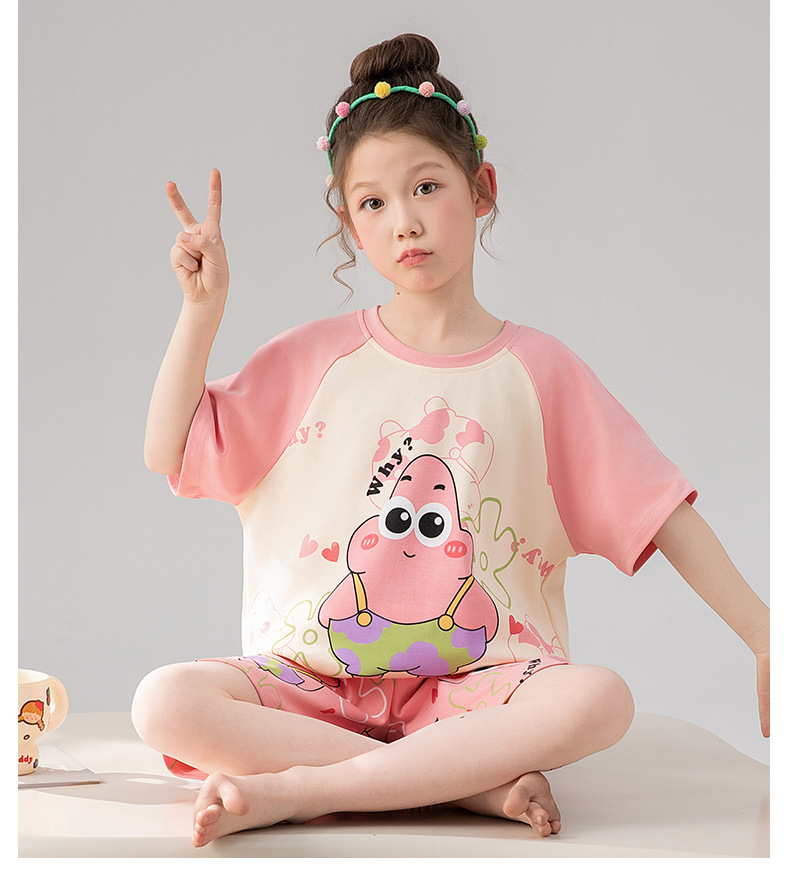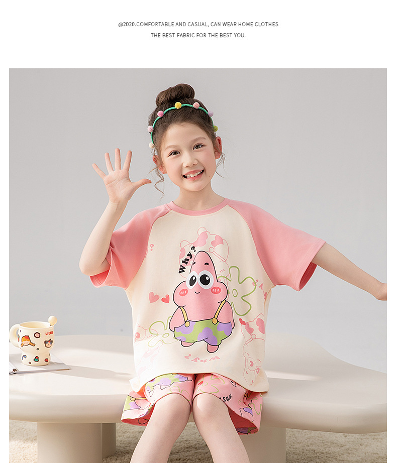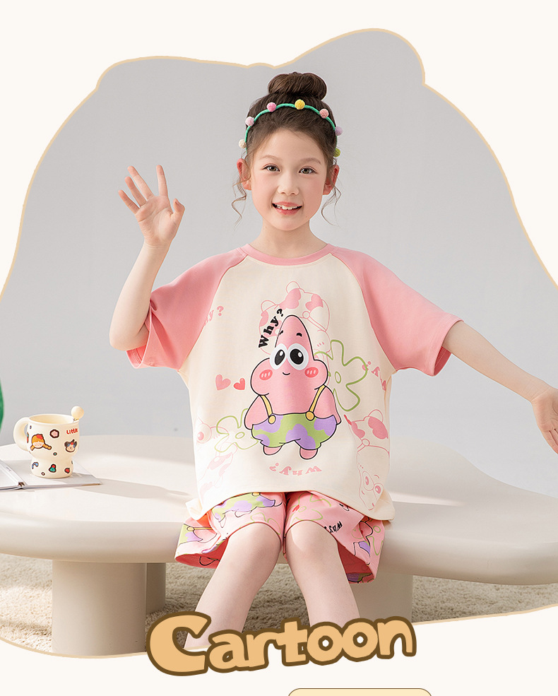 만화 귀여운 반팔 반바지 소녀 잠옷 여름 얇은 스타일은 작은, 중간 및 큰 어린이와 소녀를위한 캐주얼 가정복 외부에 착용 가능스토어 가기