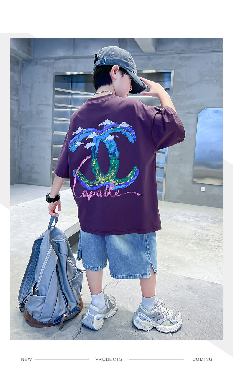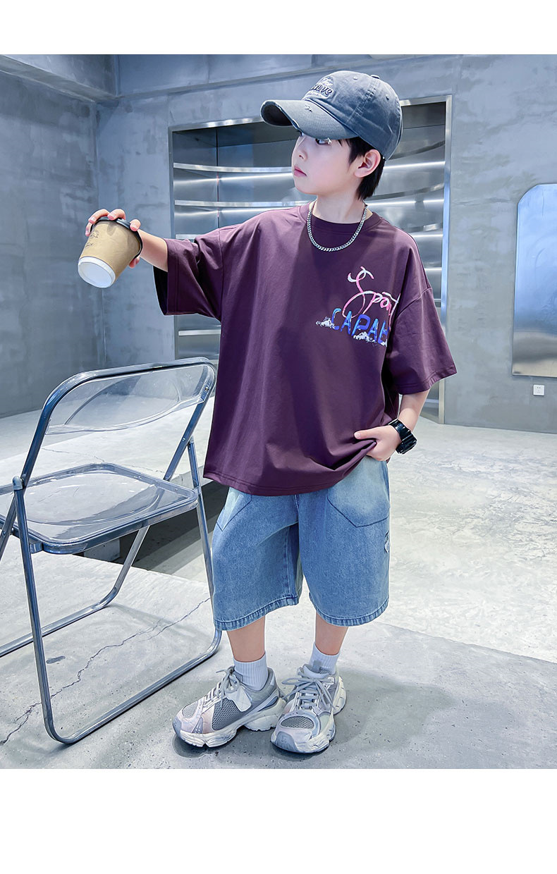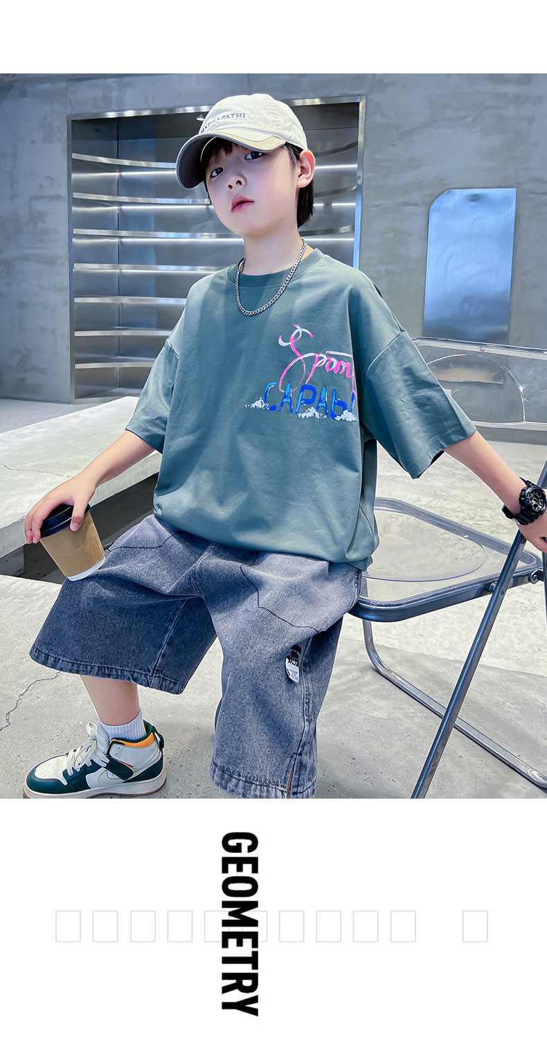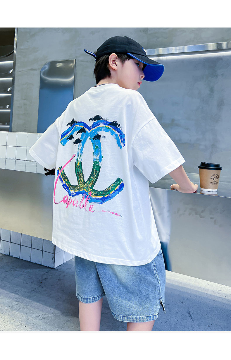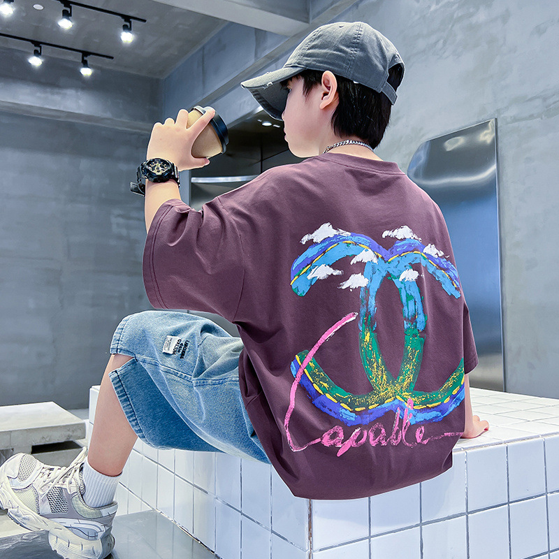 어린이 의류 소년 여름 반팔 티셔츠 2025 새로운 여름 큰 어린이 pliai 여름 소년 코트 t 도매스토어 가기