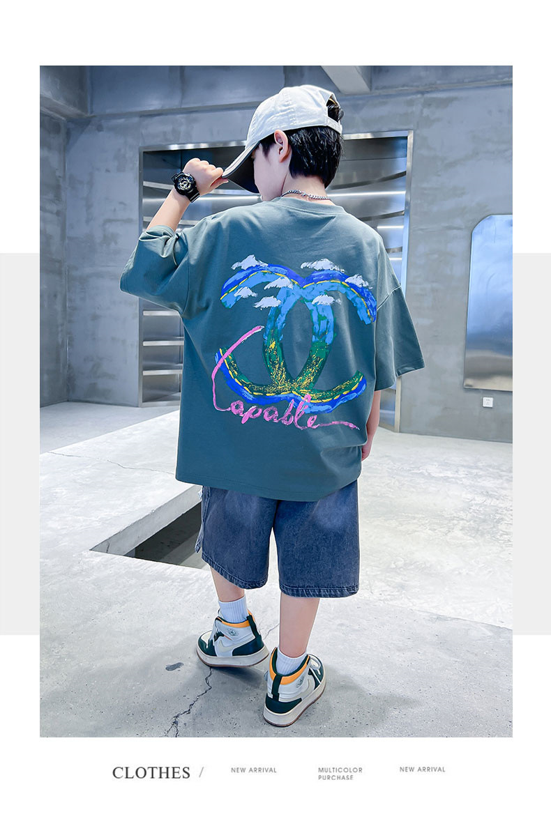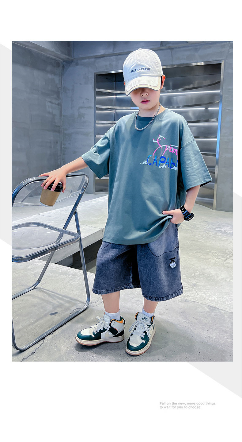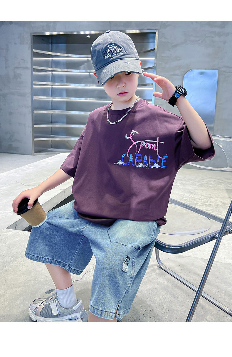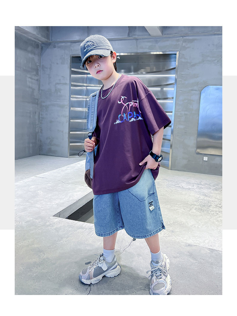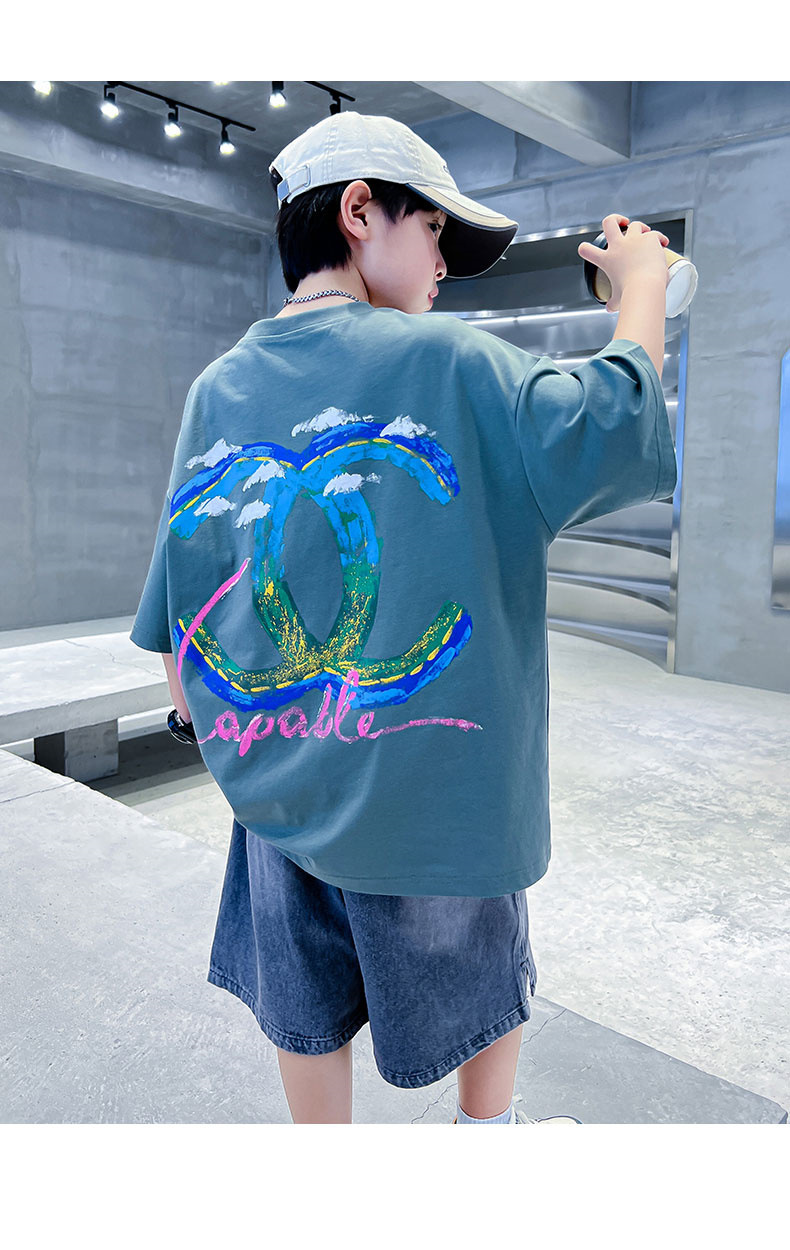 어린이 의류 소년 여름 반팔 티셔츠 2025 새로운 여름 큰 어린이 pliai 여름 소년 코트 t 도매스토어 가기