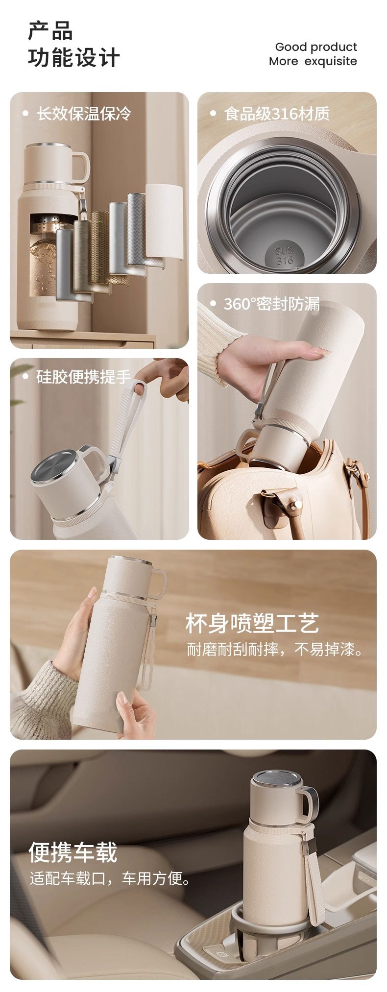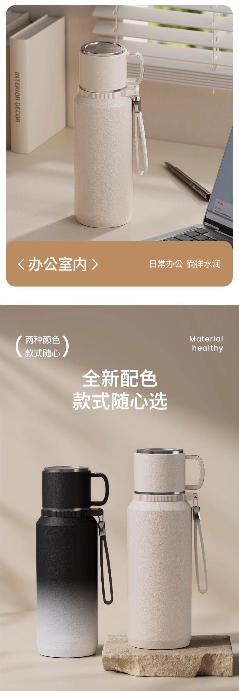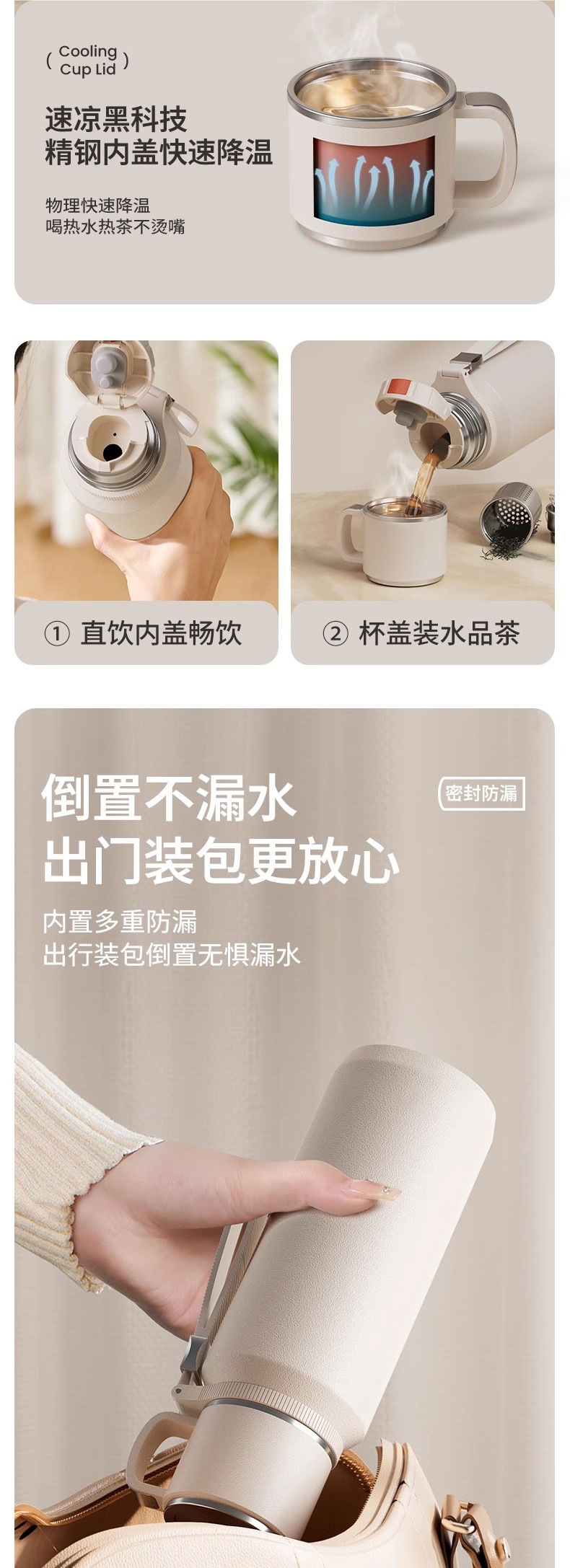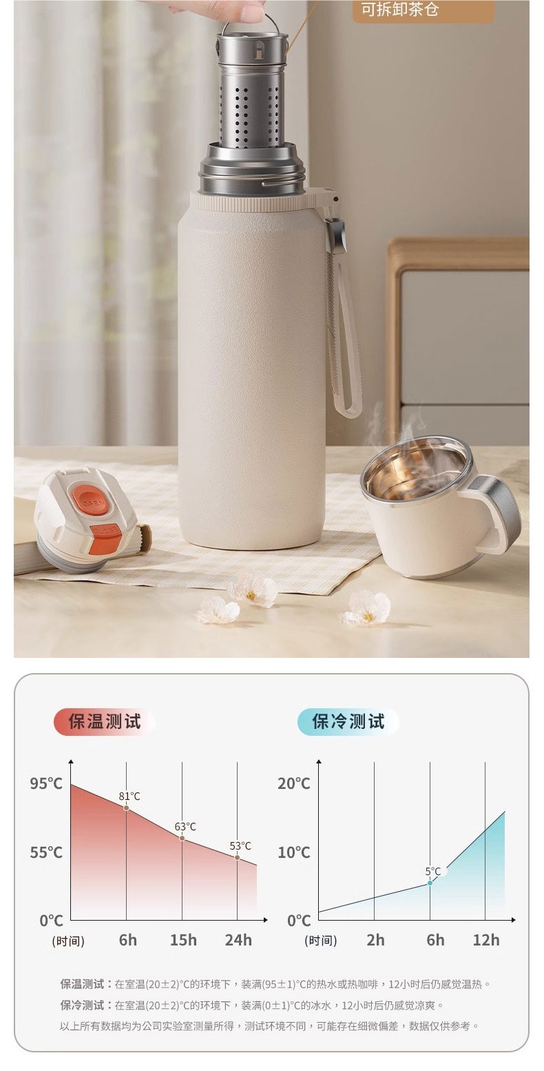 • [항균 증점 316 모델 업그레이드] 엘레강트 화이트 1000ml (차와 물 분리/48H 장기 보온)