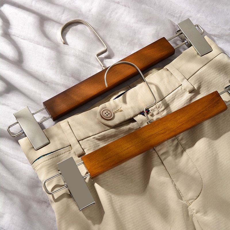 단단한 나무 바지 걸이, 바지 클립, 스커트, 가정용 옷장, 내장형 무봉제 의류 매장 걸이, 바지 걸이, 나무 바지 걸이스토어 가기