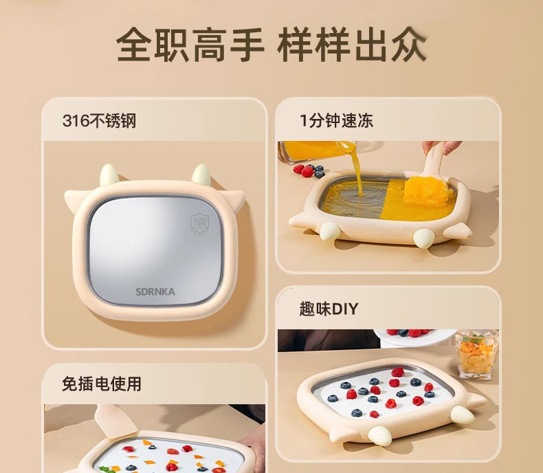일본 sdrnka 요거트 프라이팬 가정용 소형 아이스 프라이팬 어린이 플러그인 프리 요거트 트레이 수제 diy 스무디